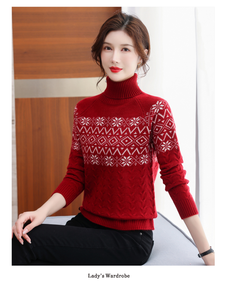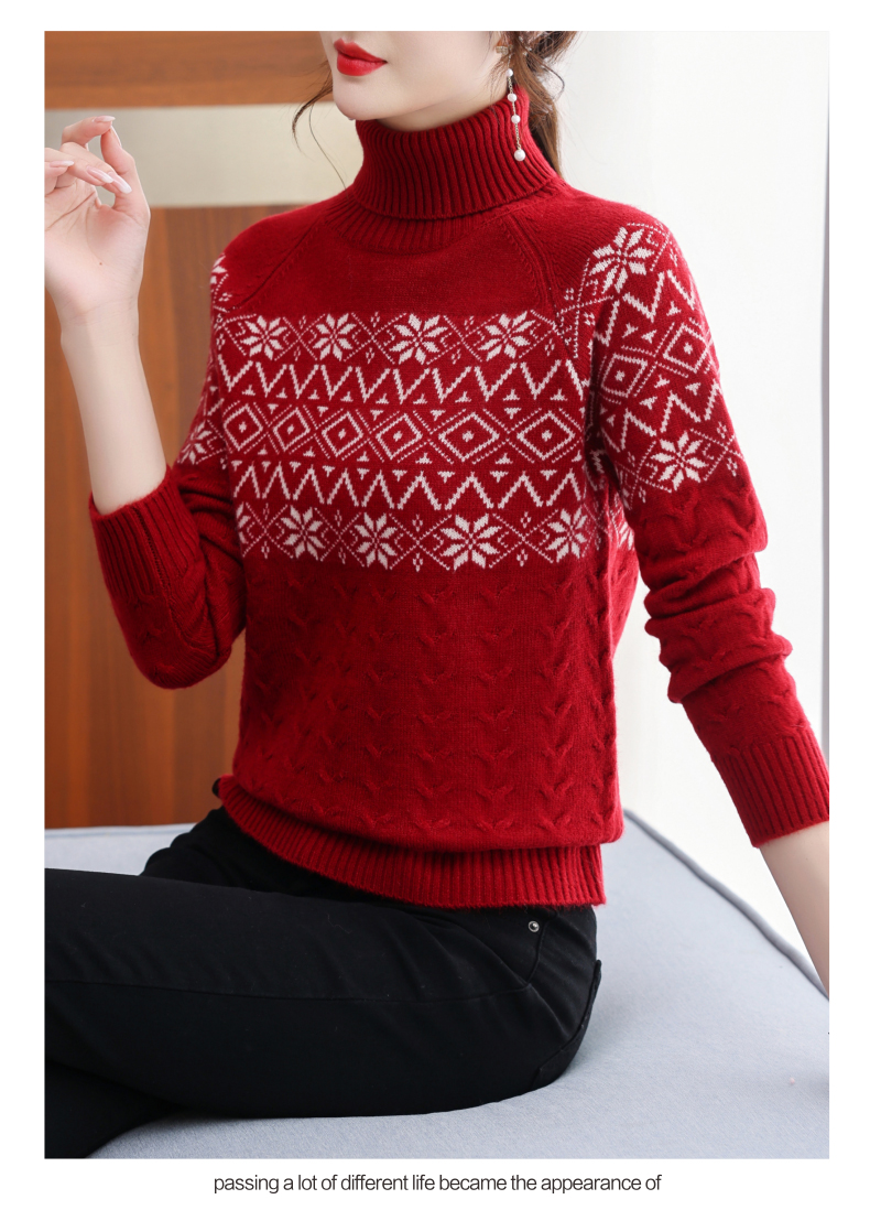 高领针织打底衫内搭保暖秋冬新款厚款修身印花上衣CC-BBT-6656