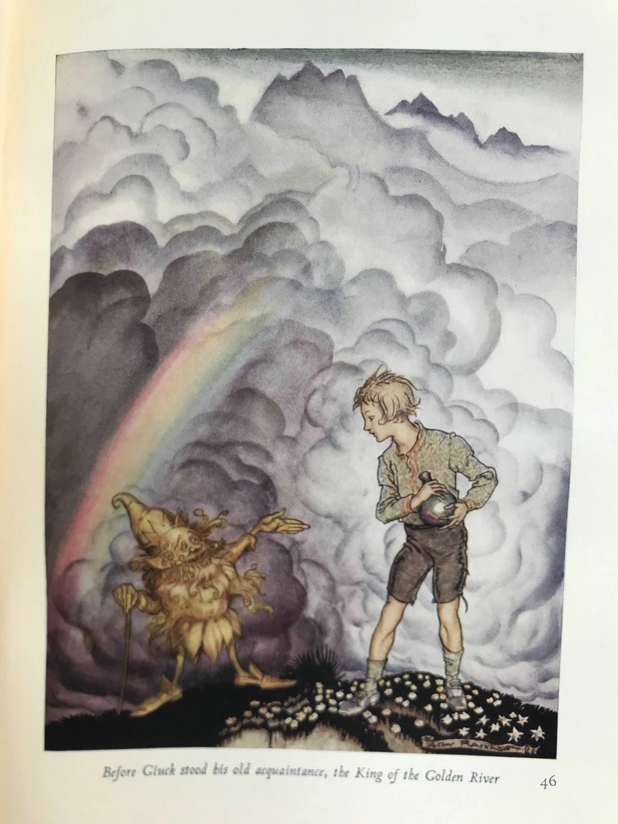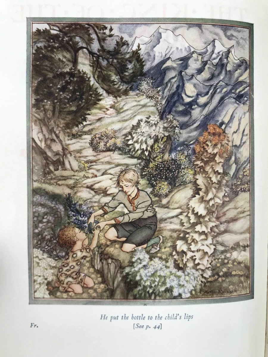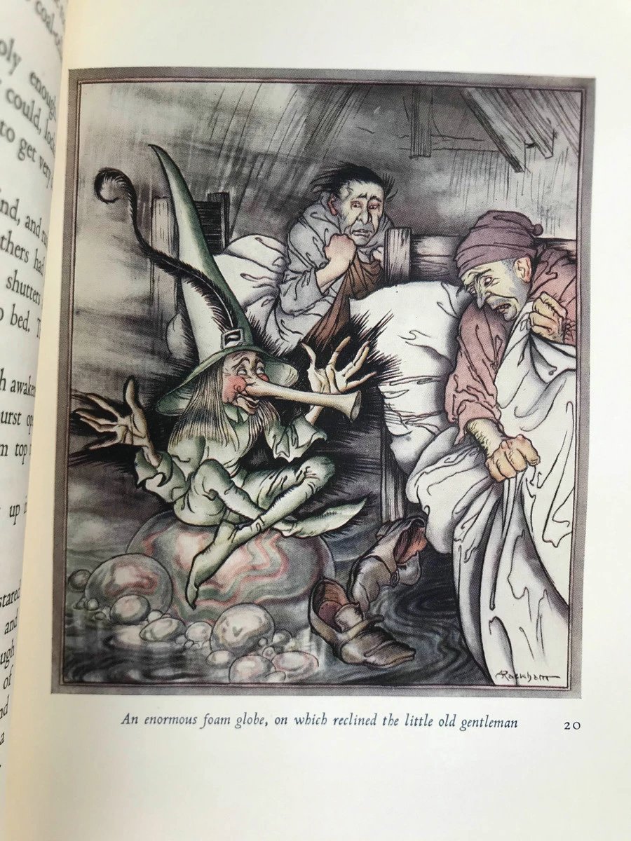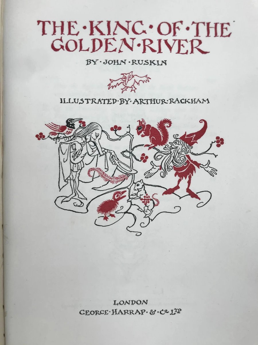 限量570册鬼才拉克姆签名本!1932年 罗斯金《金河王》 4幅彩色插图 犊皮纸软装16开带书匣