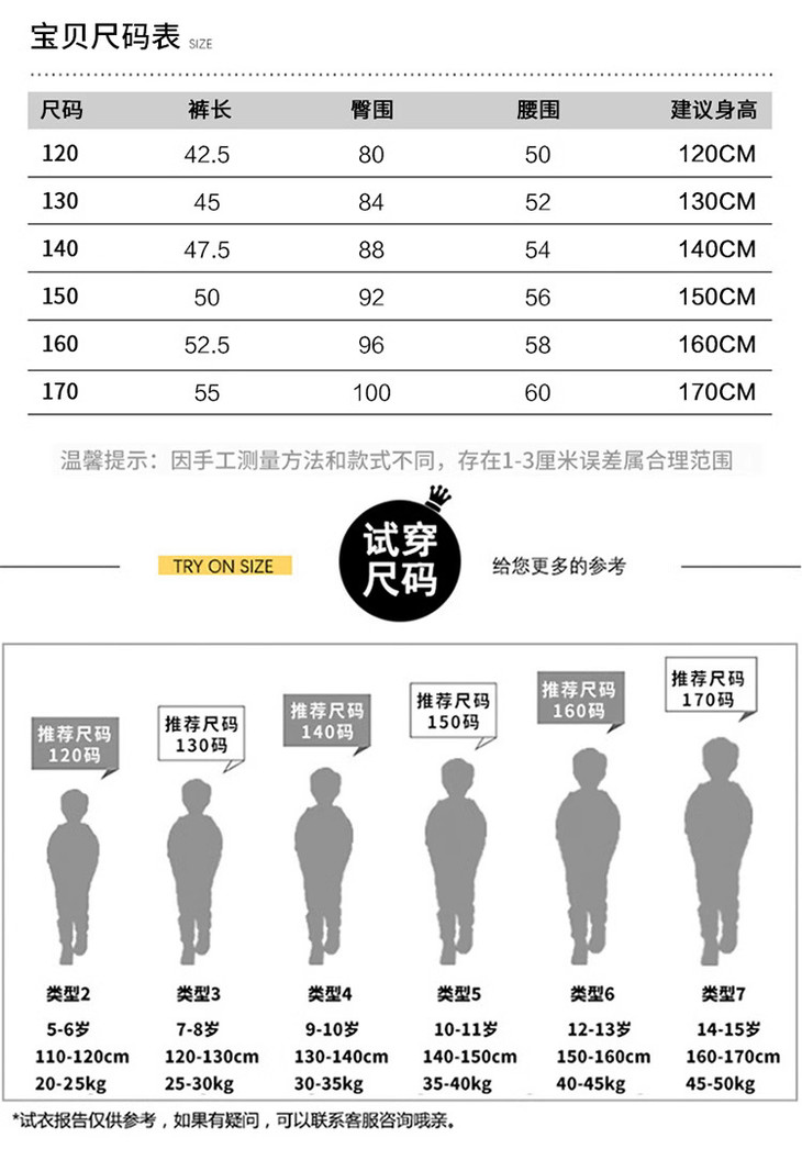 👦模特上身,潮酷拉满 不管是搭配简约白 T 展现清爽少年感,还是配上个性印花上衣彰显独特态度,这条裤子都能完美适配。 模特宝贝们穿上,走路带风,自信值爆棚💯。无论是站着耍帅、坐着休闲,还是随意走动,都能轻松拿捏潮流范儿,回头率直线飙升!
