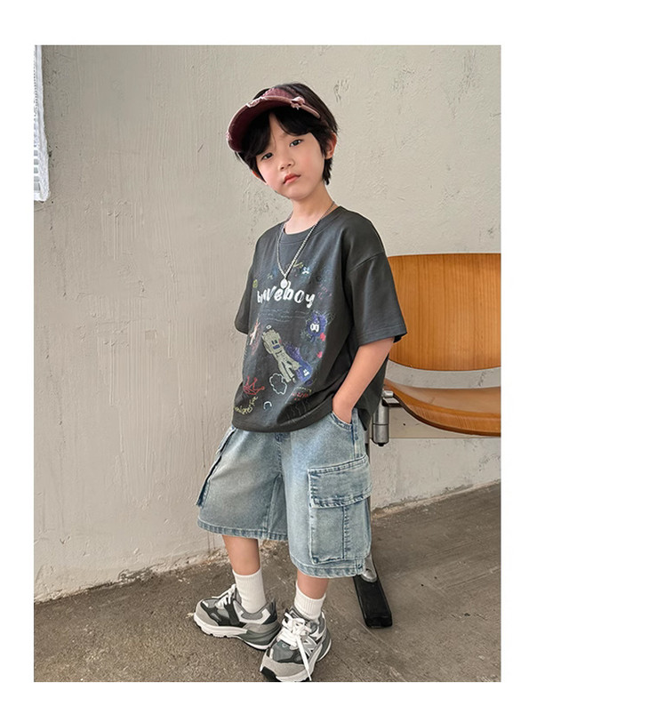 🧢 搭配超百搭 不管是搭简约纯色 T 恤,还是个性印花上衣,都能轻松拿捏时尚感。再配上运动鞋和小帽子,出街就是回头率爆表的小潮男🤩。 无论是日常出行、户外运动,还是拍照打卡,这条短裤都能让宝贝的穿搭 level 直线上升,时尚又舒适!