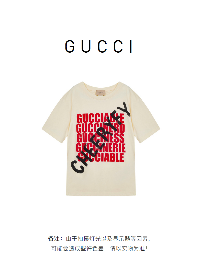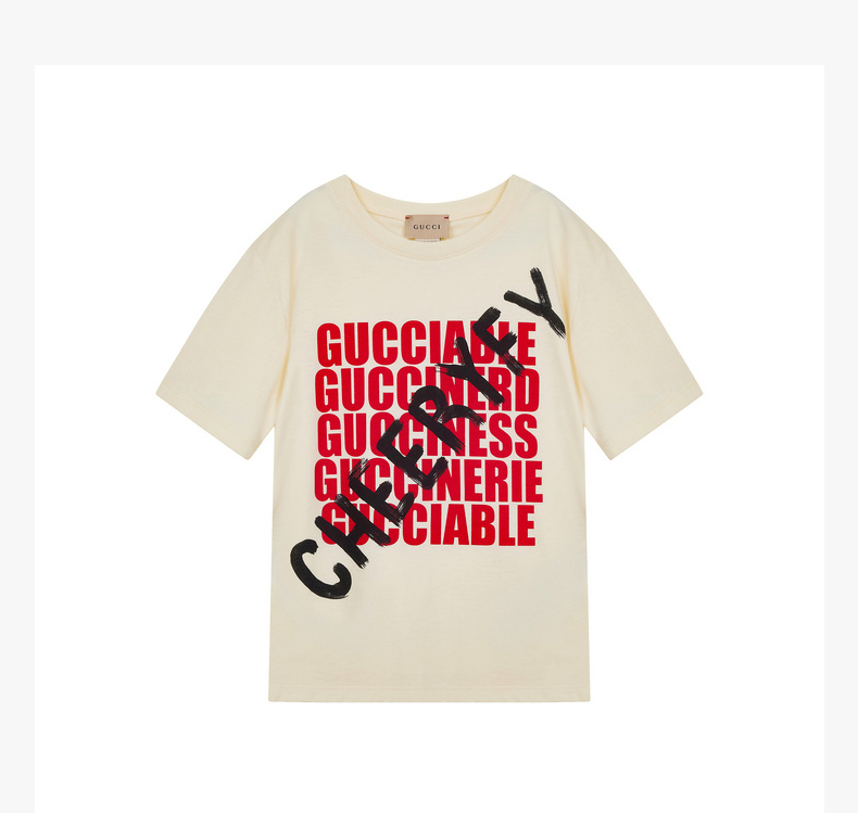 GUCCI 古驰 童装胸前字母印花儿童款白色棉质时尚百搭圆领短袖 575114XJEZI