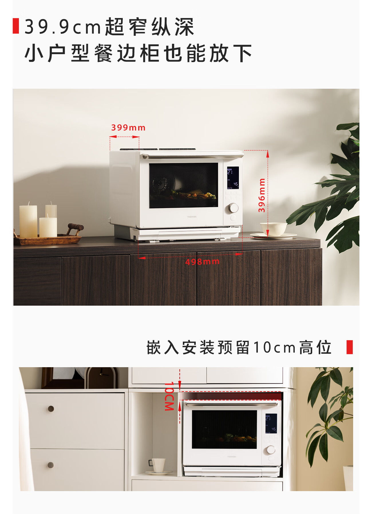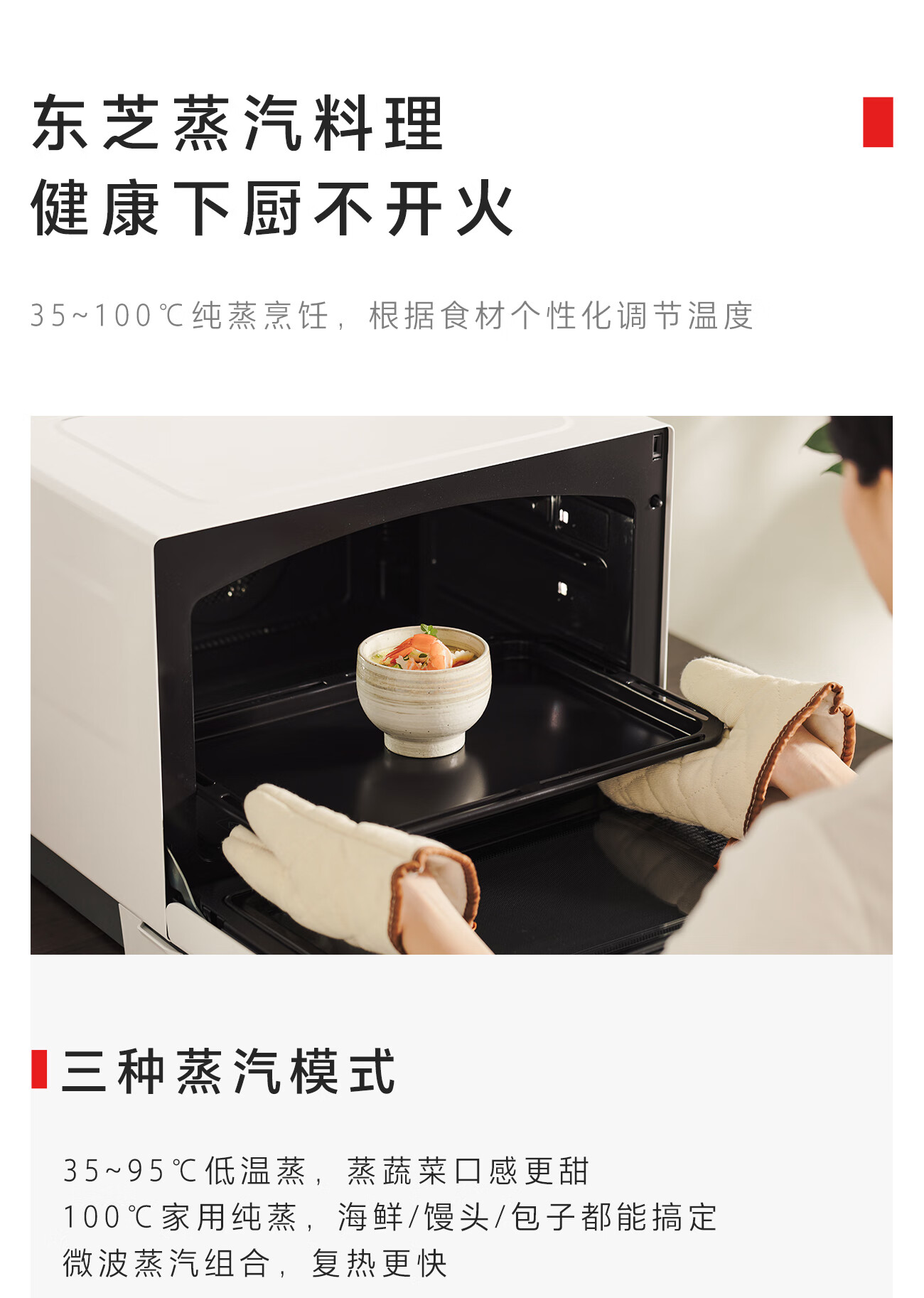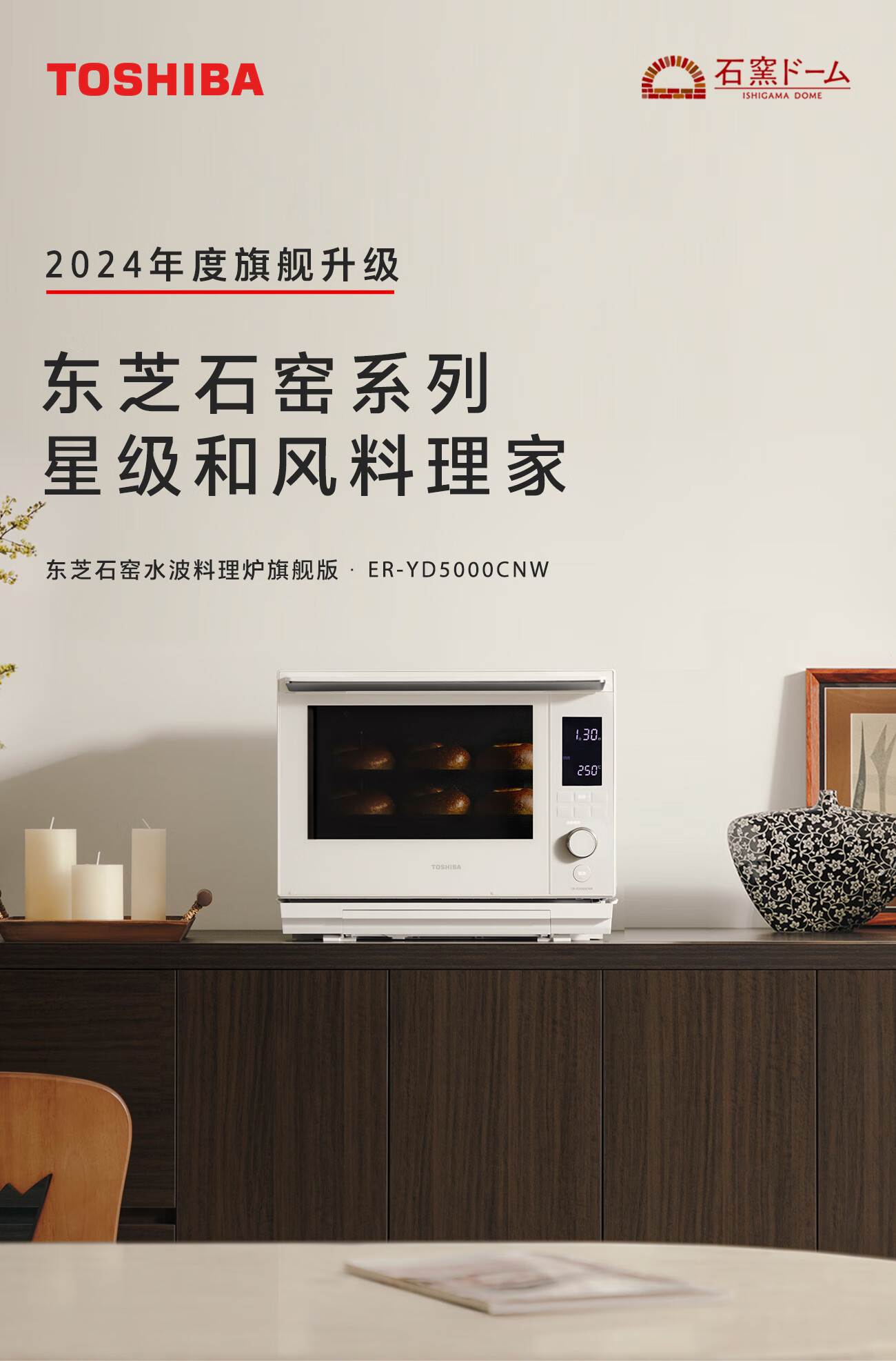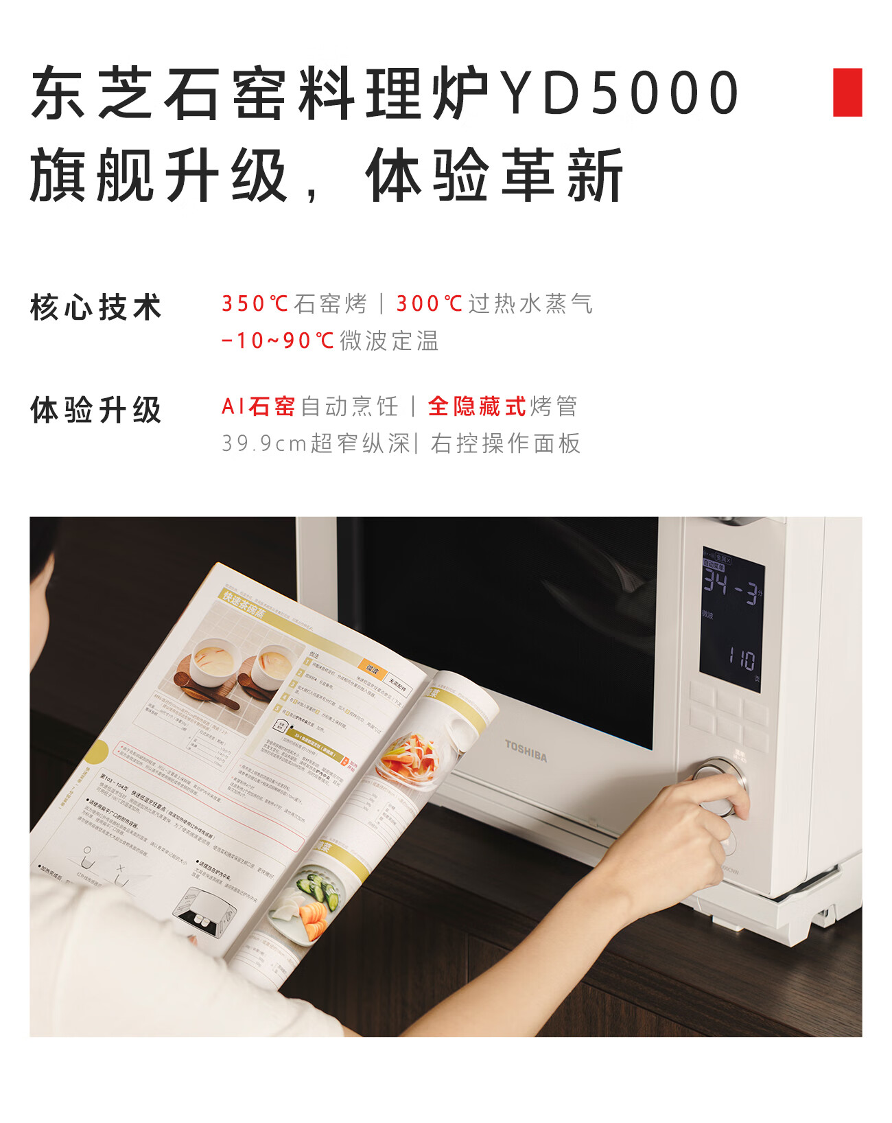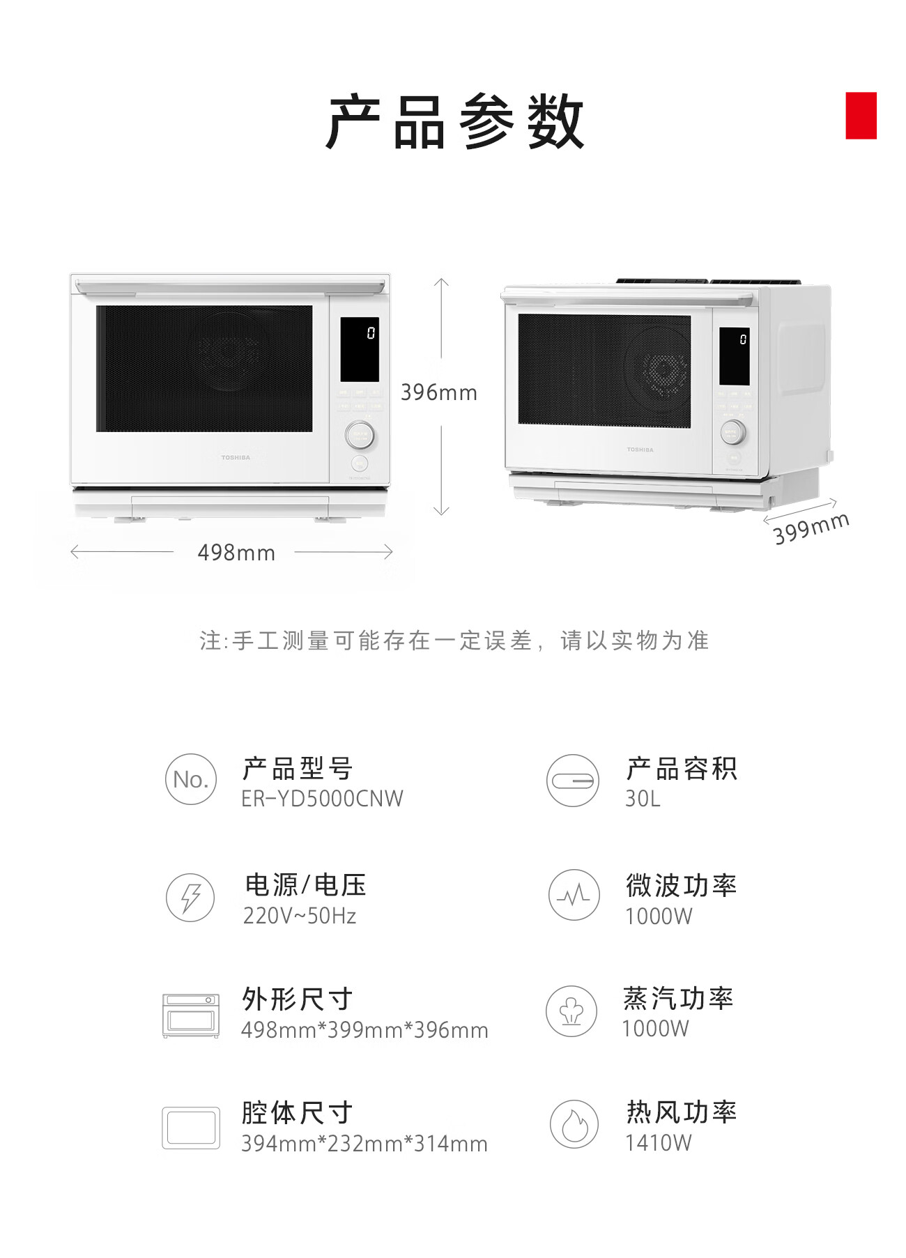 东芝(TOSHIBA)东芝ER-YD5000CNW微蒸烤炸一体机水波炉家用台式变频微波炉电烤箱空气炸蒸箱平板隐藏烤管白色30L