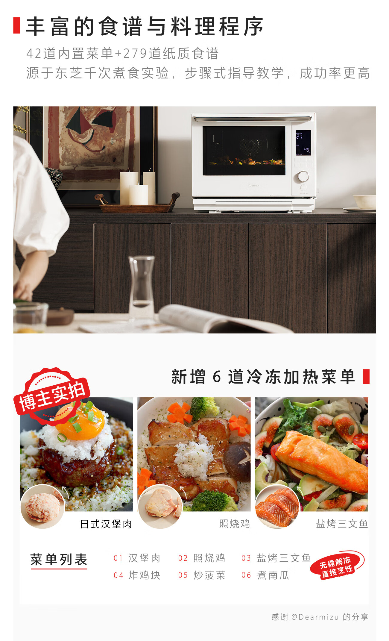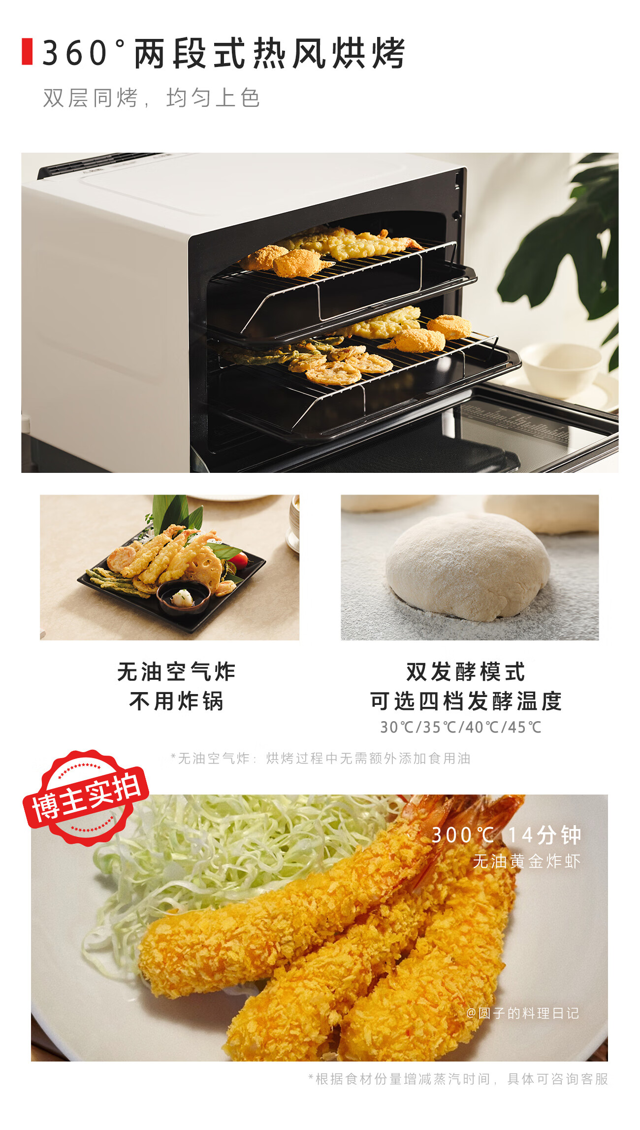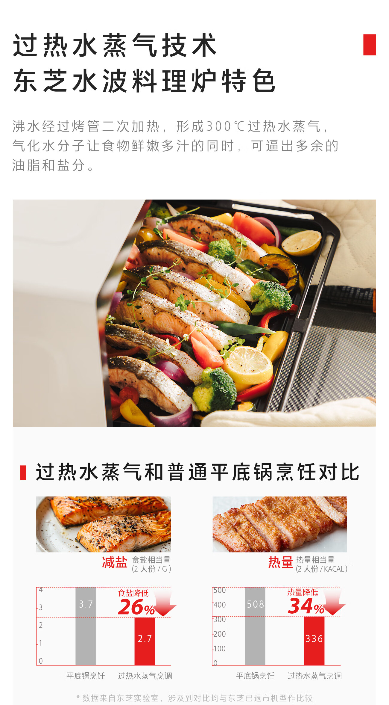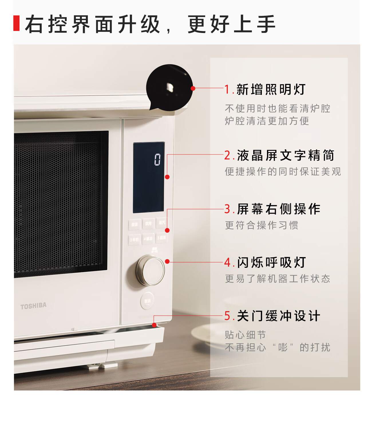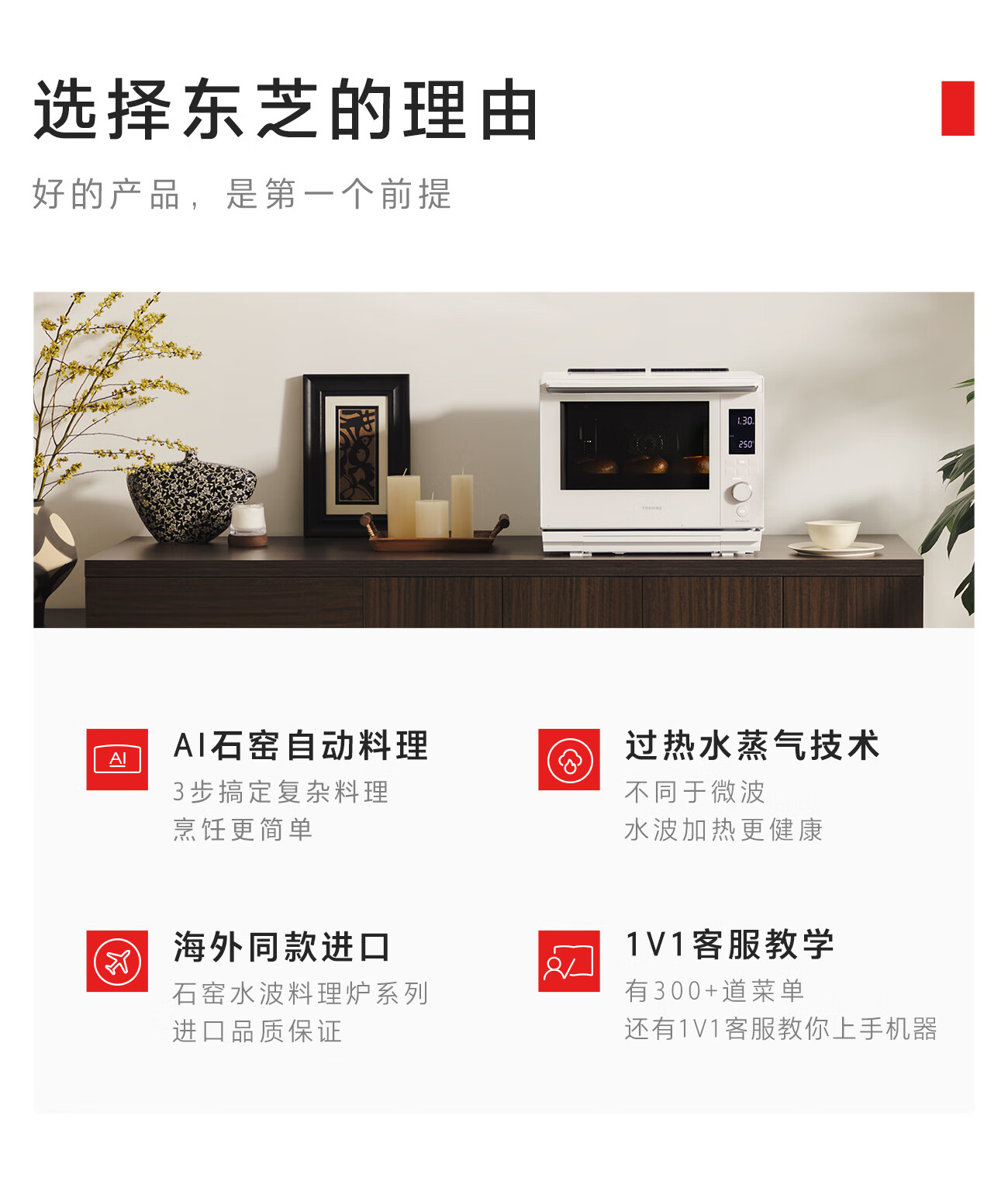 东芝(TOSHIBA)东芝ER-YD5000CNW微蒸烤炸一体机水波炉家用台式变频微波炉电烤箱空气炸蒸箱平板隐藏烤管白色30L