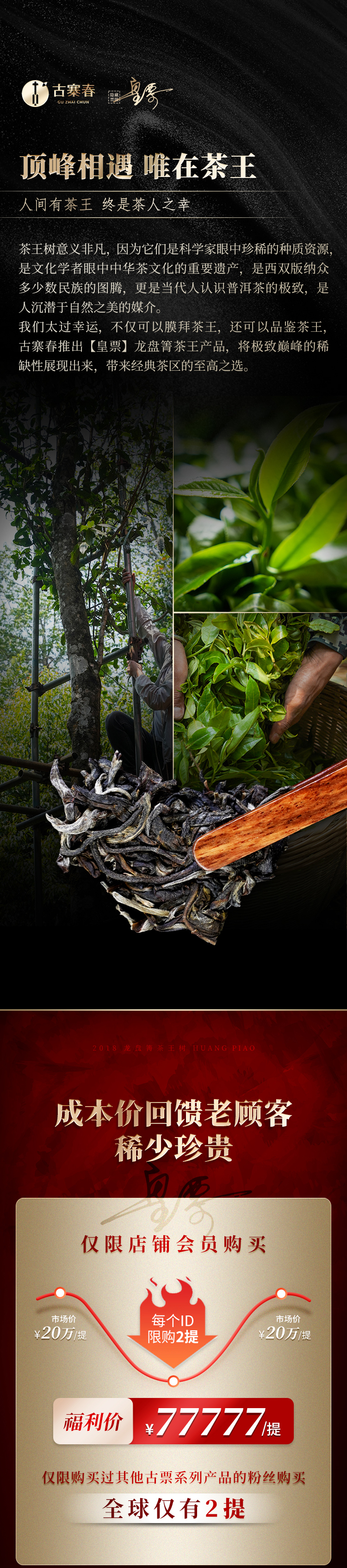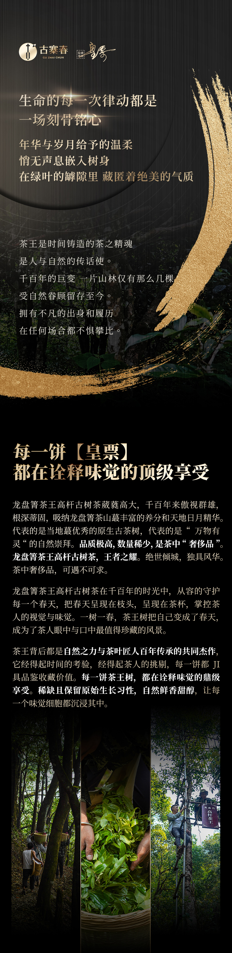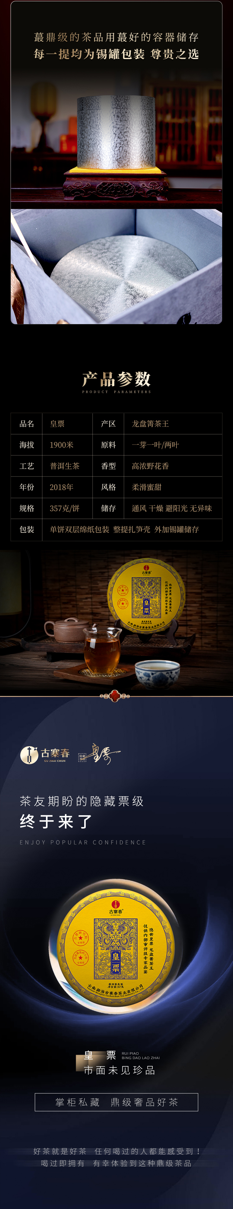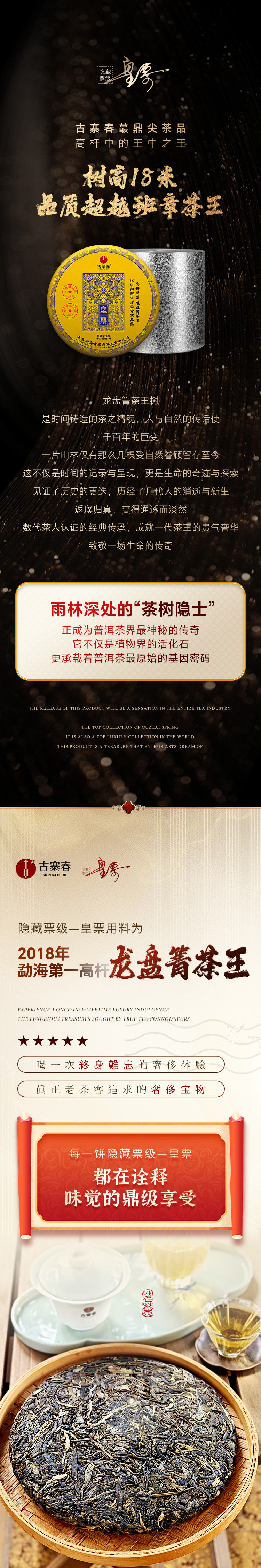 蕞鼎级产品【皇票】2018年龙盘箐茶王,勐海第一高杆古寨春蕞鼎级产品,线上开业留存至今回馈喜欢极致口感的茶友,357克/饼*5,锡罐包装