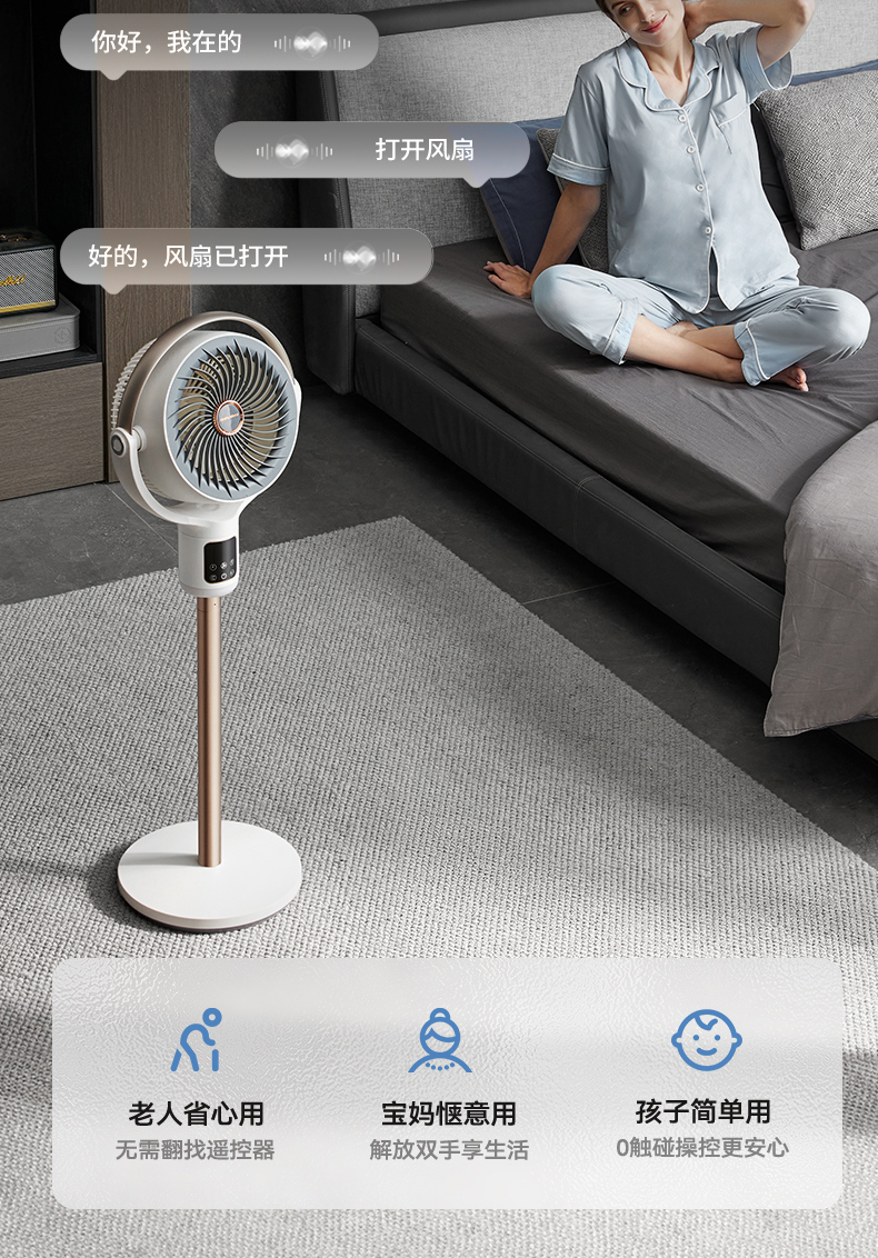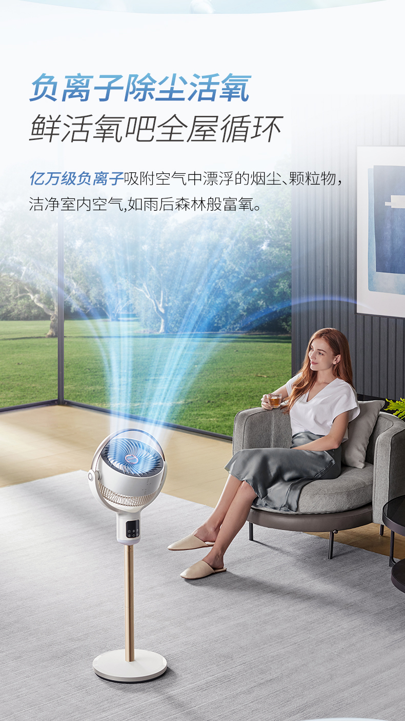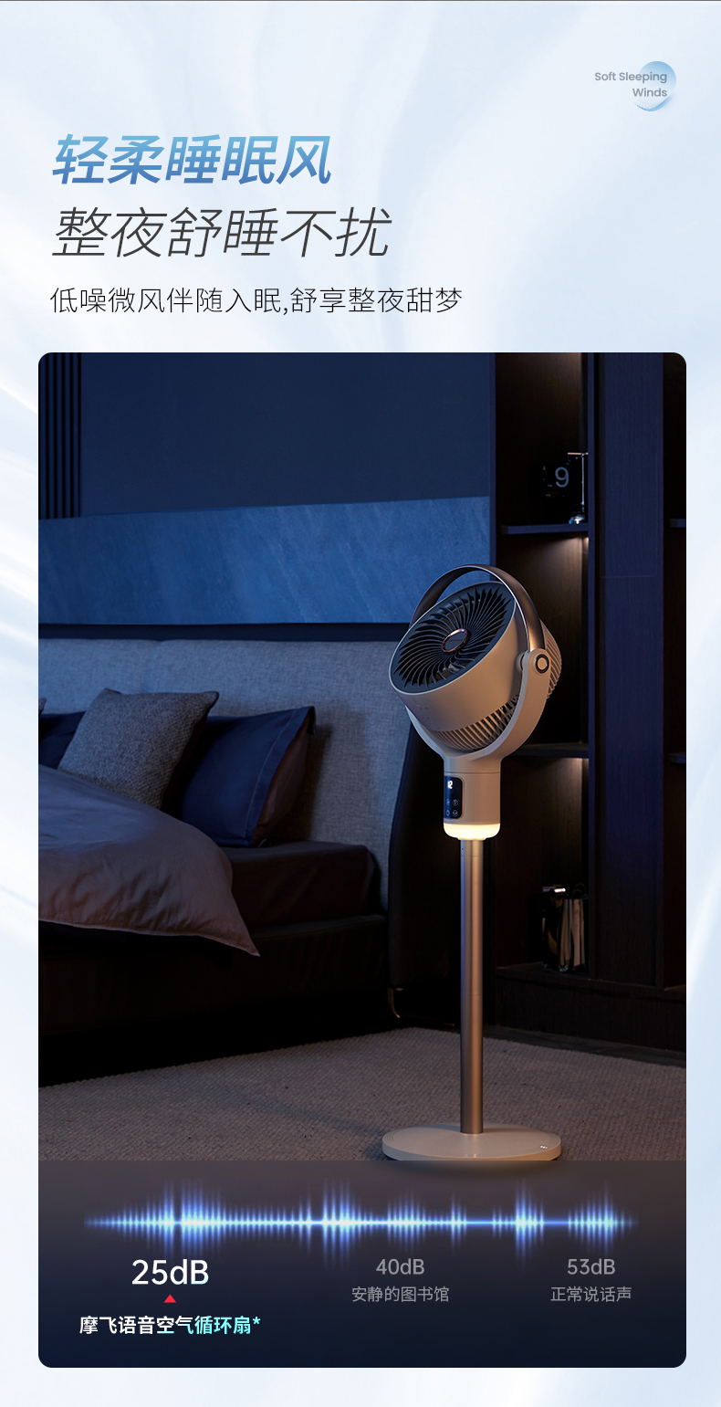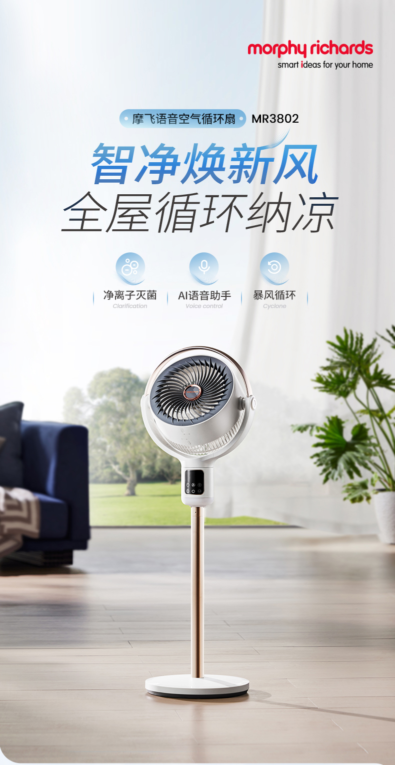 摩飞语音空气循环扇MR3802 家用负离子净化除菌3D送风静柔音直流变频节能摇头电风扇