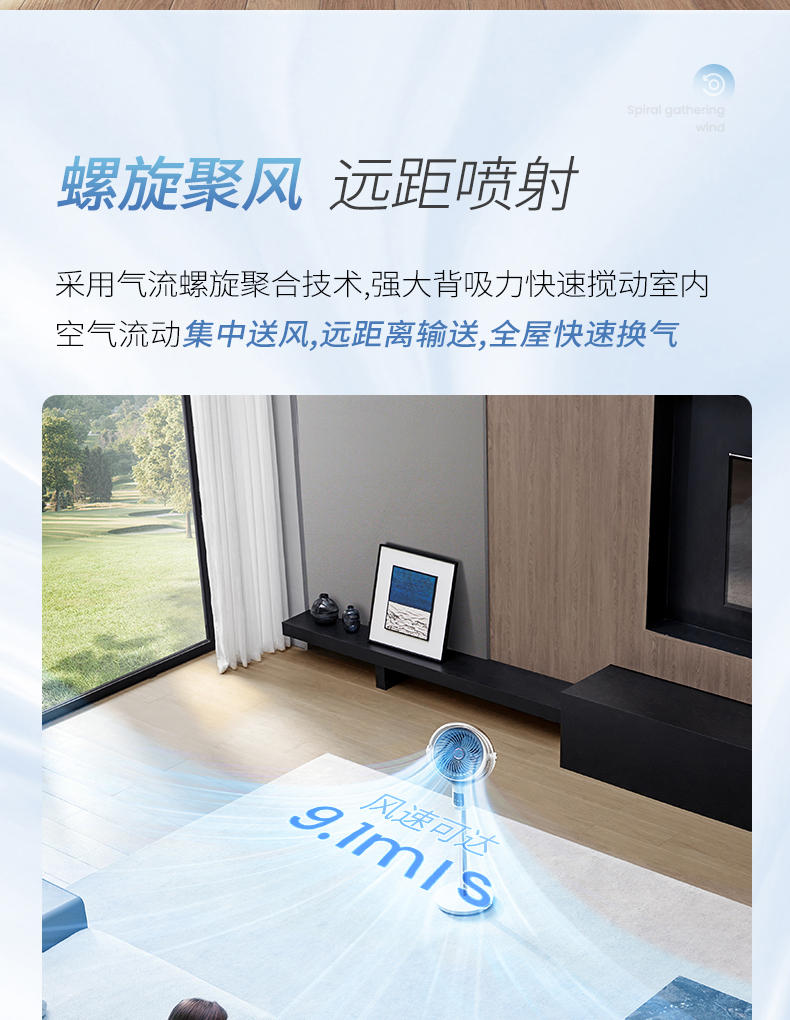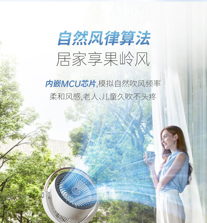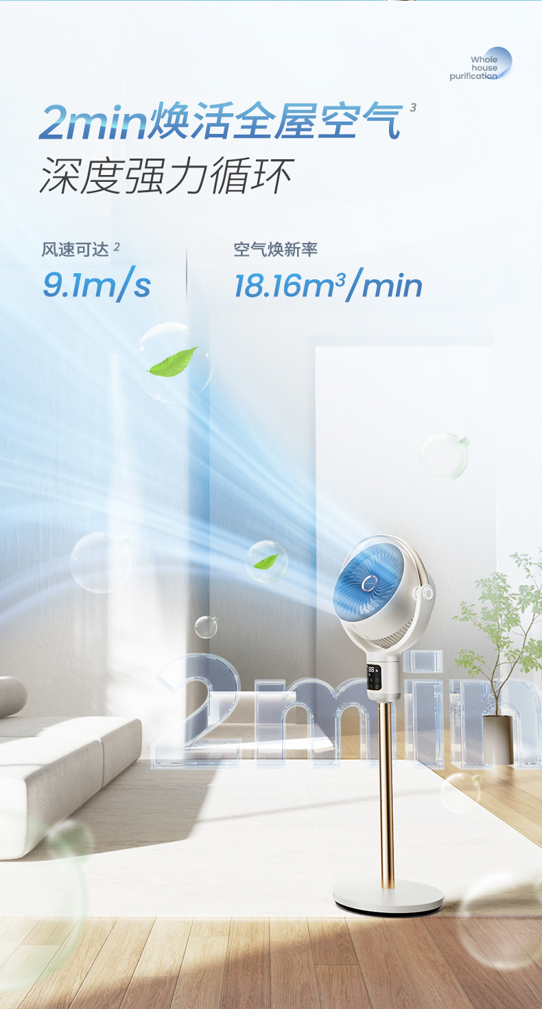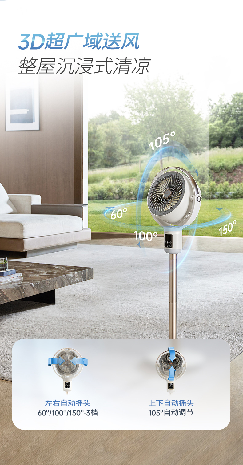 摩飞语音空气循环扇MR3802 家用负离子净化除菌3D送风静柔音直流变频节能摇头电风扇
