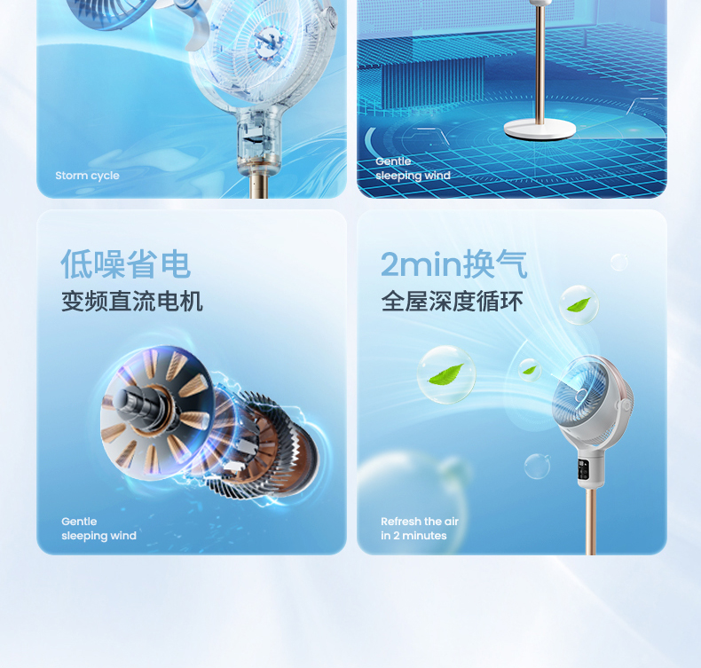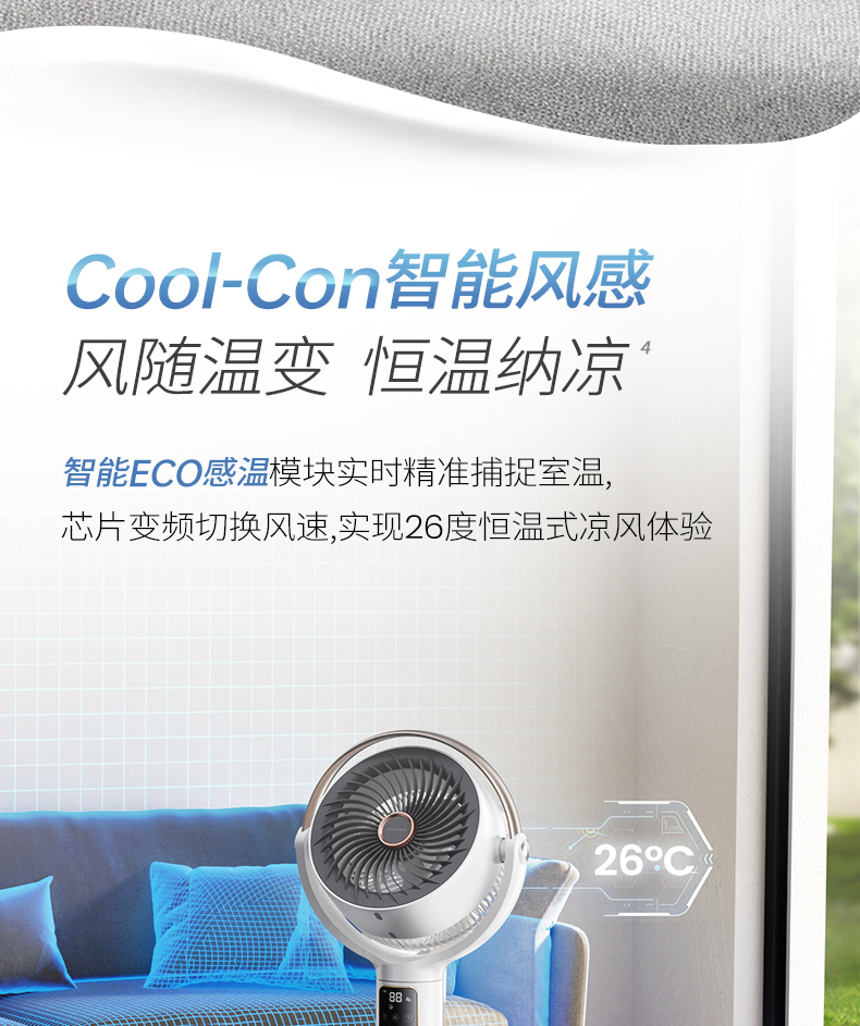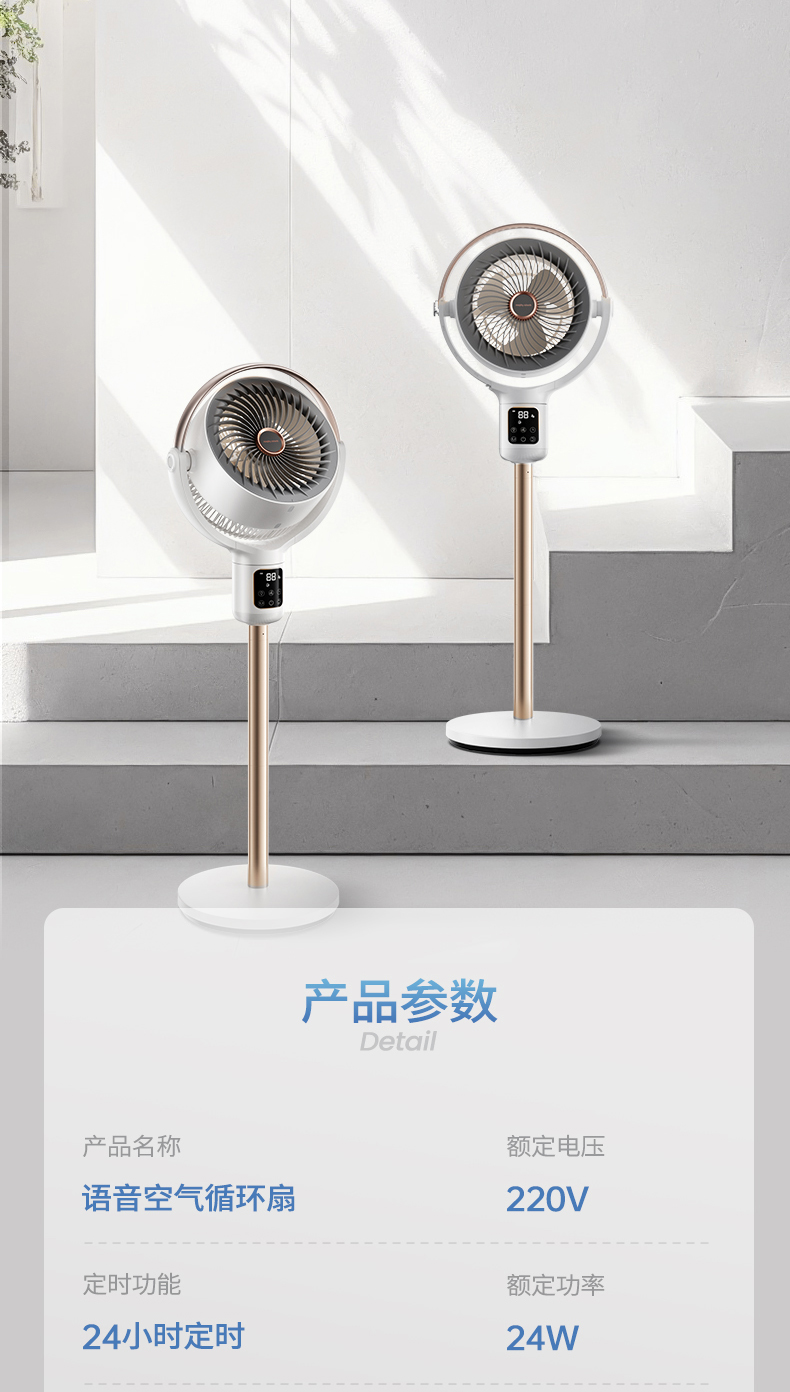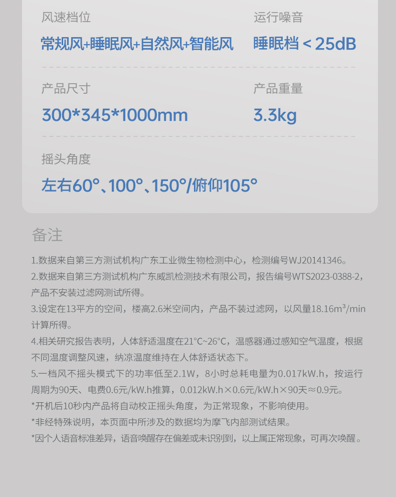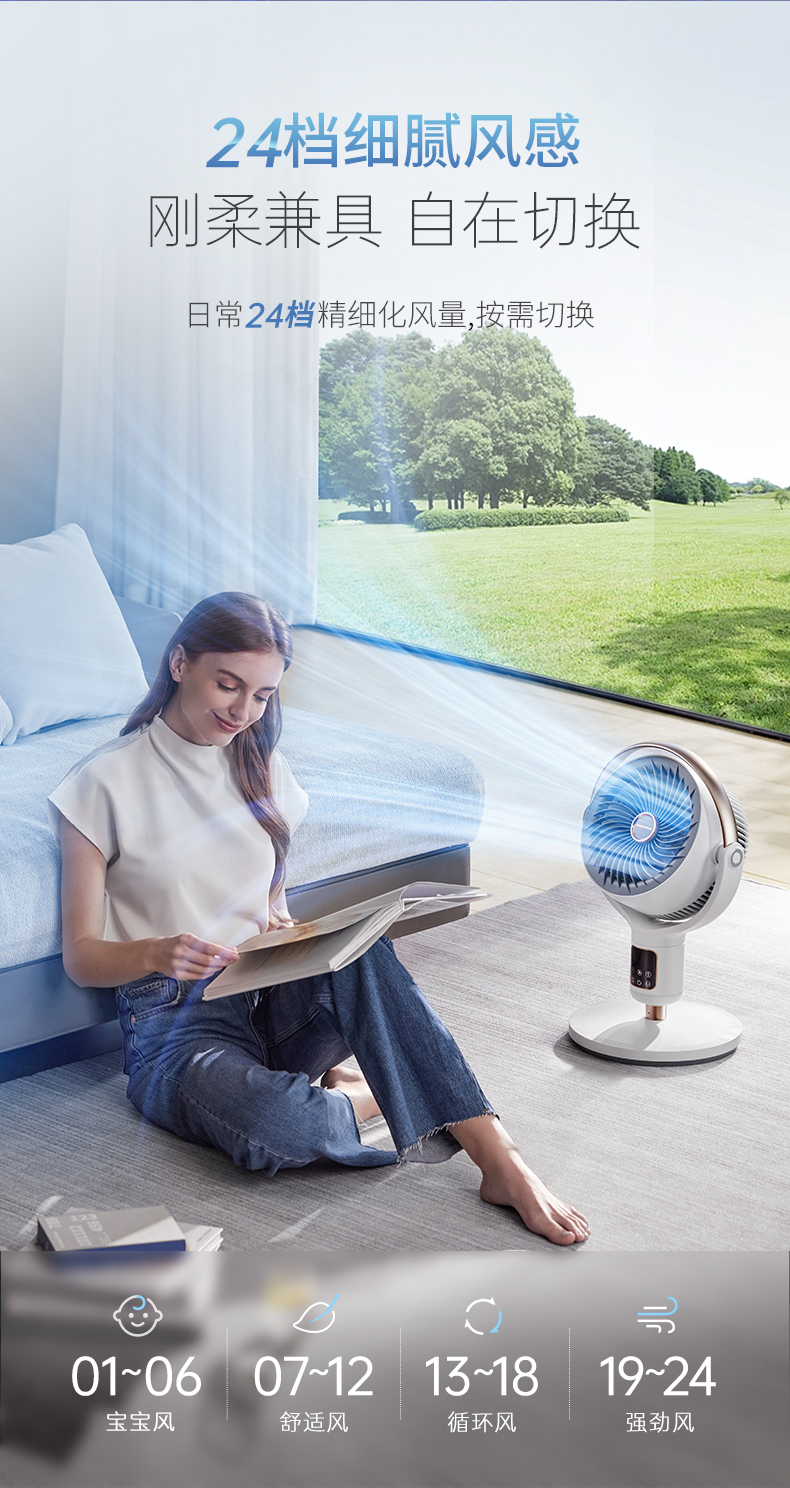摩飞语音空气循环扇MR3802 家用负离子净化除菌3D送风静柔音直流变频节能摇头电风扇