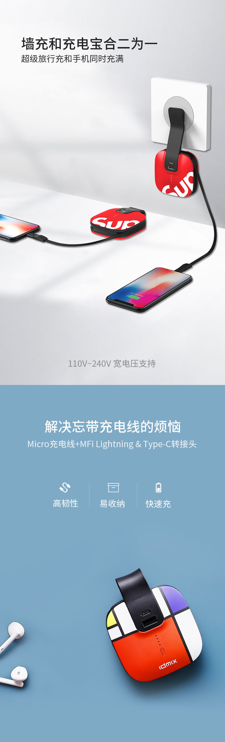 idmix自带插头自带线充电宝 移动电源