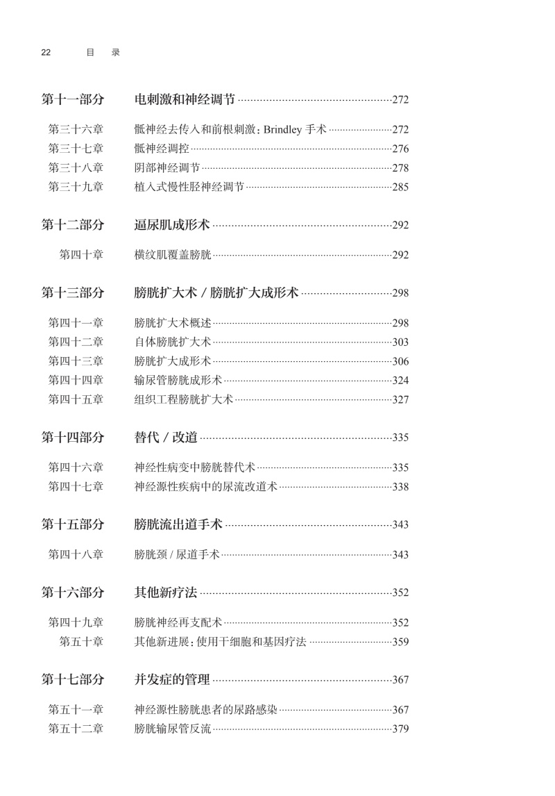 第一部分 解剖学基础 / 1 第一章 上下尿路的解剖 /1 第二部分 下尿路的神经支配与神经控制 / 15 第二章 尿路上皮的传感和换能功能 /15 第三章 下尿路的周围神经控制 /22 第四章 脊髓 /30 第五章 控制膀胱的中枢通路 /45 第六章 膀胱储尿和排尿的神经控制概述 /48 第三部分 生理学和药理学 / 52 第七章 下尿路整合生理学 /52 第八章 下尿路的药理学 /68 第四部分 病理学和病理生理学 / 96 第九章 下尿路的病理学和病理生理学 /96 第五部分 流行病学 /107 第十章 神经源性下尿路功能障碍的流行病学 /107 第六部分 分类 /111 第十一章 神经源性下尿路功能障碍的分类和术语 /111 第七部分 诊断和评估 /120 第十二章 病史 /120 第十三章 体格检查 /125 第十四章 一般实验室检测 /128 第十五章 传统尿动力学 /131 第十六章 动态尿动力学 /141 第十七章 尿动力学期间的诱发测试 /142 第十八章 神经源性膀胱的尿动力学发现 /143 第十九章 神经源性膀胱的神经生理学评估 /152 第二十章 成像技术评估神经源性膀胱功能障碍 /158 第二十一章 肾功能评估 /170 第二十二章 内镜评估神经源性膀胱 /174 第八部分 治疗 /176 第二十三章 治疗目的及一般原则 /176 第九部分 非侵入性传统治疗 /182 第二十四章 辅助膀胱排空 /182 第二十五章 下尿路康复 /186 第二十六章 重复磁刺激 /191 第二十七章 药物治疗 /203 第二十八章 外部装置 /233 第十部分 微创治疗 /239 第二十九章 间歇导尿 /239 第三十章 膀胱腔内药物治疗 /246 第三十一章 膀胱内电刺激 /249 第三十二章 经皮穿刺/ 经皮贴片胫神经刺激 /253 第三十三章 膀胱壁和尿道括约肌肉毒毒素注射术 /259 第三十四章 肉毒毒素和膀胱:未来的研究方向 /267 第三十五章 球囊扩张 /270 第十一部分 电刺激和神经调节 /272 第三十六章 骶神经去传入和前根刺激:Brindley 手术 /272 第三十七章 骶神经调控 /276 第三十八章 阴部神经调节 /278 第三十九章 植入式慢性胫神经调节 /285 第十二部分 逼尿肌成形术 /292 第四十章 横纹肌覆盖膀胱 /292 第十三部分 膀胱扩大术/ 膀胱扩大成形术 /298 第四十一章 膀胱扩大术概述 /298 第四十二章 自体膀胱扩大术 /303 第四十三章 膀胱扩大成形术 /306 第四十四章 输尿管膀胱成形术 /324 第四十五章 组织工程膀胱扩大术 /327 第十四部分 替代/ 改道 /335 第四十六章 神经性病变中膀胱替代术 /335 第四十七章 神经源性疾病中的尿流改道术 /338 第十五部分 膀胱流出道手术 /343 第四十八章 膀胱颈/ 尿道手术 /343 第十六部分 其他新疗法 /352 第四十九章 膀胱神经再支配术 /352 第五十章 其他新进展:使用干细胞和基因疗法 /359 第十七部分 并发症的管理 /367 第五十一章 神经源性膀胱患者的尿路感染 /367 第五十二章 膀胱输尿管反流 /379 第五十三章 上尿路扩张 /380 第五十四章 膀胱/ 盆腔疼痛和神经源性炎症 /387 第五十五章 神经源性肠道功能障碍 /401 第五十六章 神经源性下尿路功能障碍中的性功能障碍和生育障碍 /409 第五十七章 神经源性膀胱患者的其他罕见并发症——当神经泌尿学疾病不为医疗保健体系覆盖时 /431 第十八部分 随访 /440 第五十八章 不同类型神经源性膀胱患者的随访 /440 第十九部分 一些神经系统疾病所致神经源性膀胱的特点 /445 第五十九章 脑血管意外 /445 第六十章 帕金森病 /449 第六十一章 痴呆 /460 第六十二章 多发性硬化症 /464 第六十三章 脊髓损伤 /472 第六十四章 儿童神经源性下尿路功能障碍 /482 第六十五章 多系统萎缩 /495 第六十六章 椎间盘疾病 /509 第六十七章 糖尿病 /516 第六十八章 根治性盆腔手术 /523 参考文献 /531 索引 /532