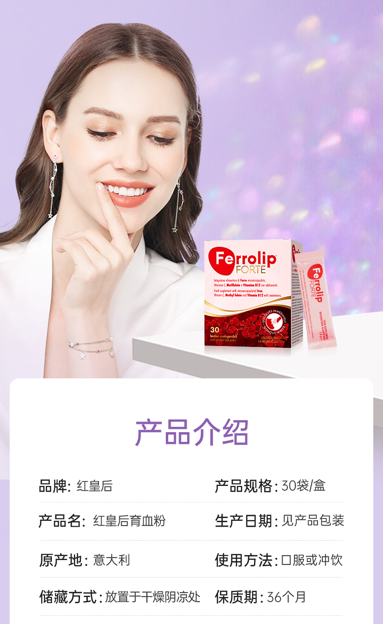 【分销专属】红皇后育血粉意之宝补铁剂贫血铁元素30袋/盒