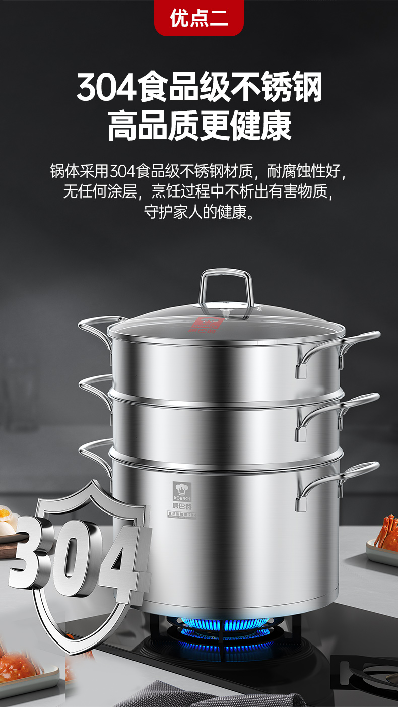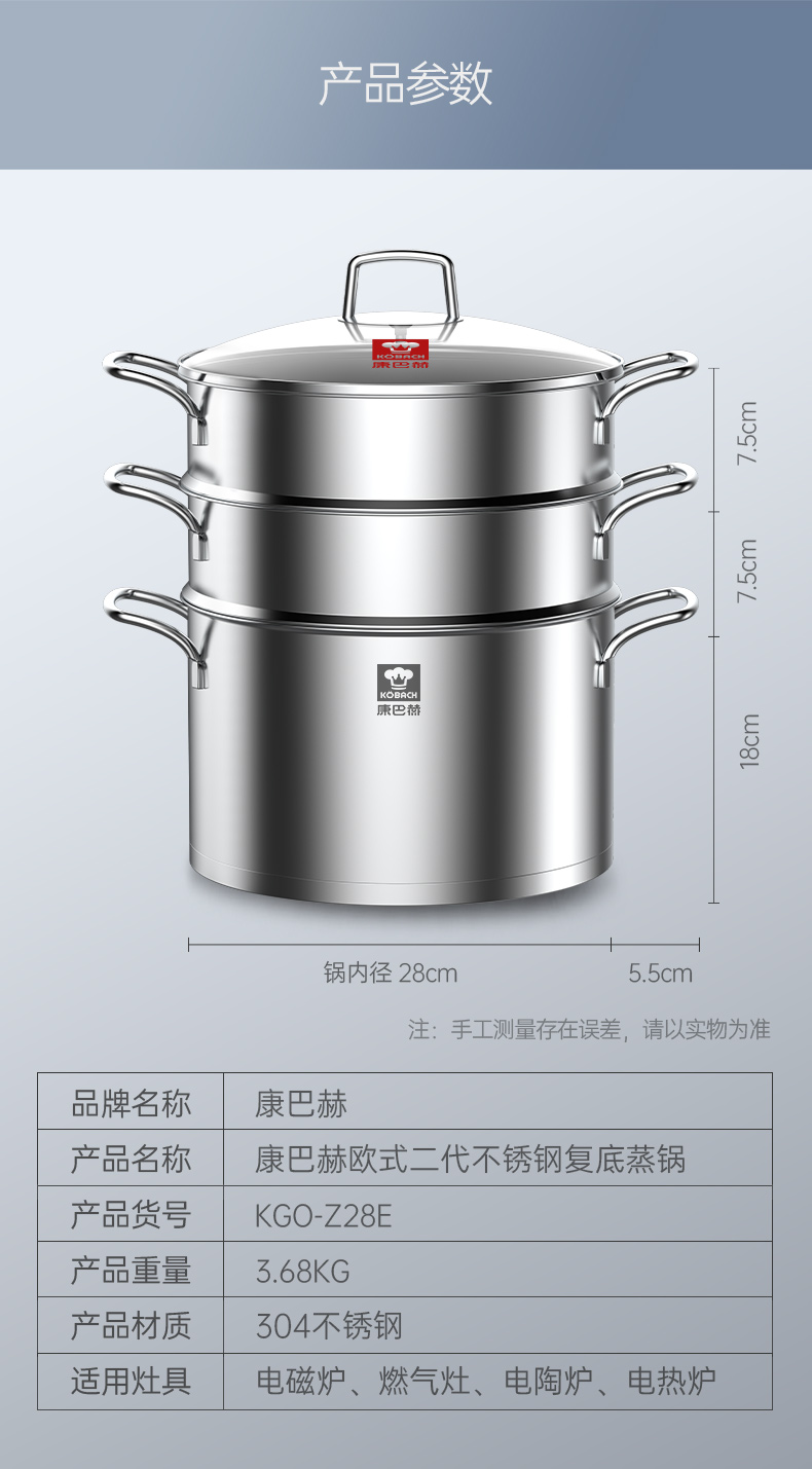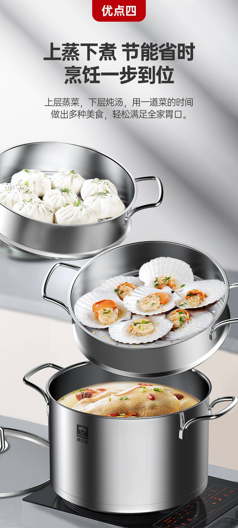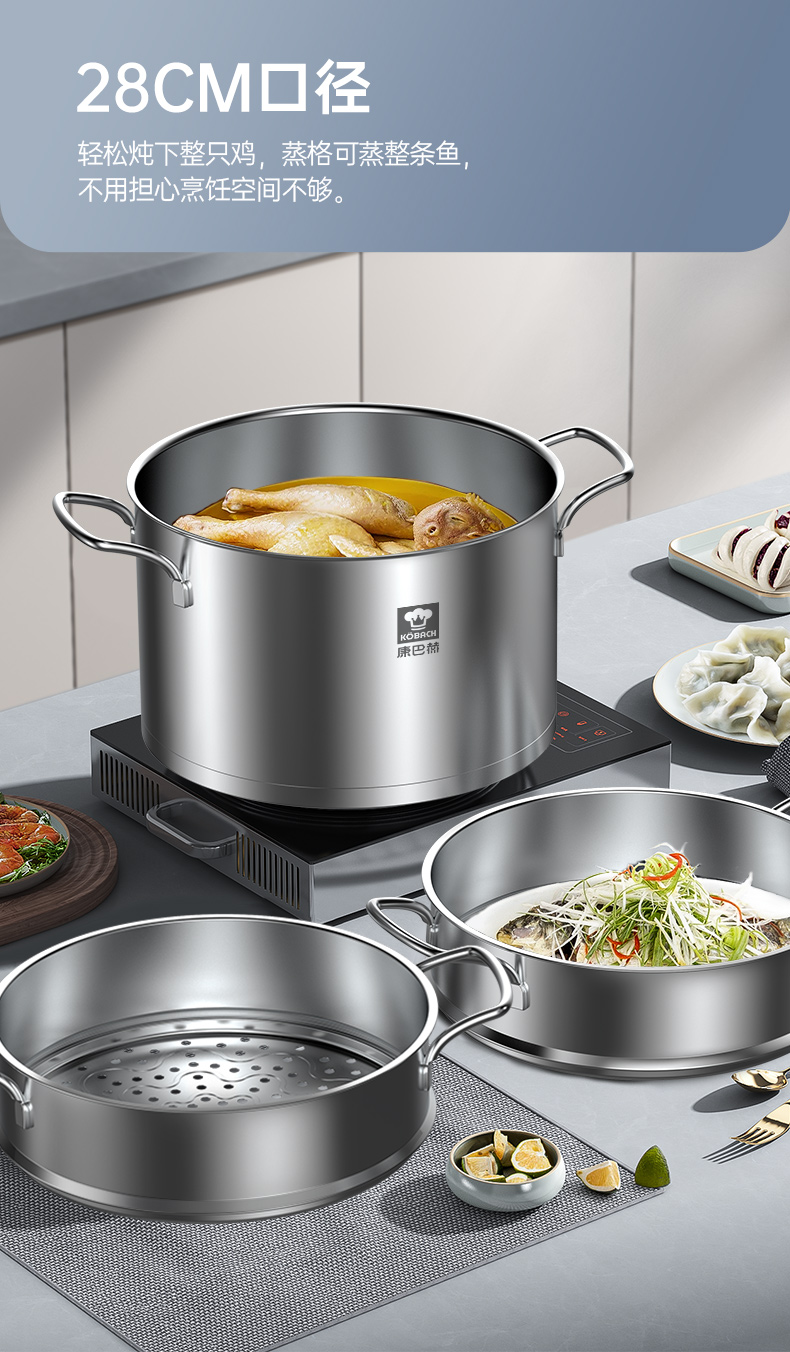 康巴赫汤锅加厚304不锈钢熬汤奶锅泡面辅食锅燃气电磁炉通用家用