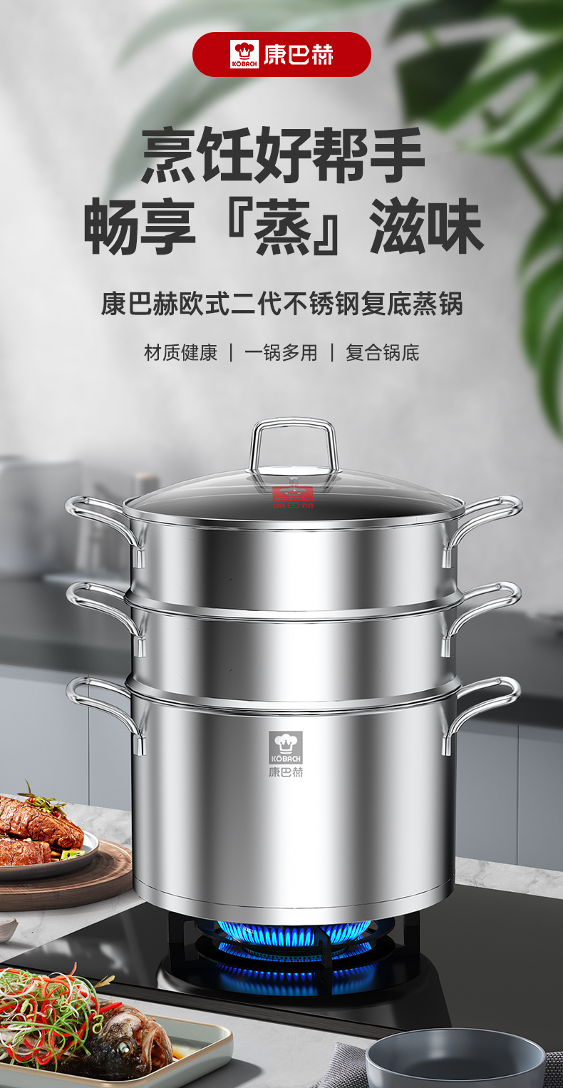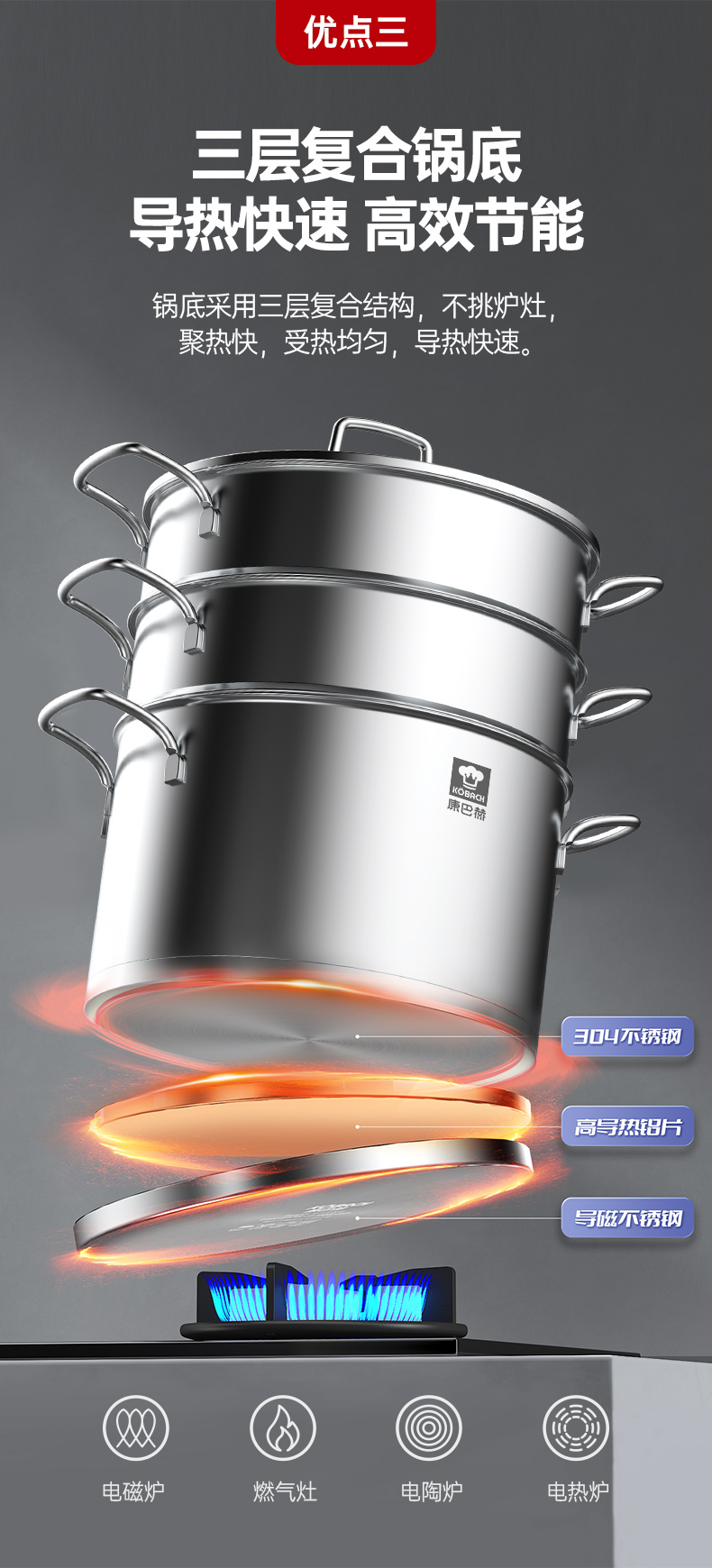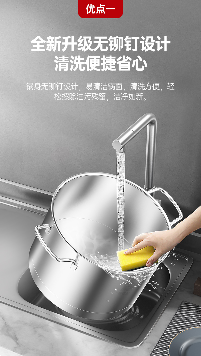 康巴赫汤锅加厚304不锈钢熬汤奶锅泡面辅食锅燃气电磁炉通用家用