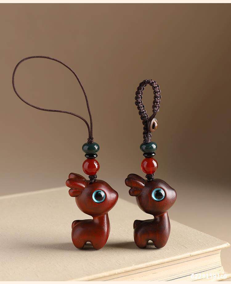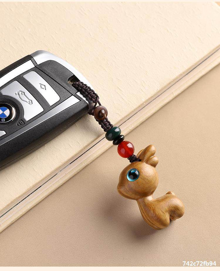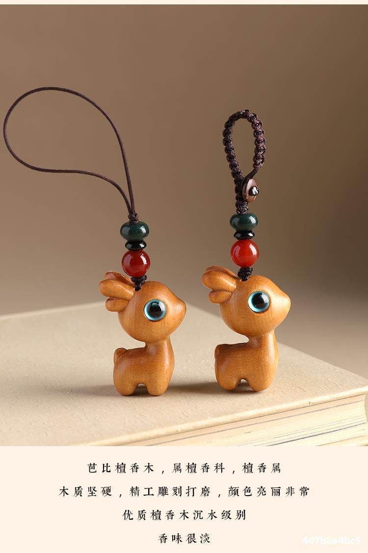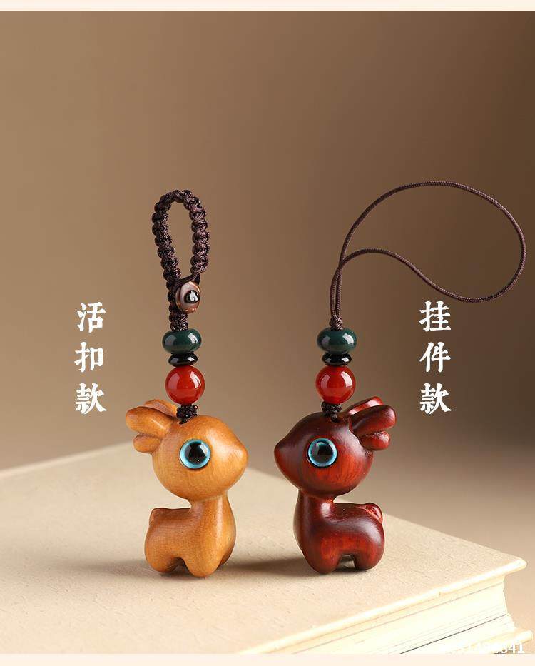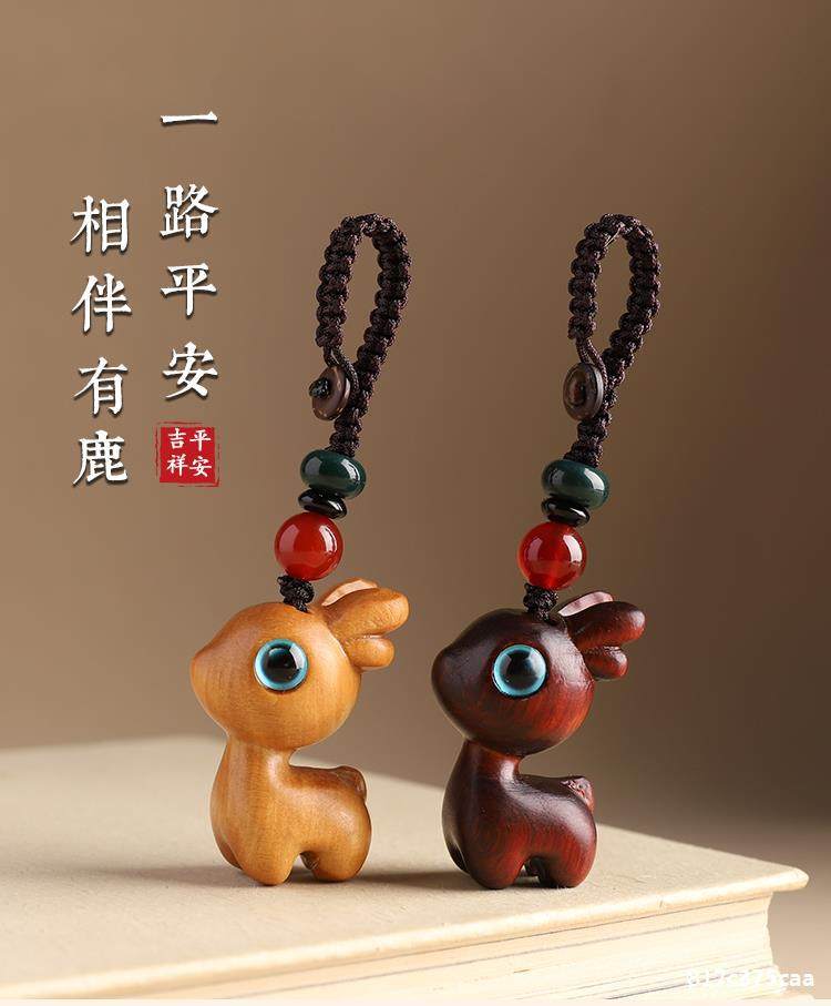 特惠钥匙扣挂件汽车路平钥匙情侣挂饰一路小鹿手机链吊檀木男女坠