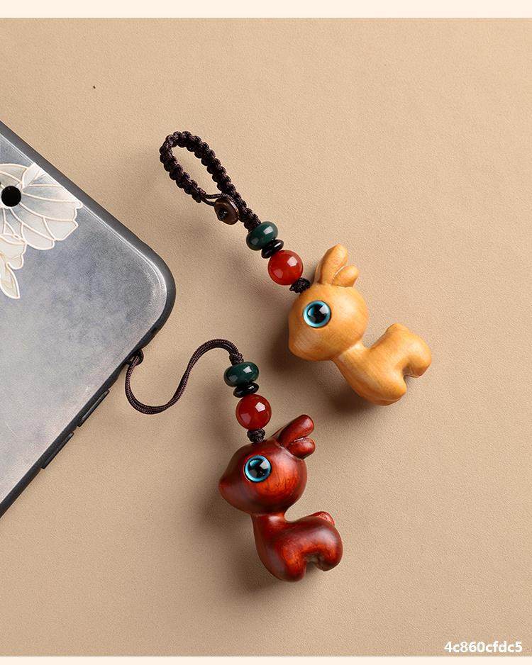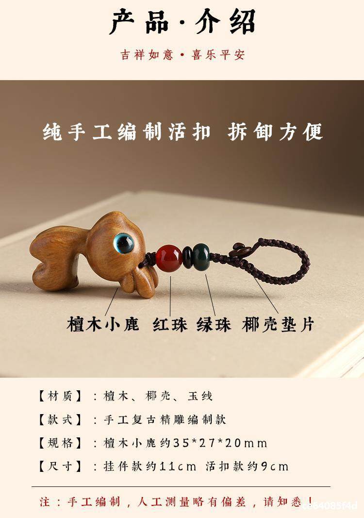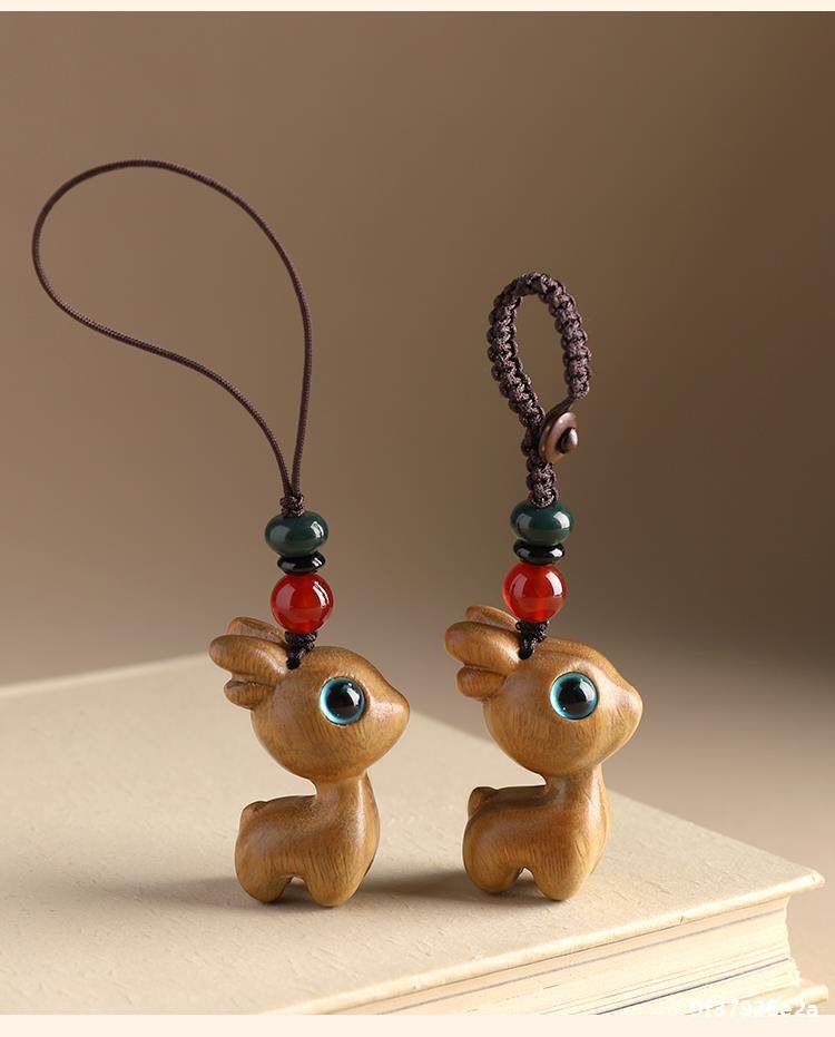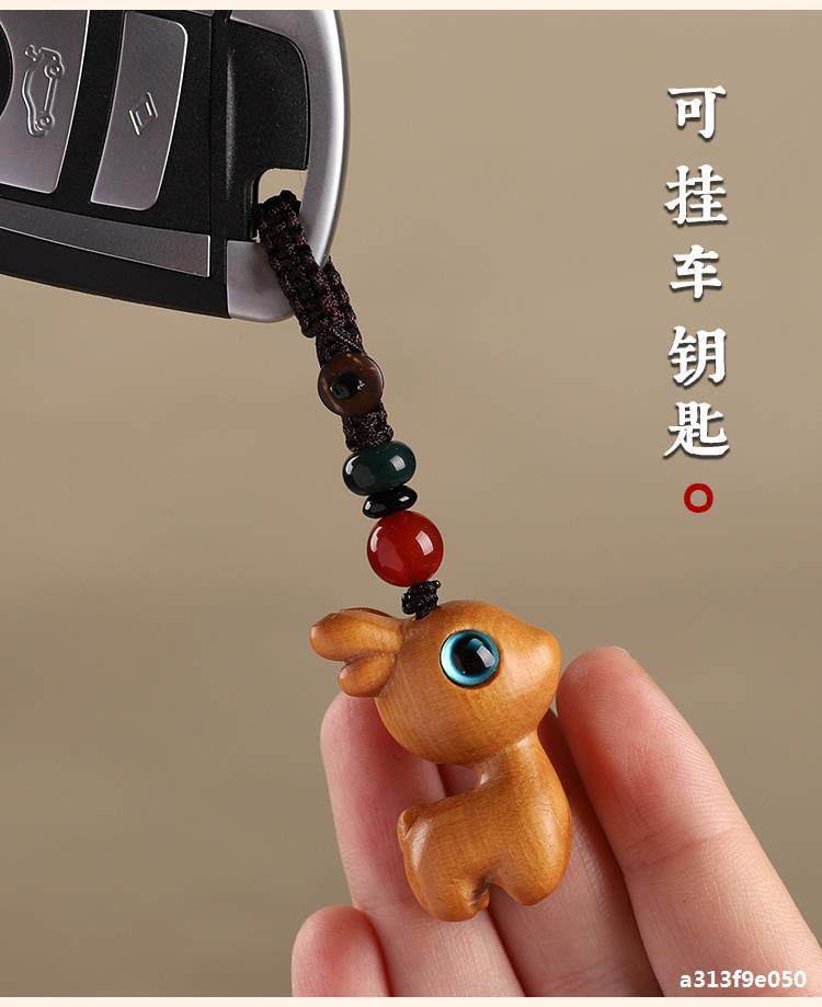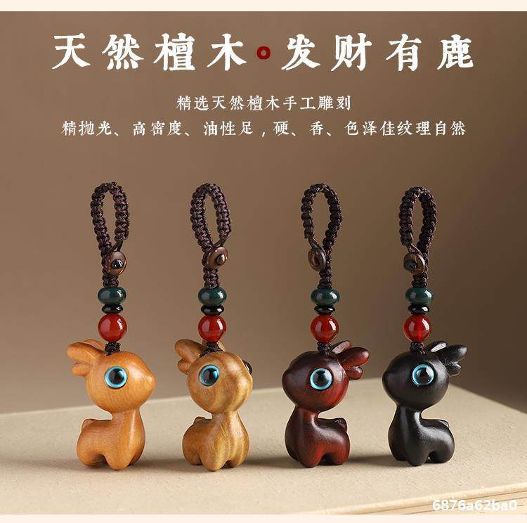 特惠钥匙扣挂件汽车路平钥匙情侣挂饰一路小鹿手机链吊檀木男女坠