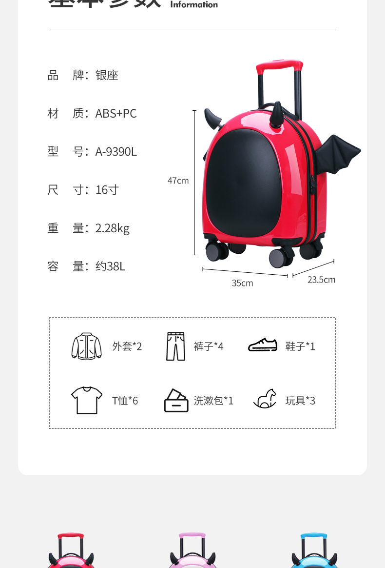 银座 小恶魔儿童拉杆箱16寸便携旅行箱万向轮行李箱男女童 A-9390L