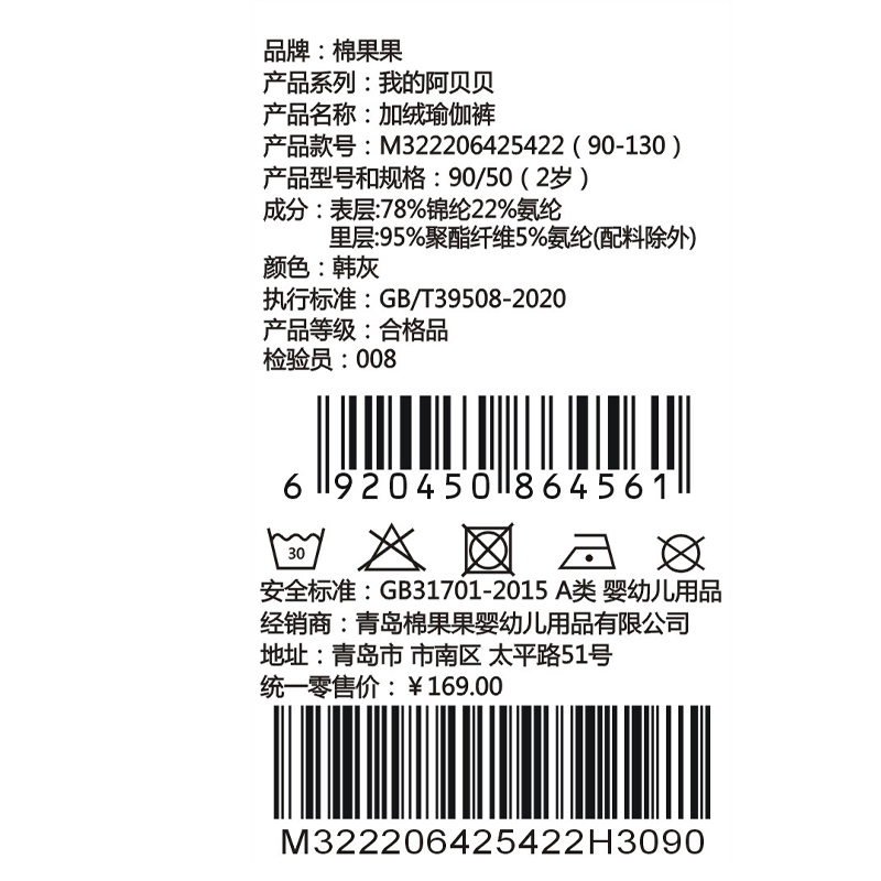 | 裤长 | 49 | 54.5 | 60.5 | 66.5 | 73 |