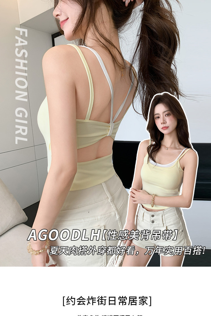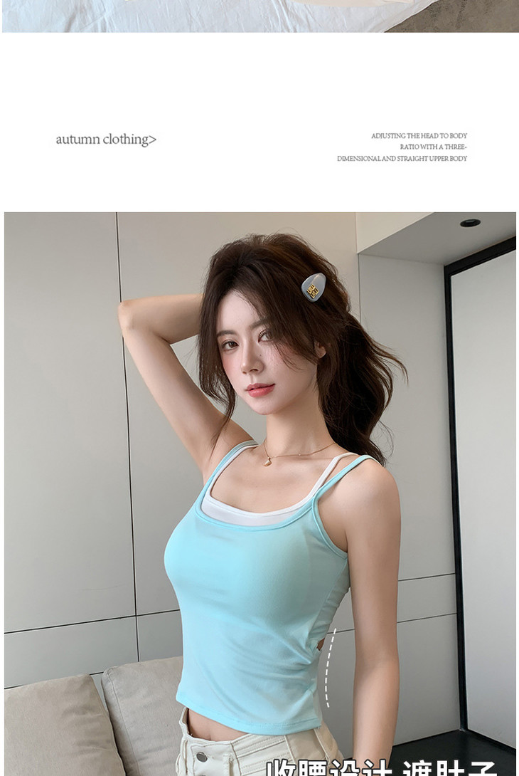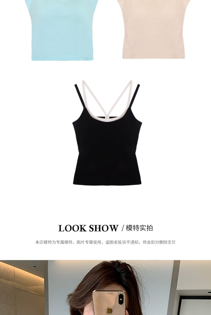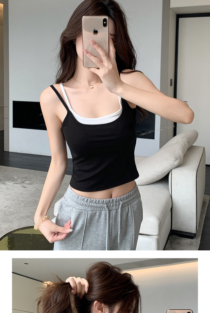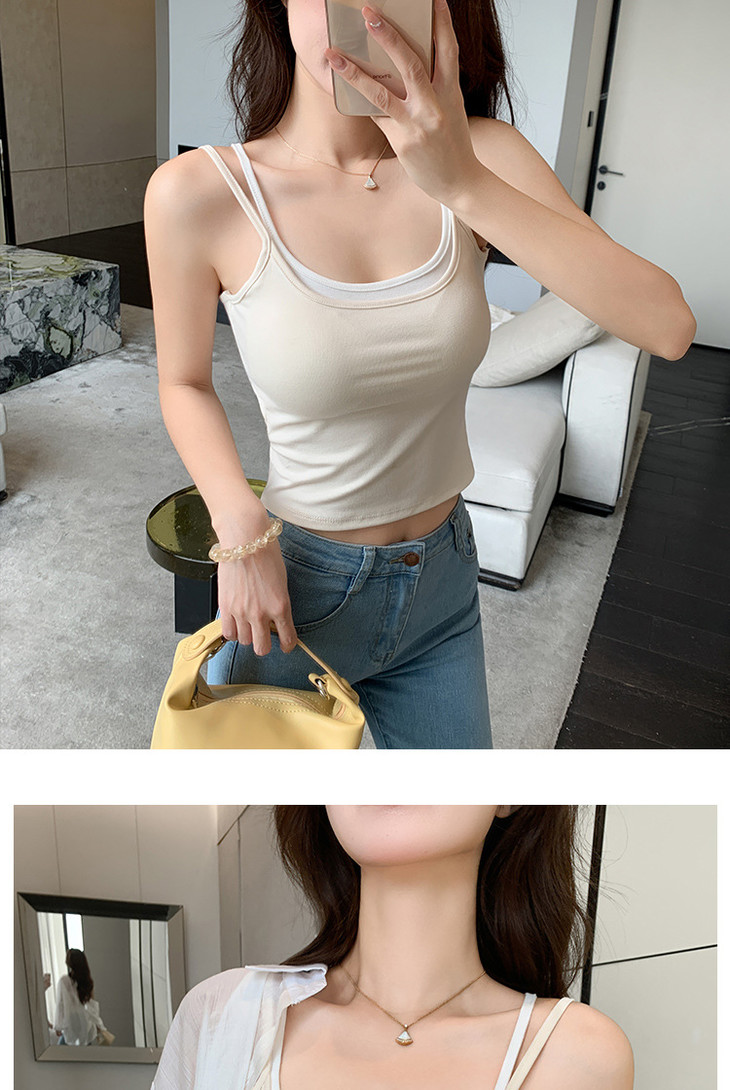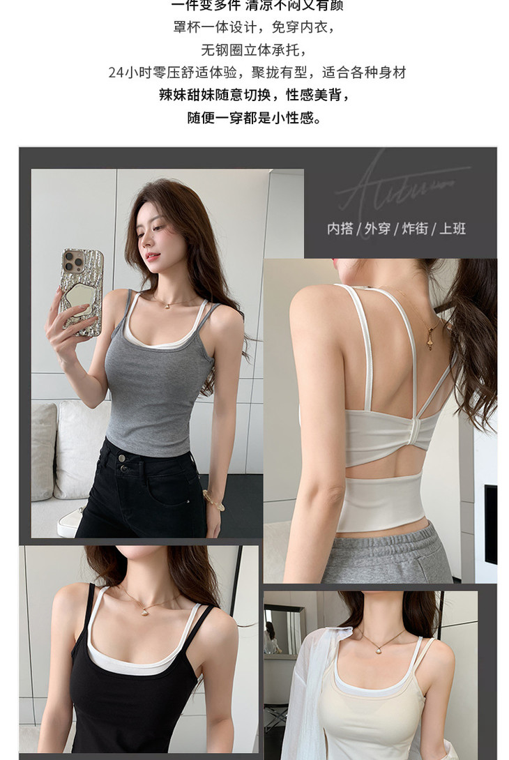 【拍1发2 假两件小吊带背心】女夏季修身显瘦带胸垫内搭辣妹可外穿上衣