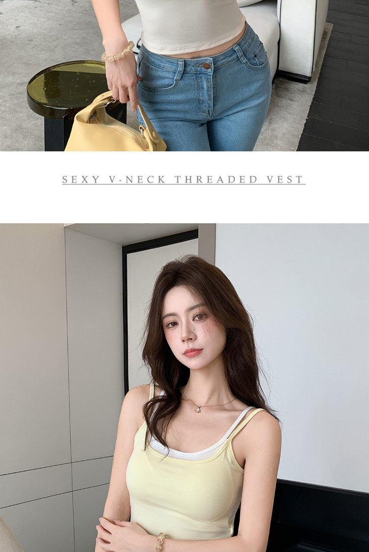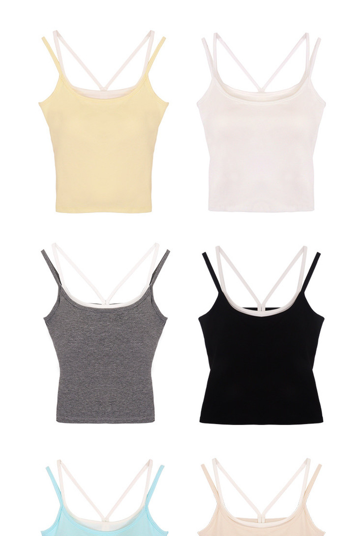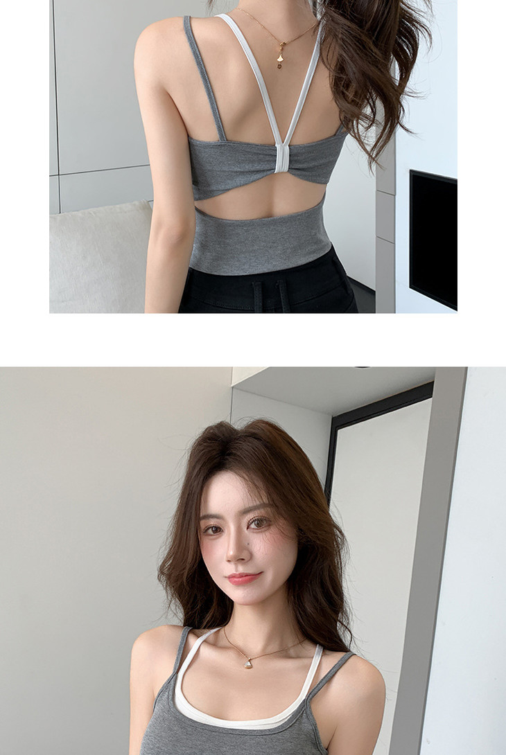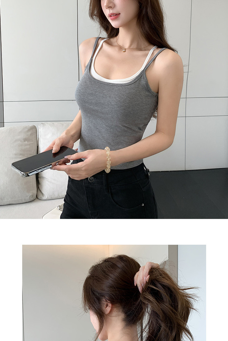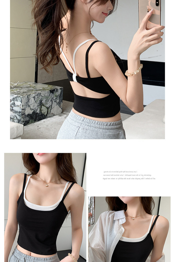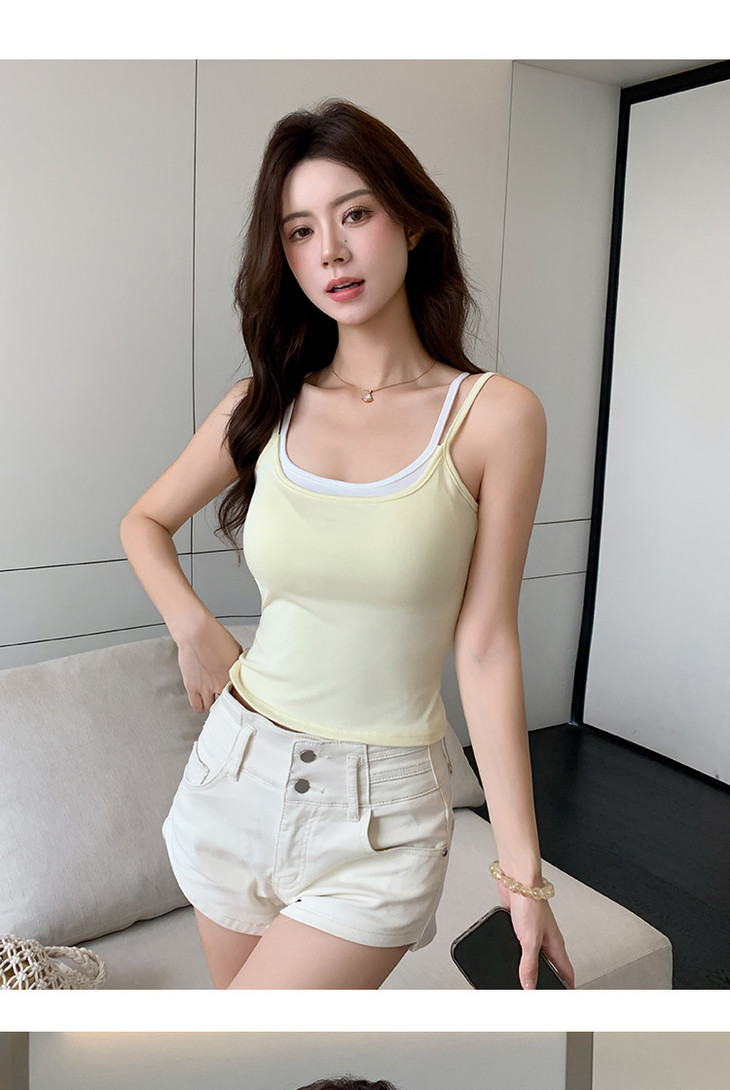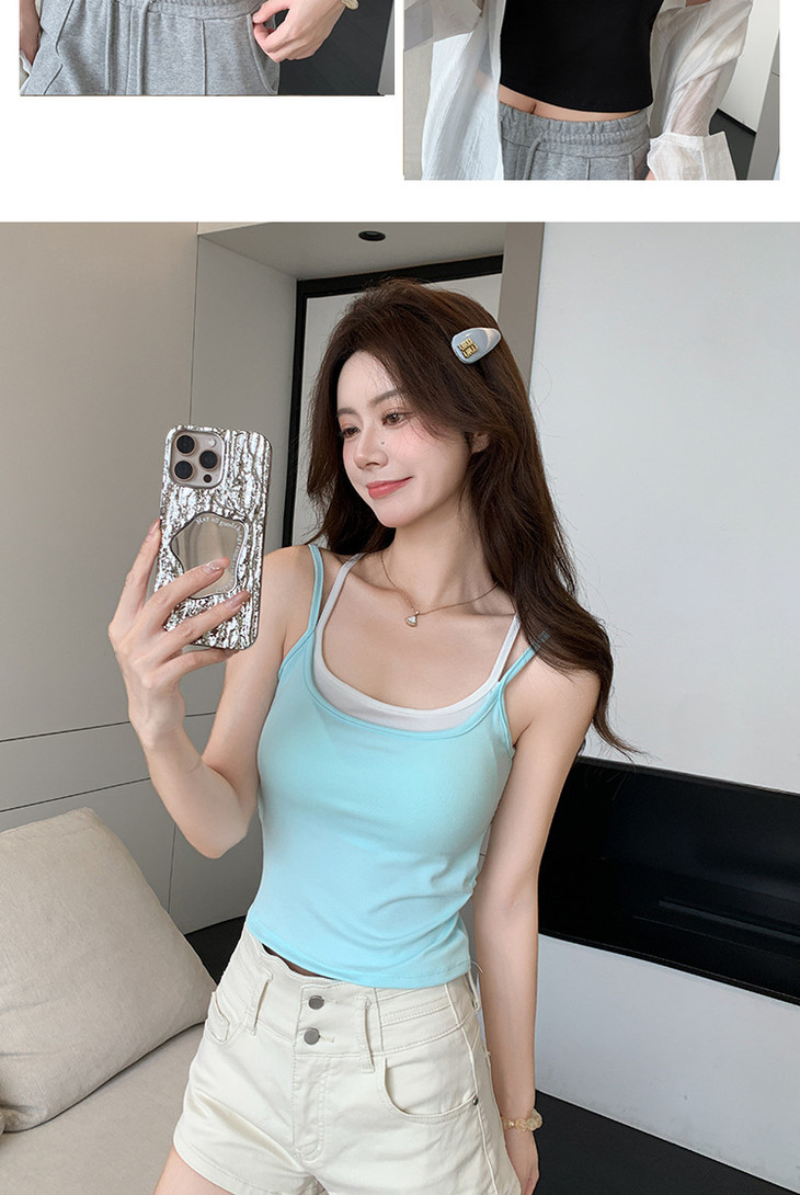 【拍1发2 假两件小吊带背心】女夏季修身显瘦带胸垫内搭辣妹可外穿上衣