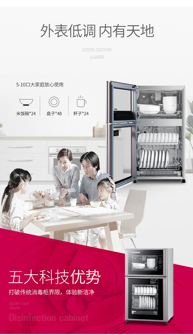 康星(508179 )ZTP76-KF消毒柜 家用 立式消毒碗柜 双门商用柜式大型家用柜