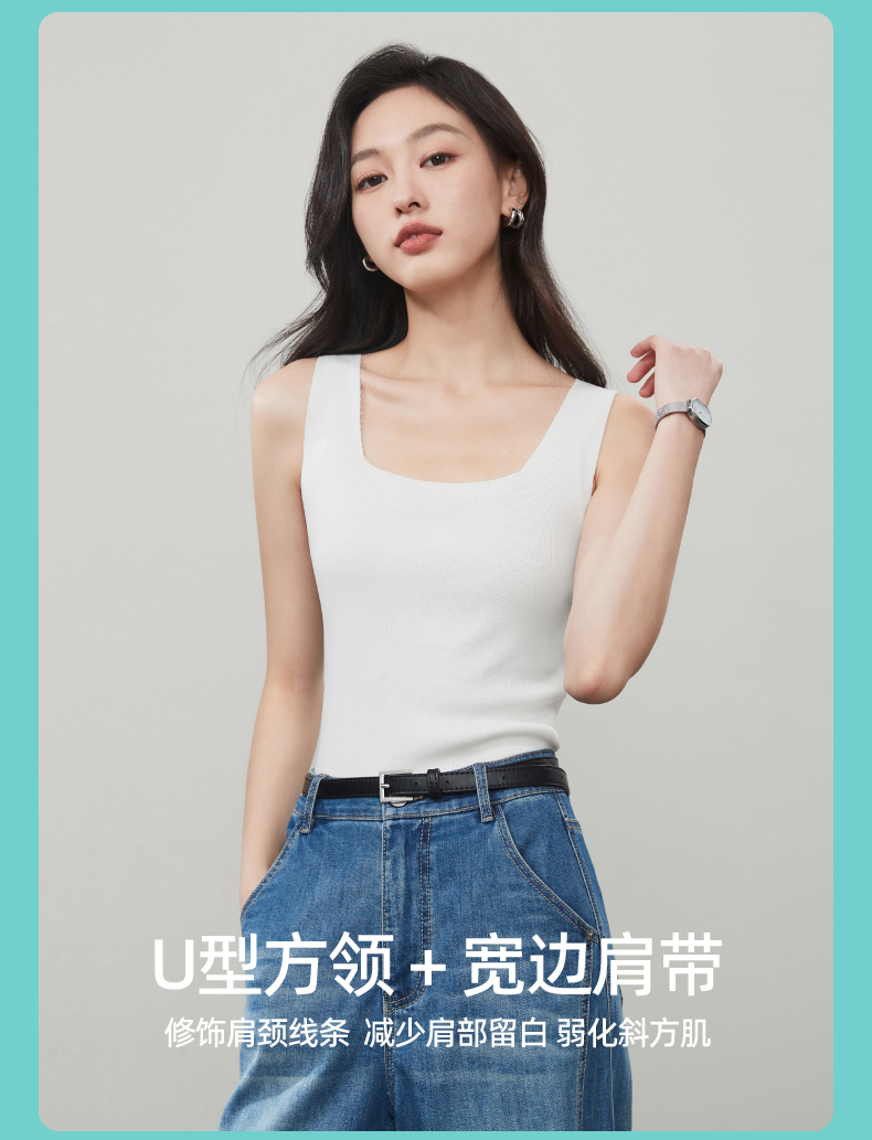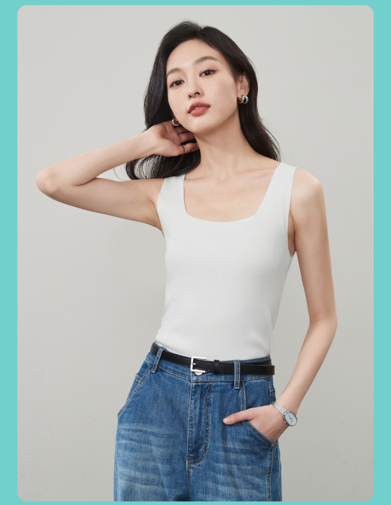 【方领冰麻针织背心】逸阳夏季无痕凉感内搭修身上衣5173