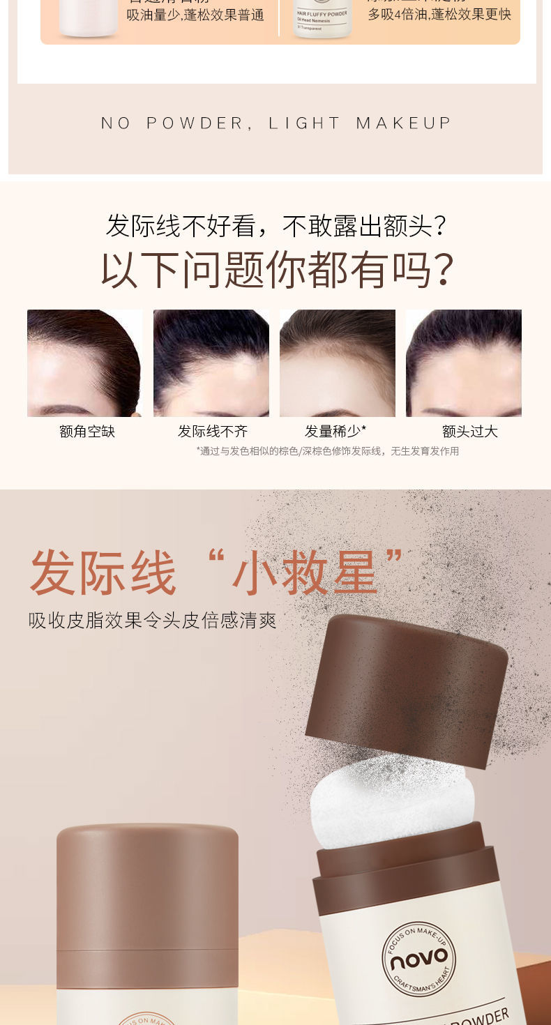 约会装备!蓬蓬蓬粉~NOVO发际线刘海免洗蓬松去控油头防水防汗阴影填充补发神器