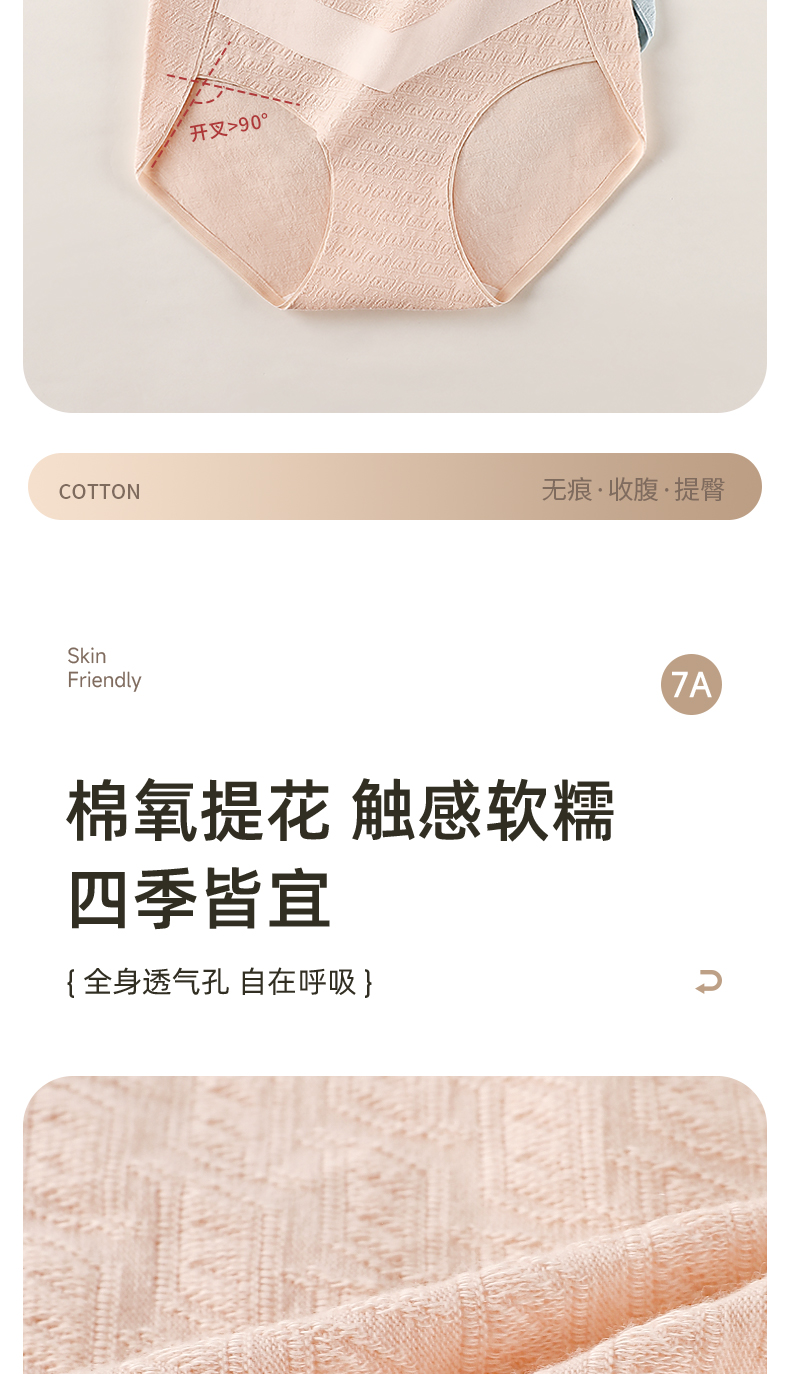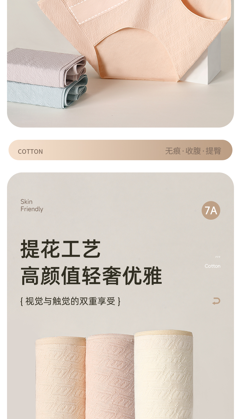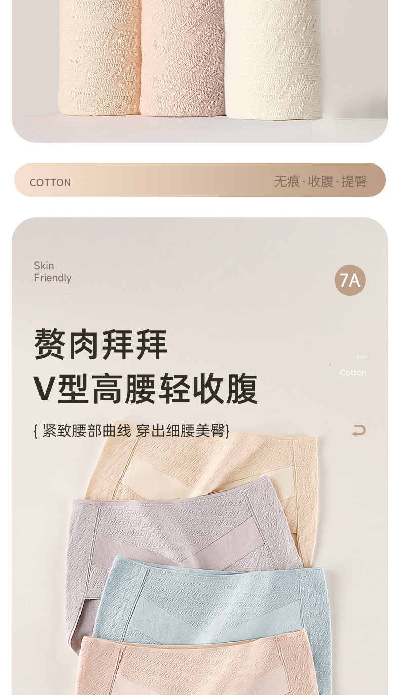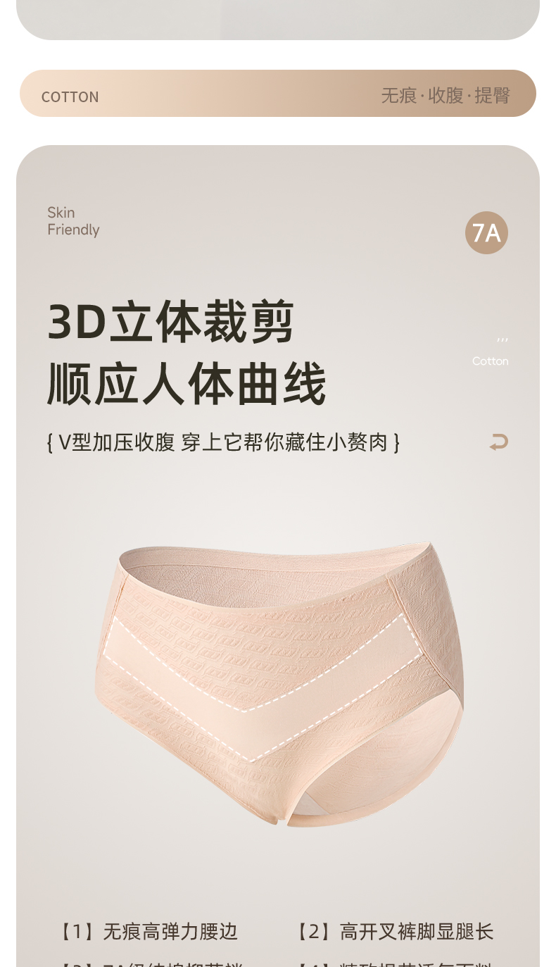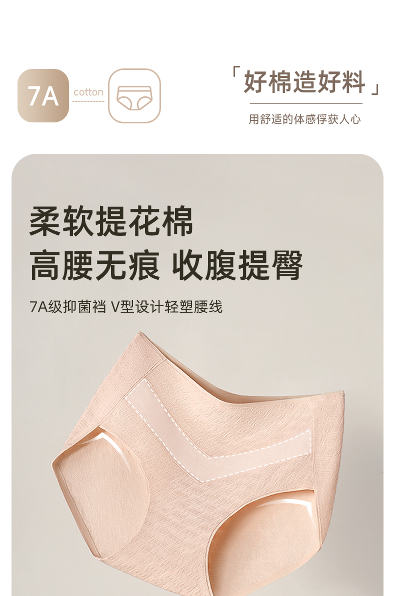 7A级抑菌提花纯棉裤3条装 V型高腰轻塑收腹 高弹提臀不勒不夹臀 柔软纯棉7A抑菌 美臀裤底裤内裤