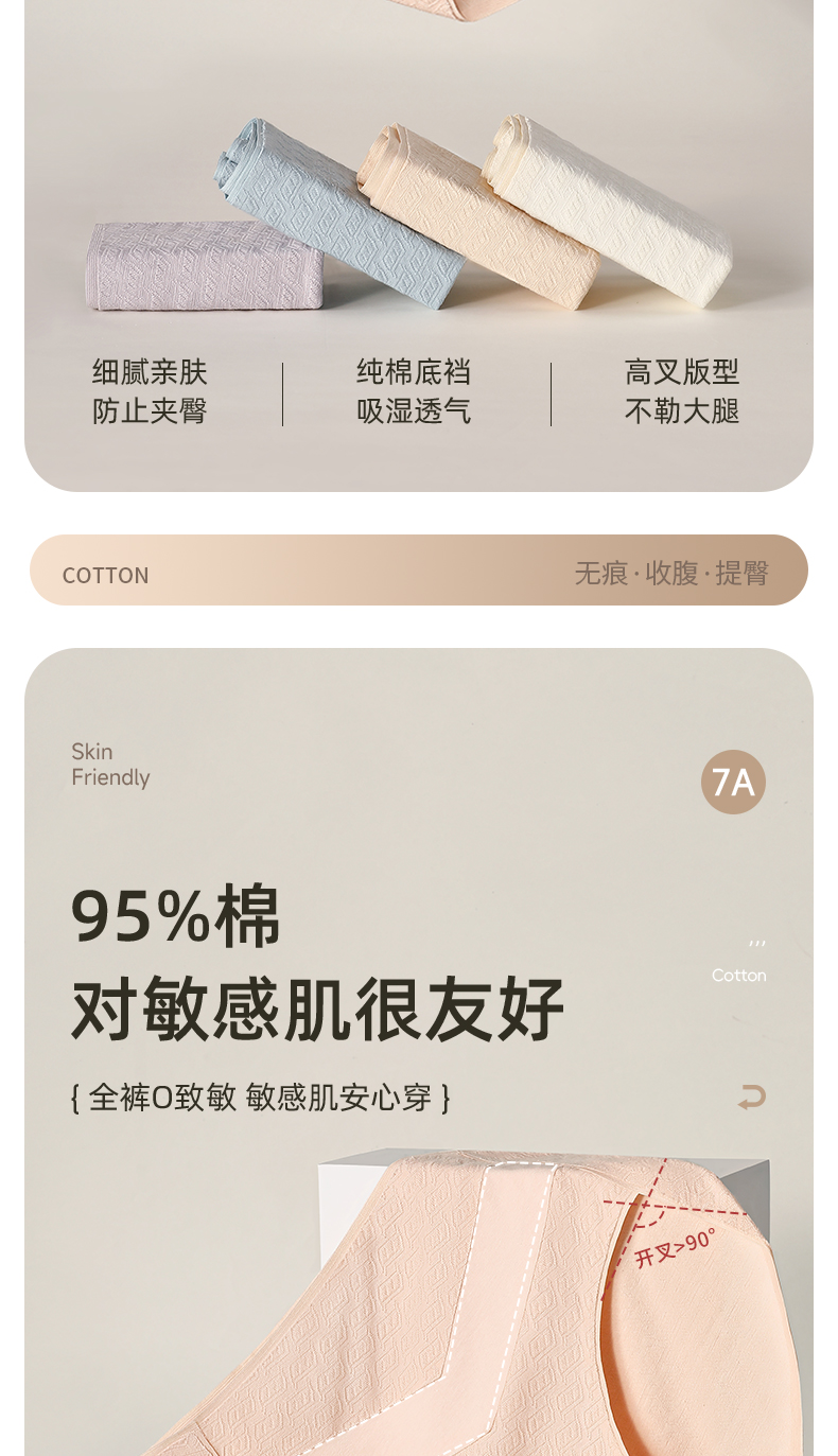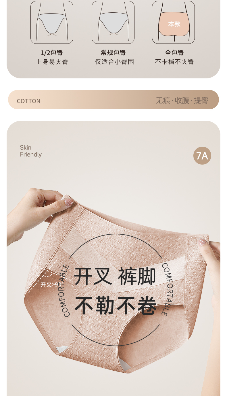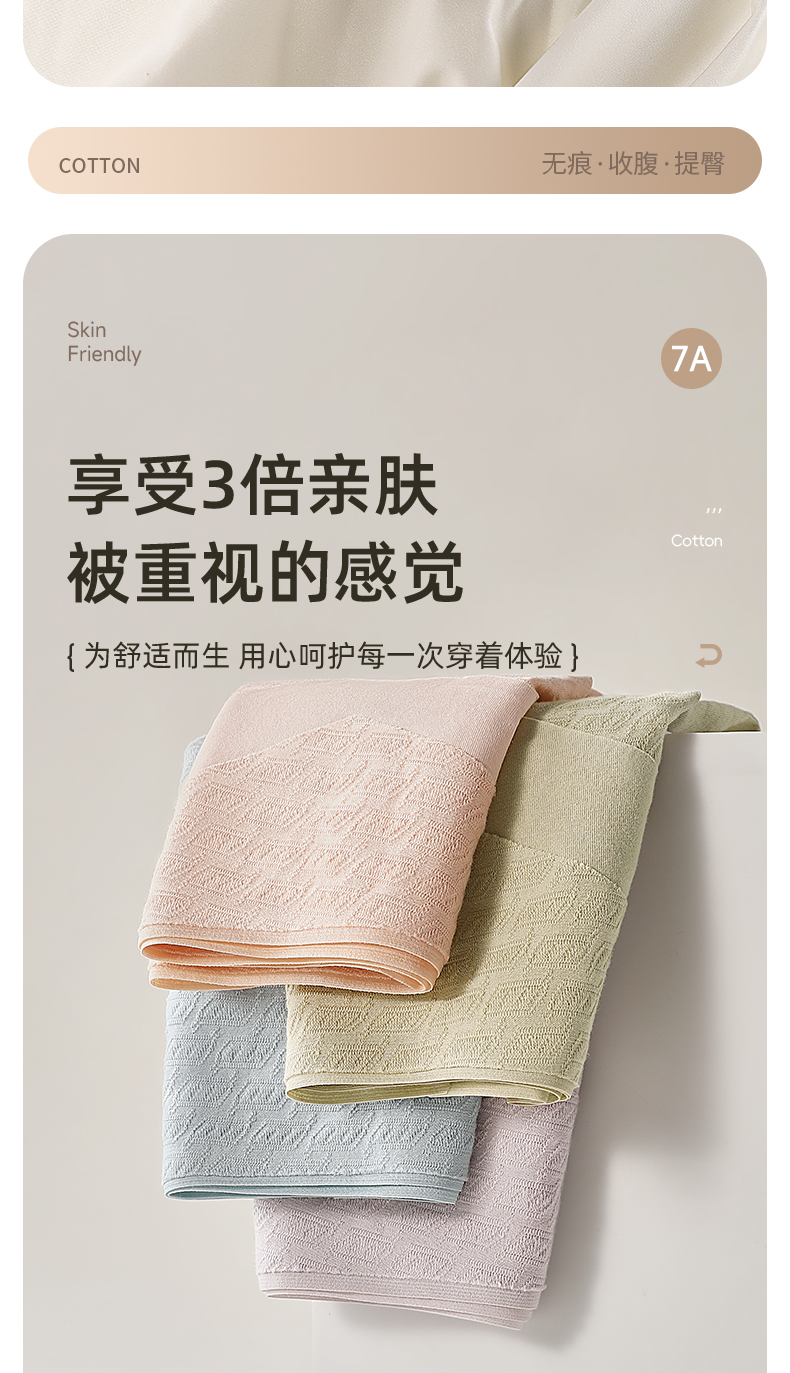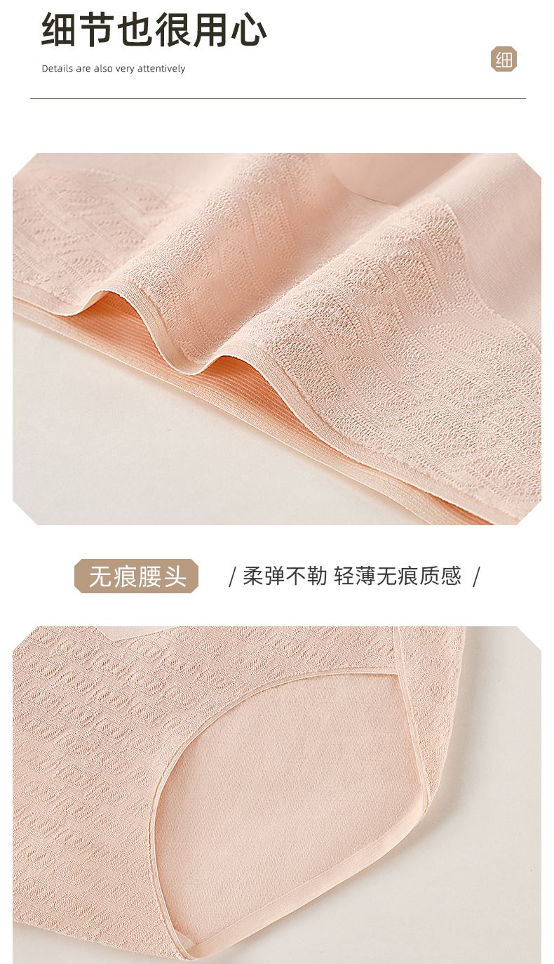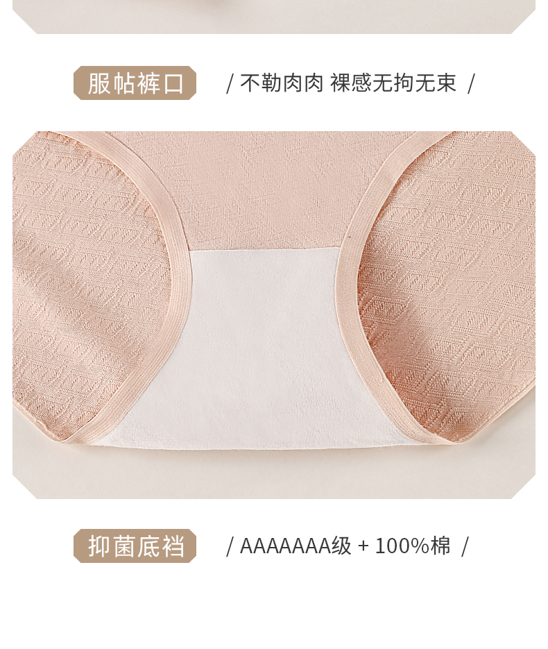 7A级抑菌提花纯棉裤3条装 V型高腰轻塑收腹 高弹提臀不勒不夹臀 柔软纯棉7A抑菌 美臀裤底裤内裤