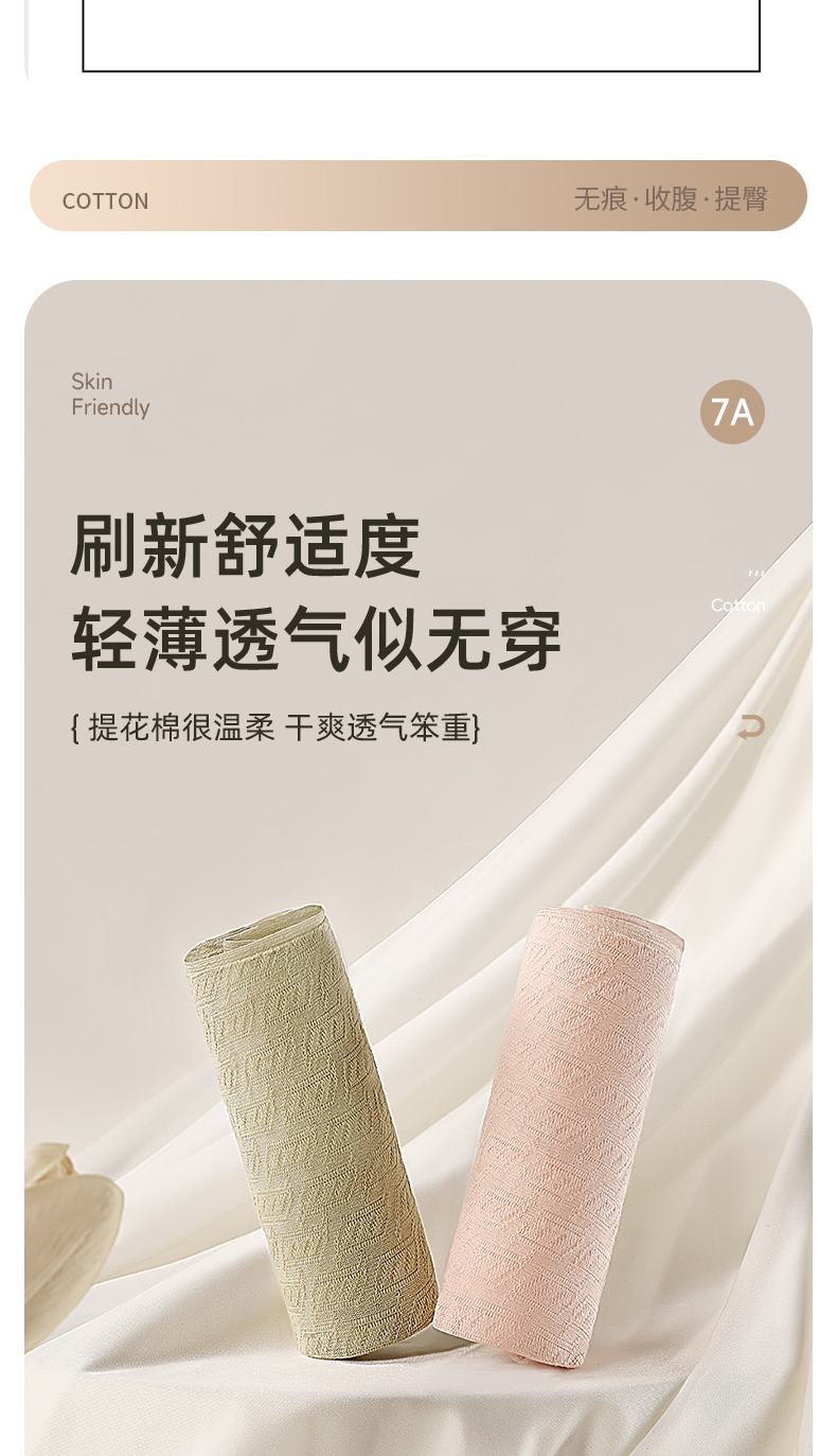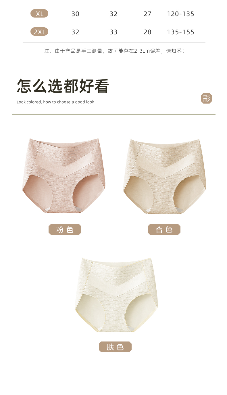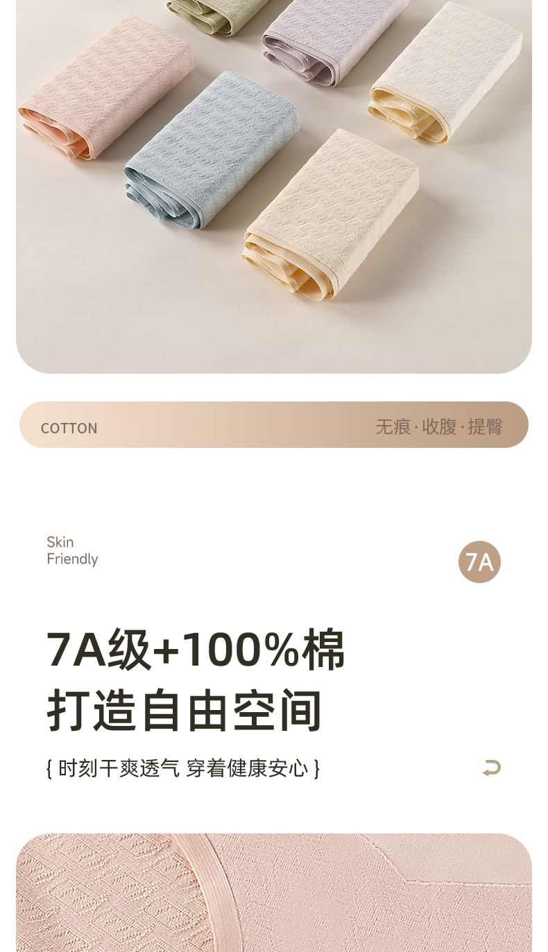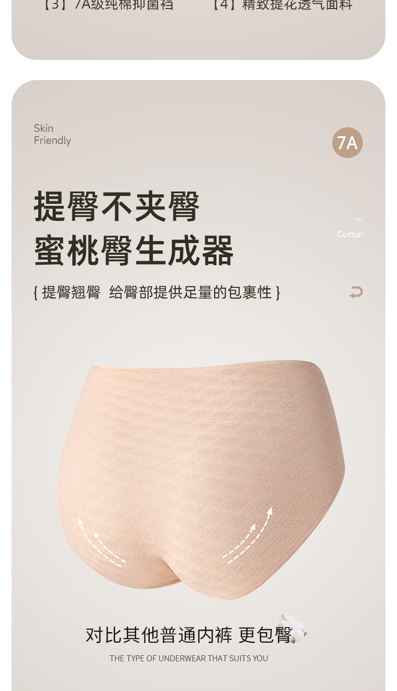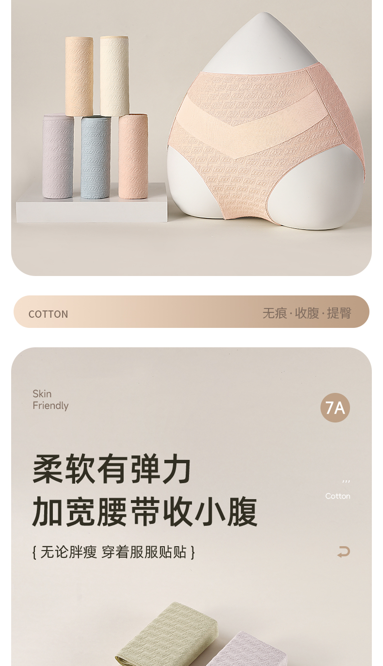 7A级抑菌提花纯棉裤3条装 V型高腰轻塑收腹 高弹提臀不勒不夹臀 柔软纯棉7A抑菌 美臀裤底裤内裤
