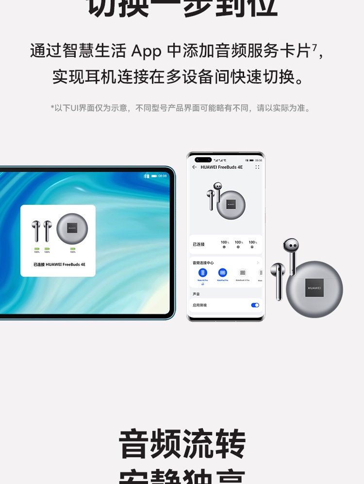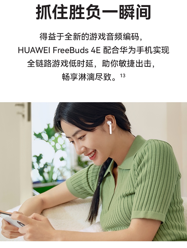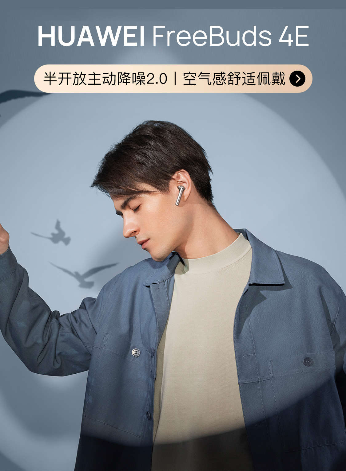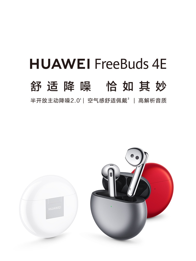 华为HUAWEI FreeBuds 4E 真无线蓝牙耳机 主动降噪半开放入耳式耳机 高解析音质有线充版