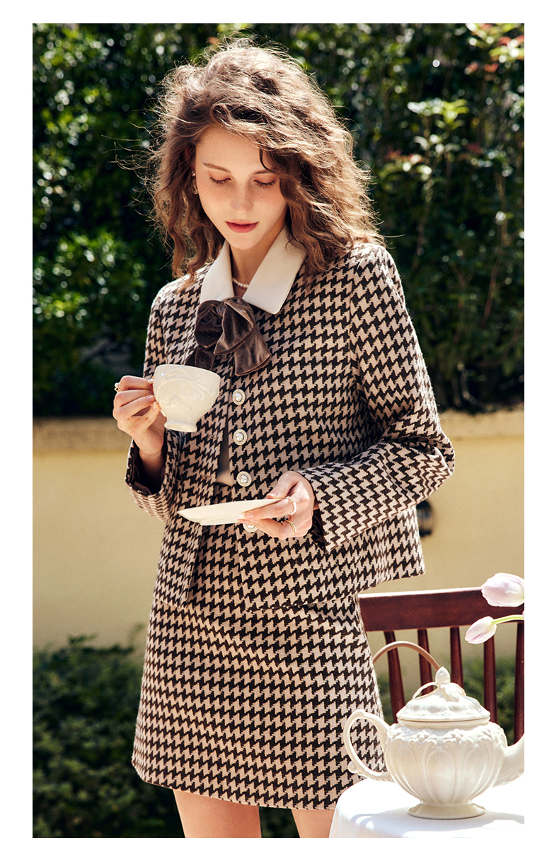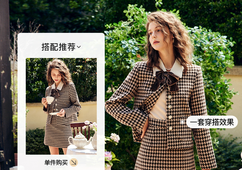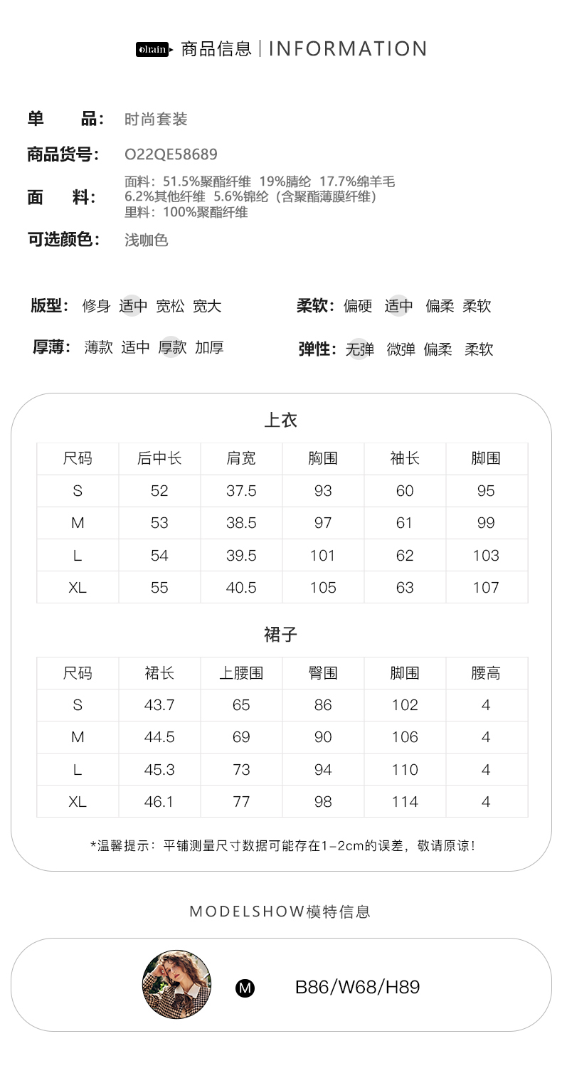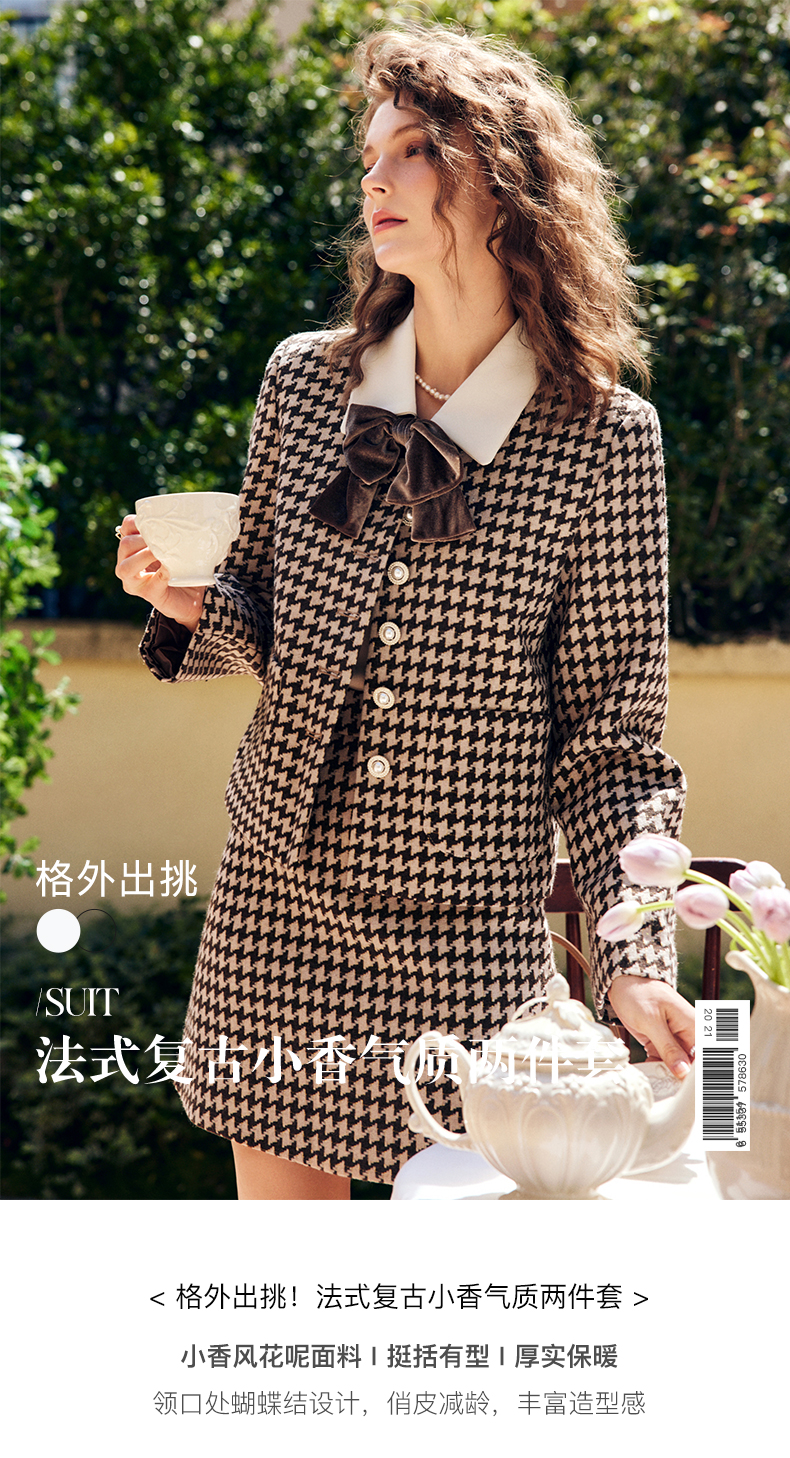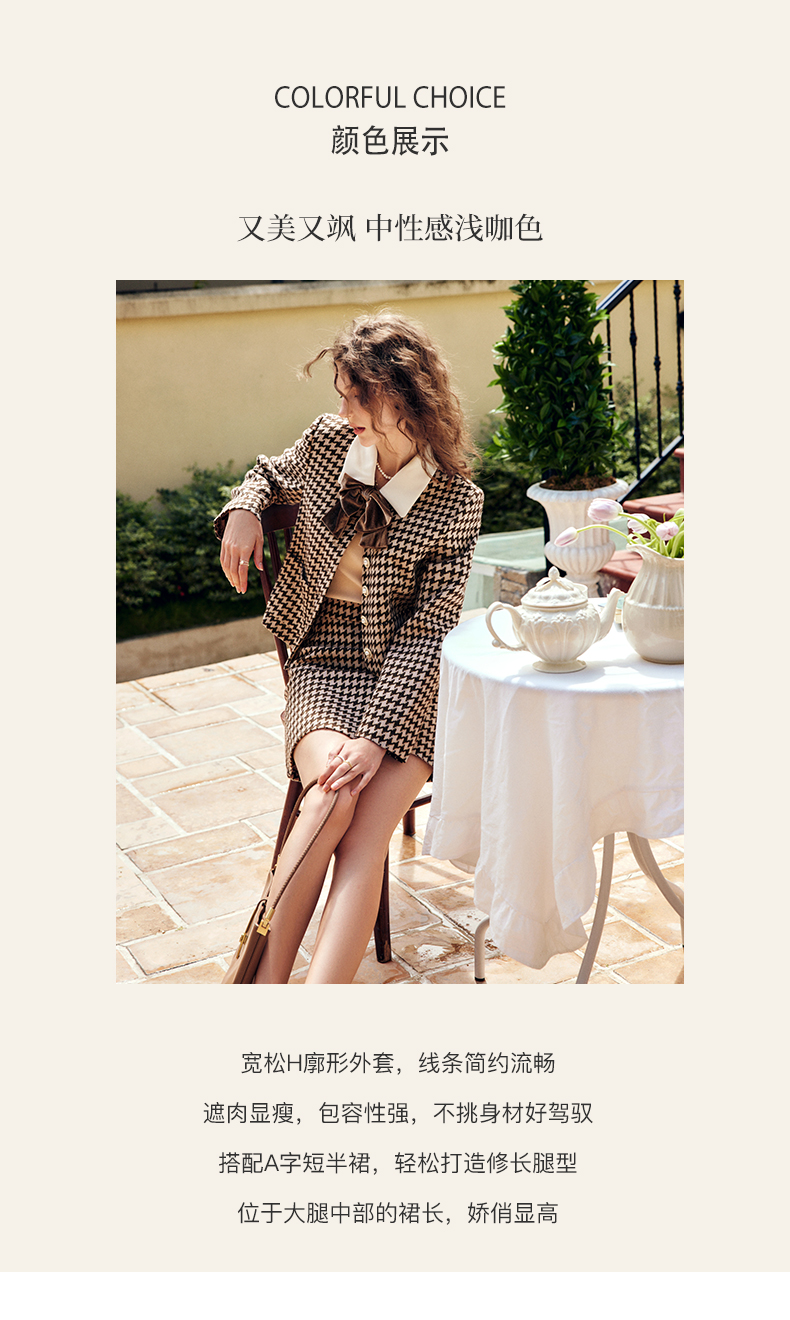 OLrain欧芮儿法式咖色时尚套装女早秋2022新款小香风设计感两件套
