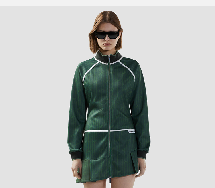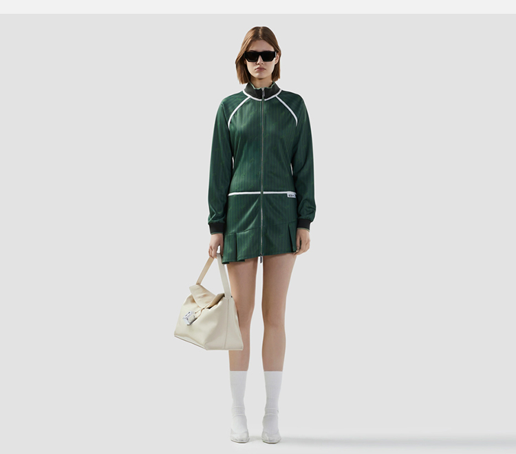 GCDS 女士字母徽标标签细条纹全拉链迷你连衣裙 绿色 B1CW1012JH4 85