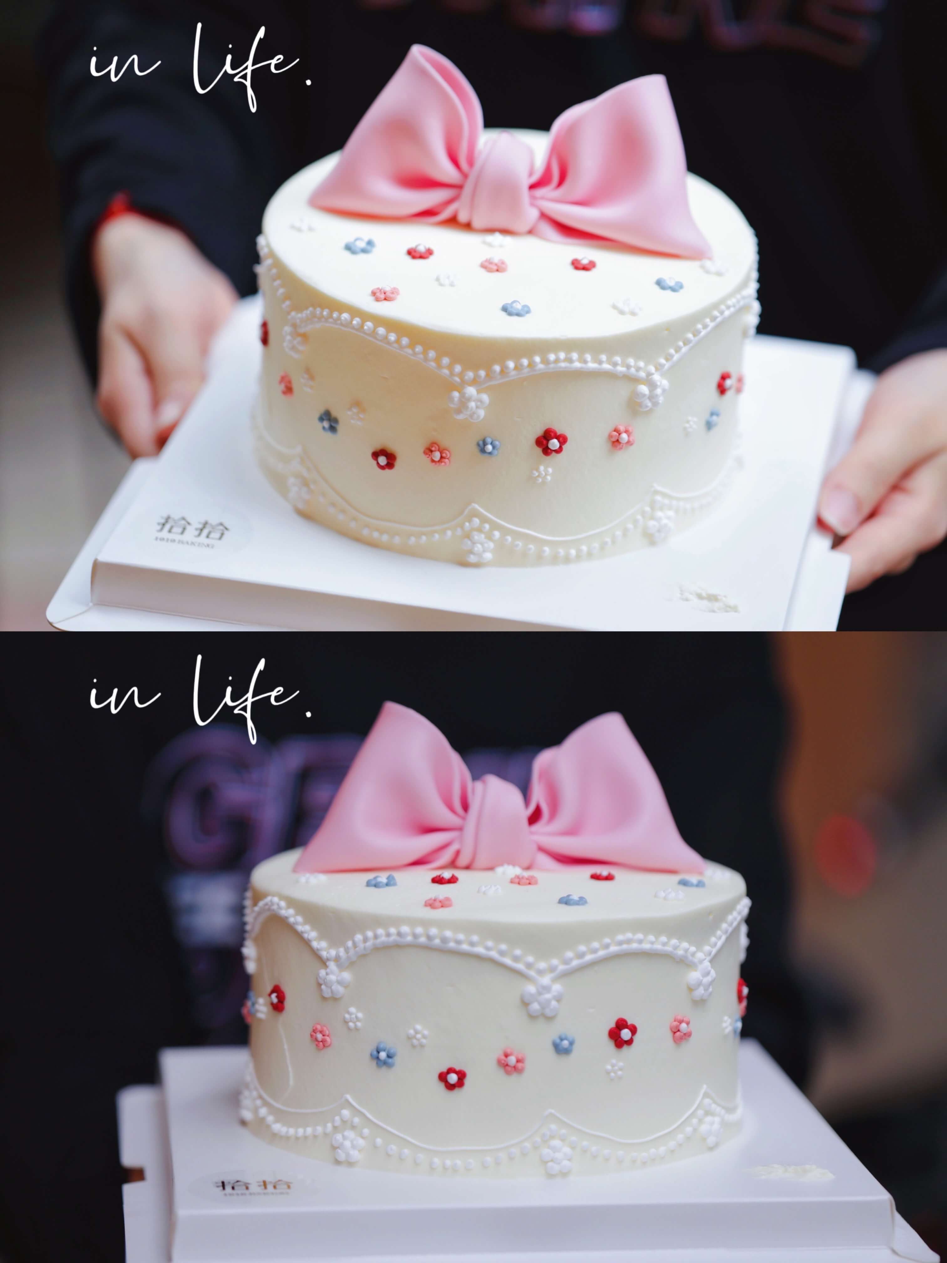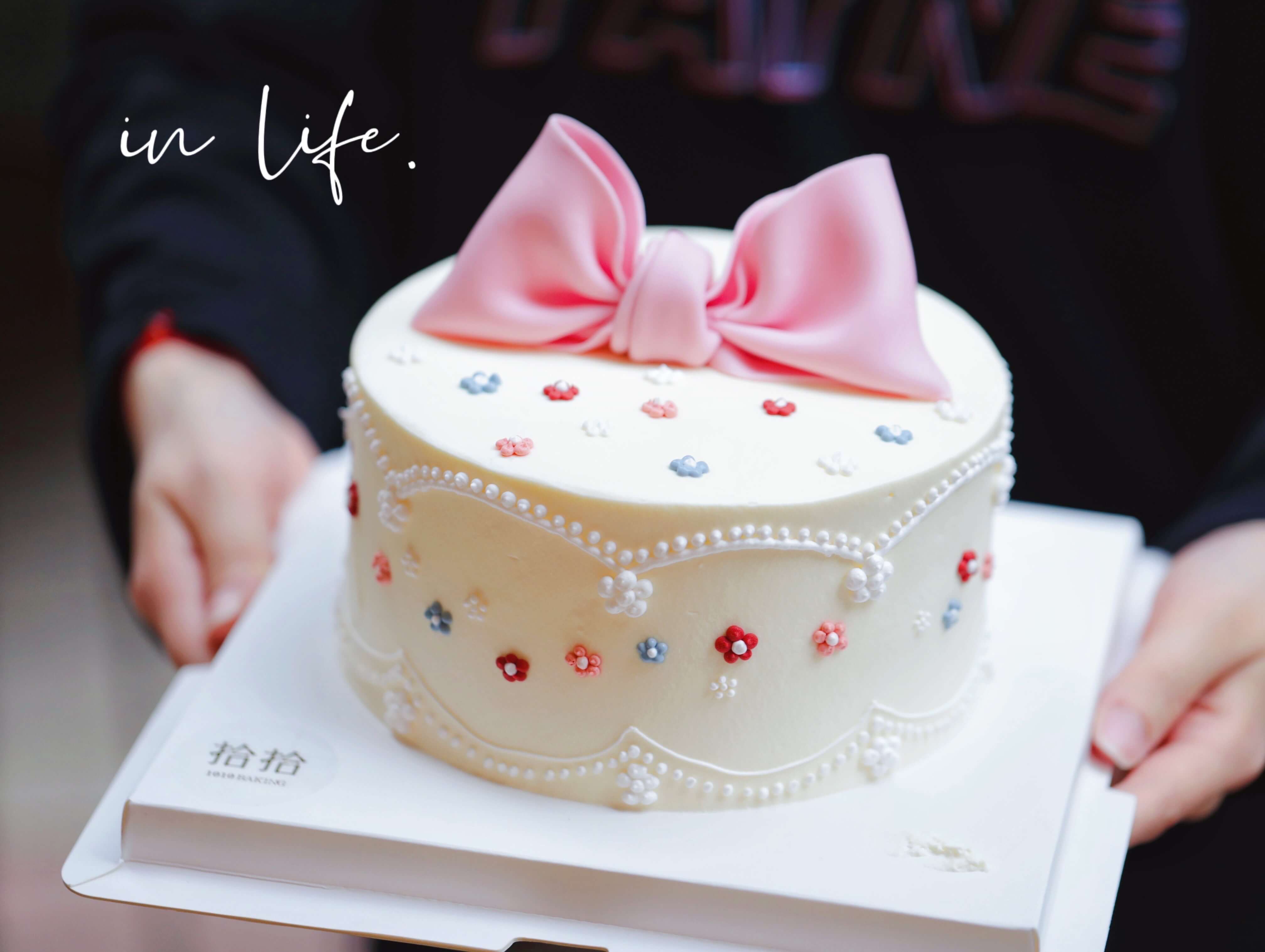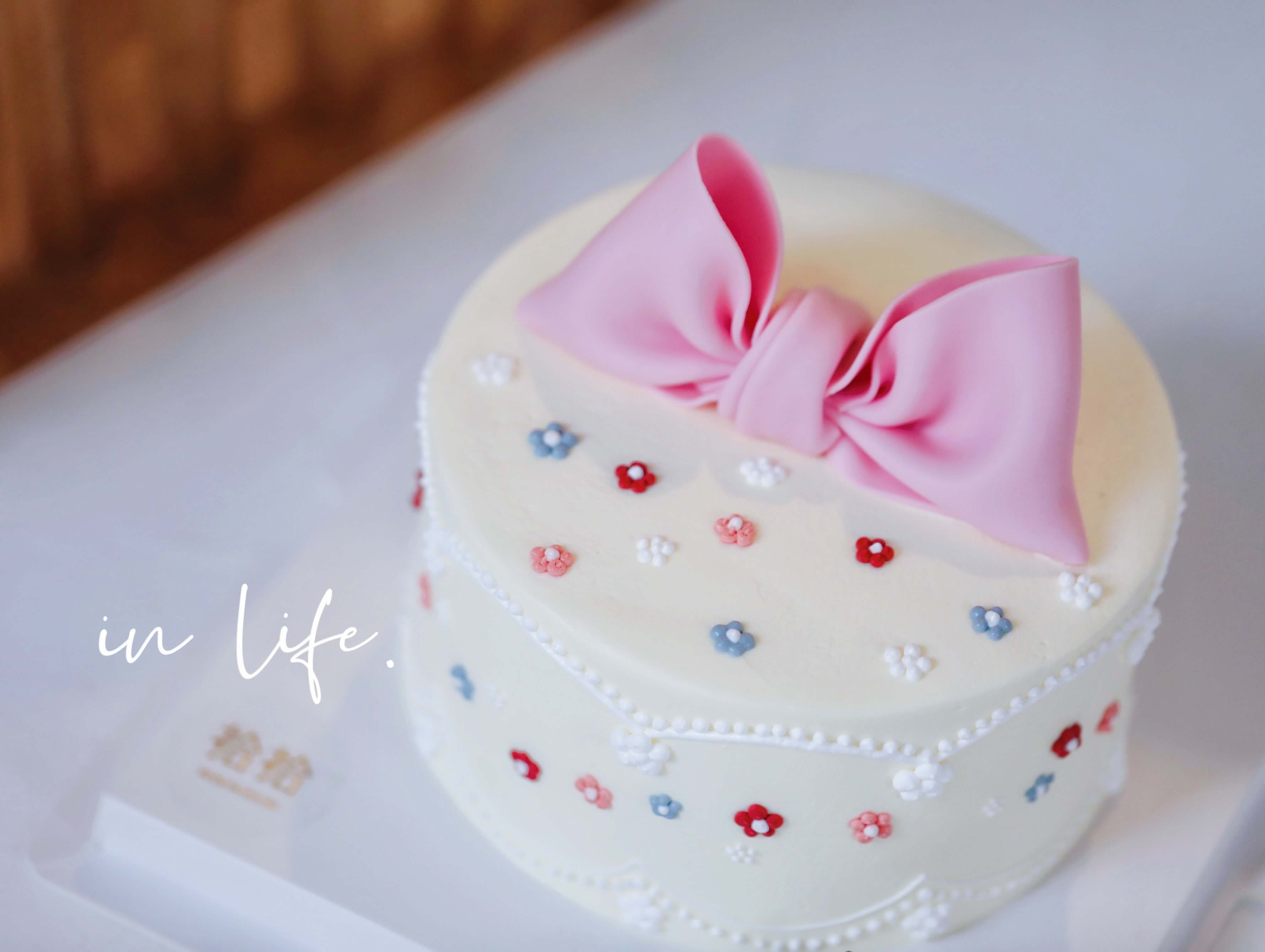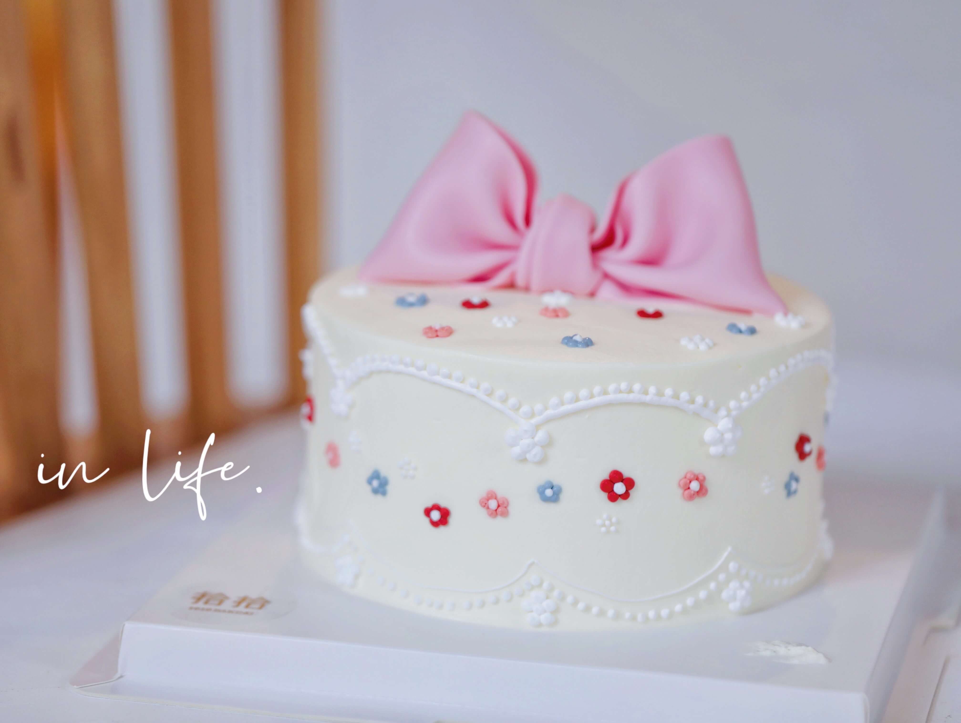 「蝴蝶结·粉色系·小碎花」翻糖巧克力·100%动物奶油(附图6寸·提前3天预订)