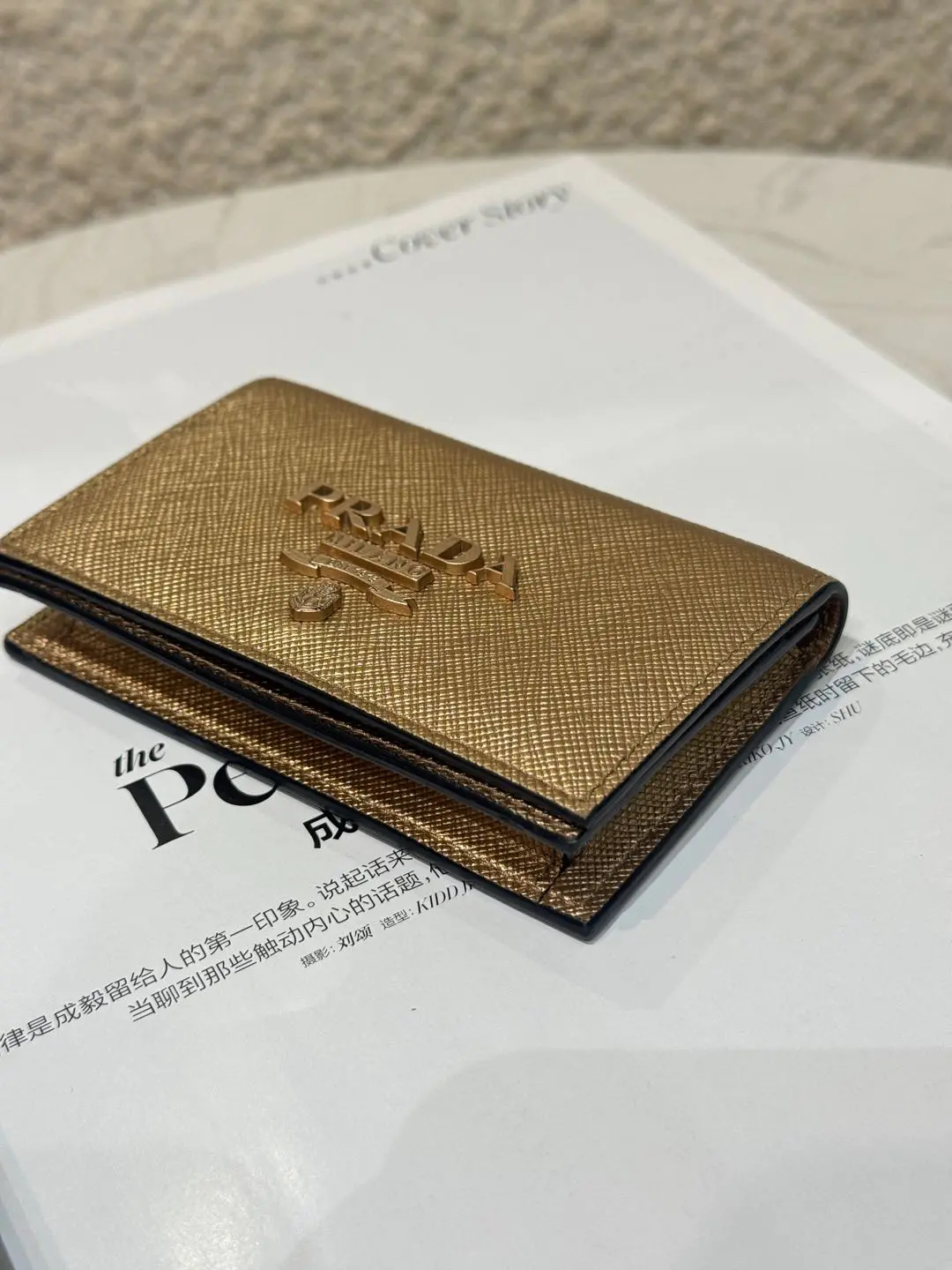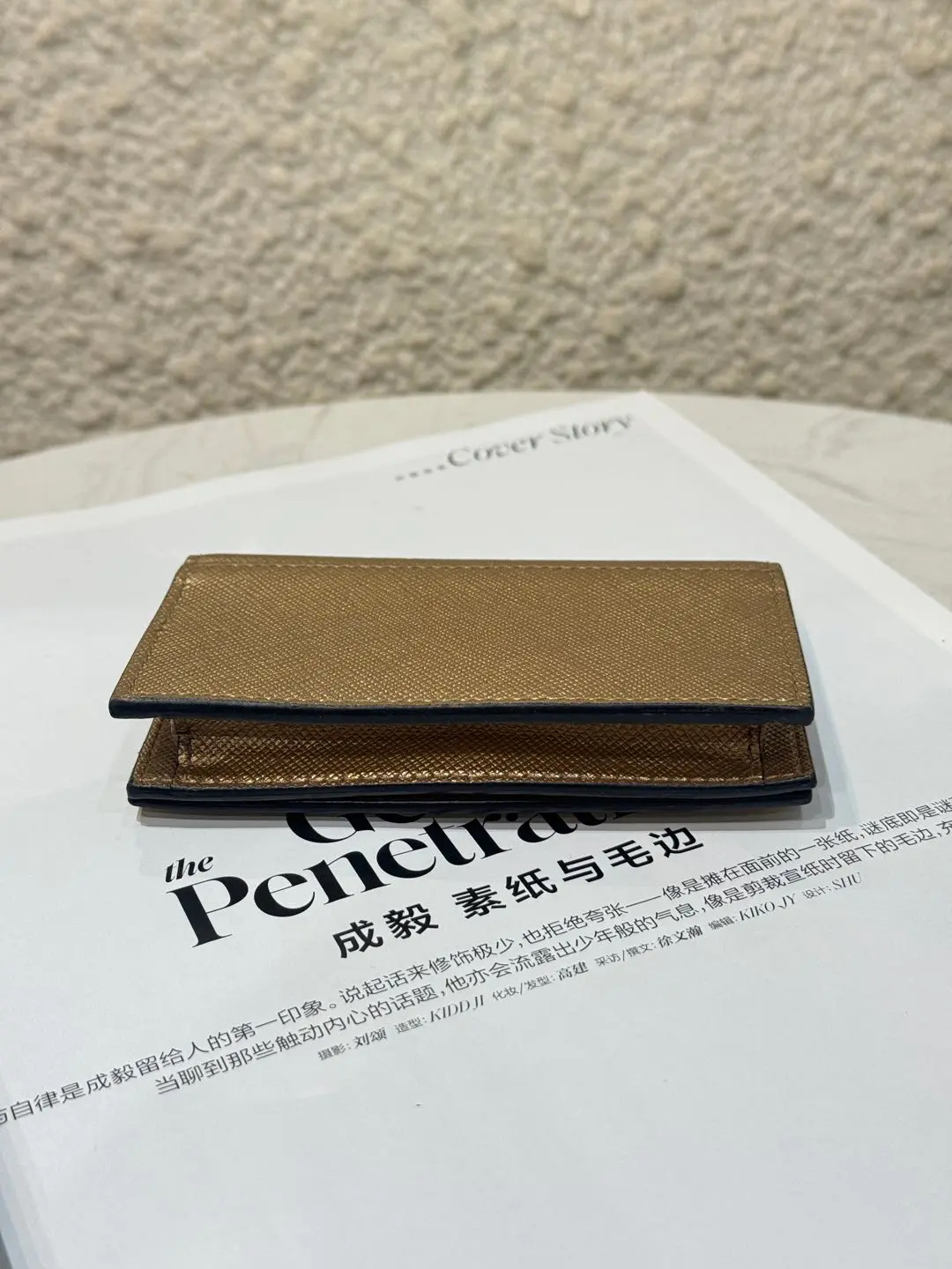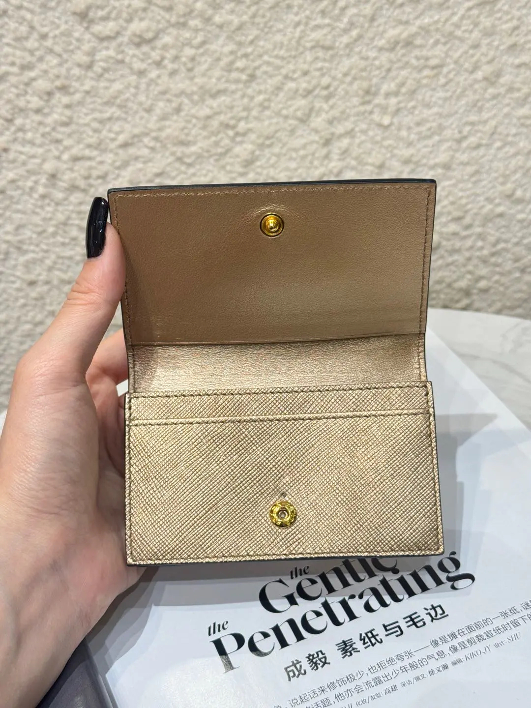 【商品详情】正品二手 Prada 香槟金 短款 十字纹牛皮 卡包💼97新 11*7。贵气精致