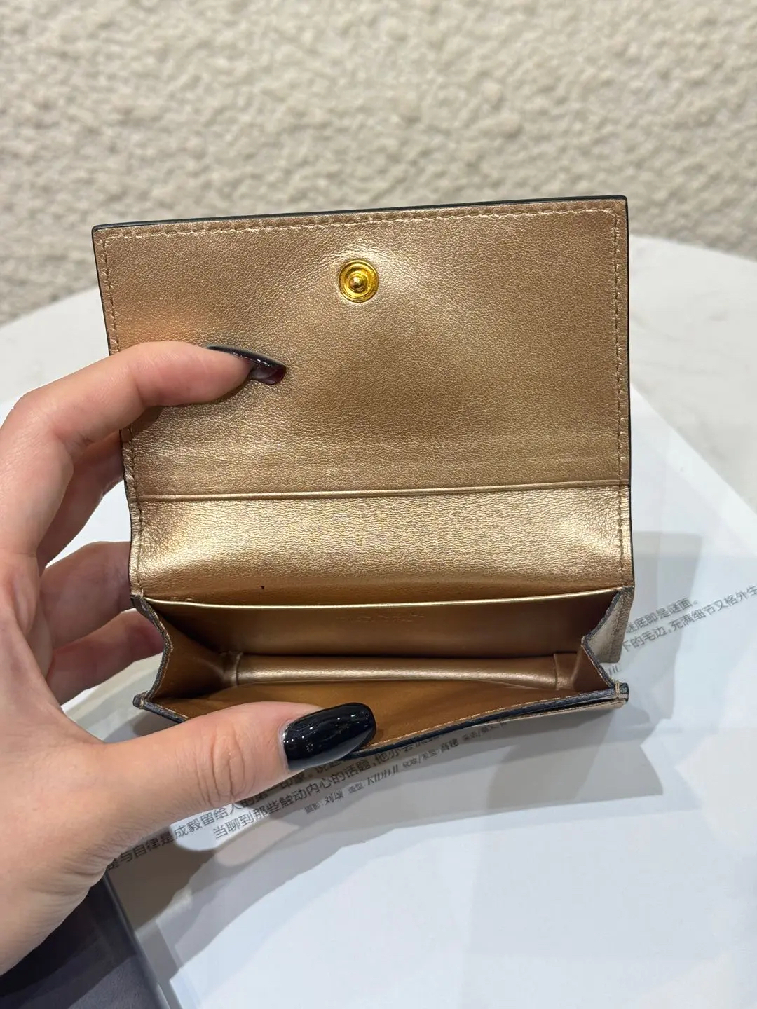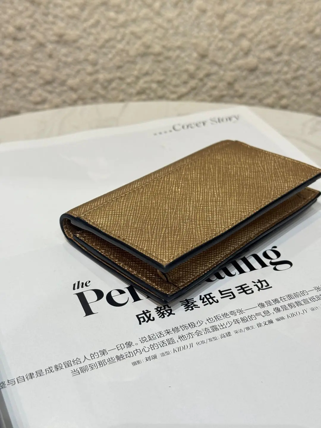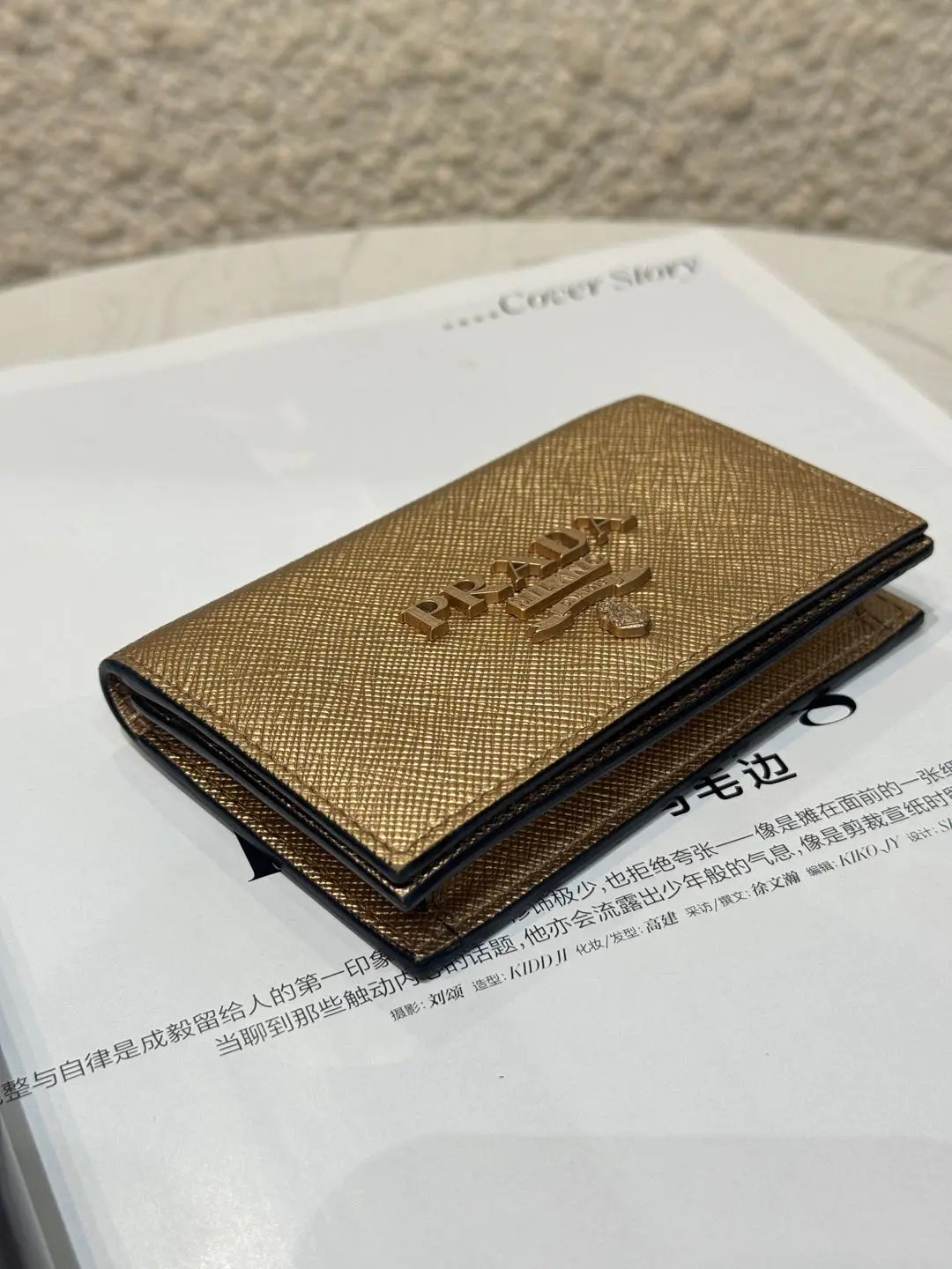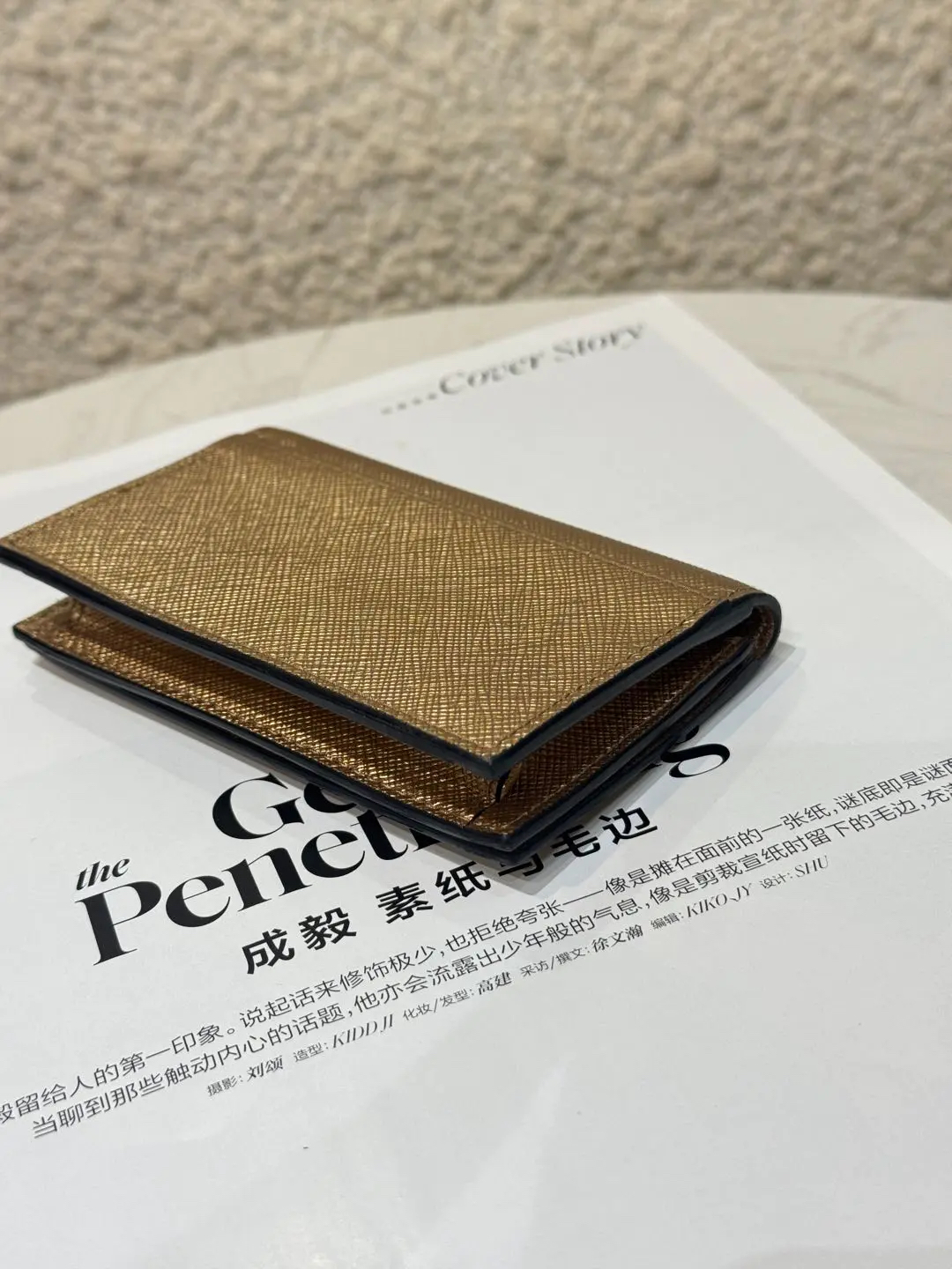 【商品详情】正品二手 Prada 香槟金 短款 十字纹牛皮 卡包💼97新 11*7。贵气精致