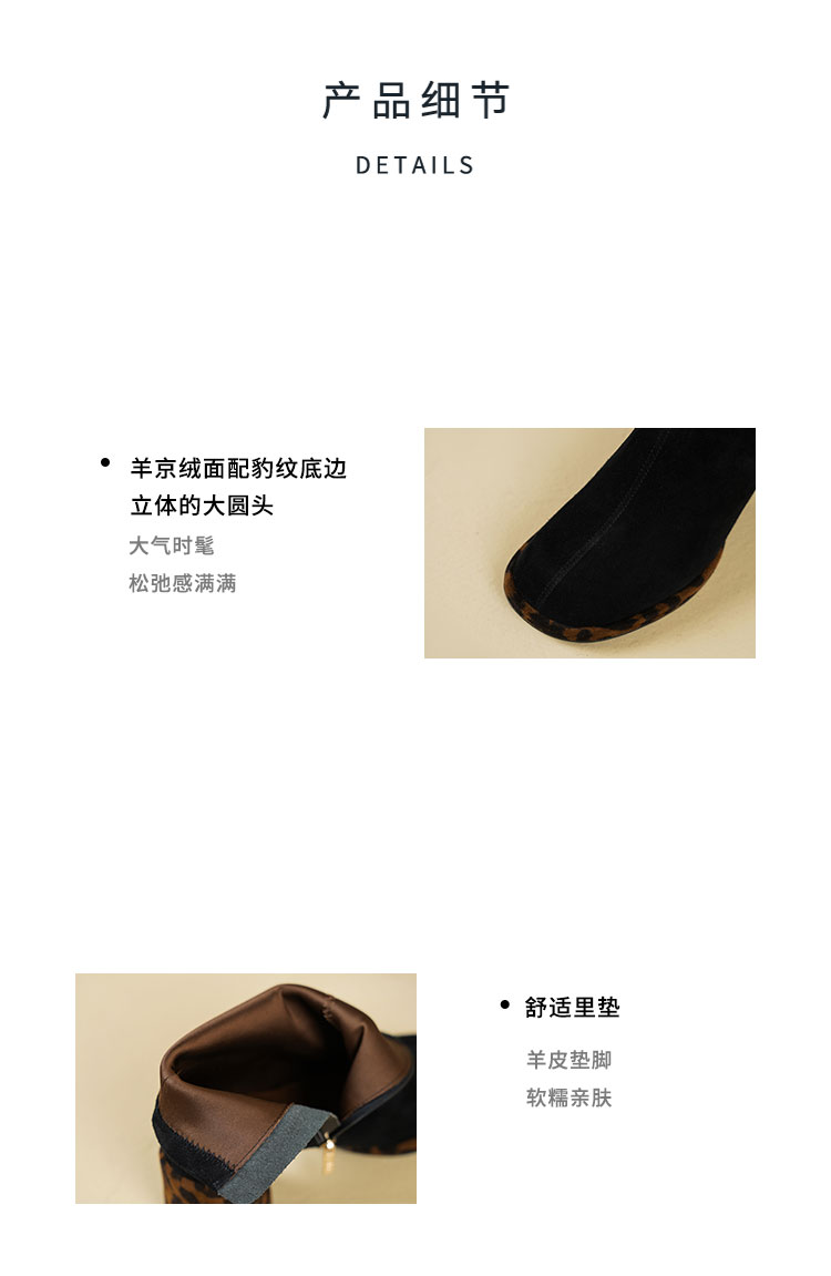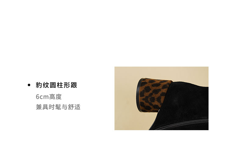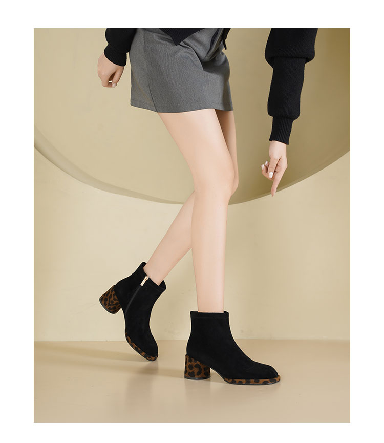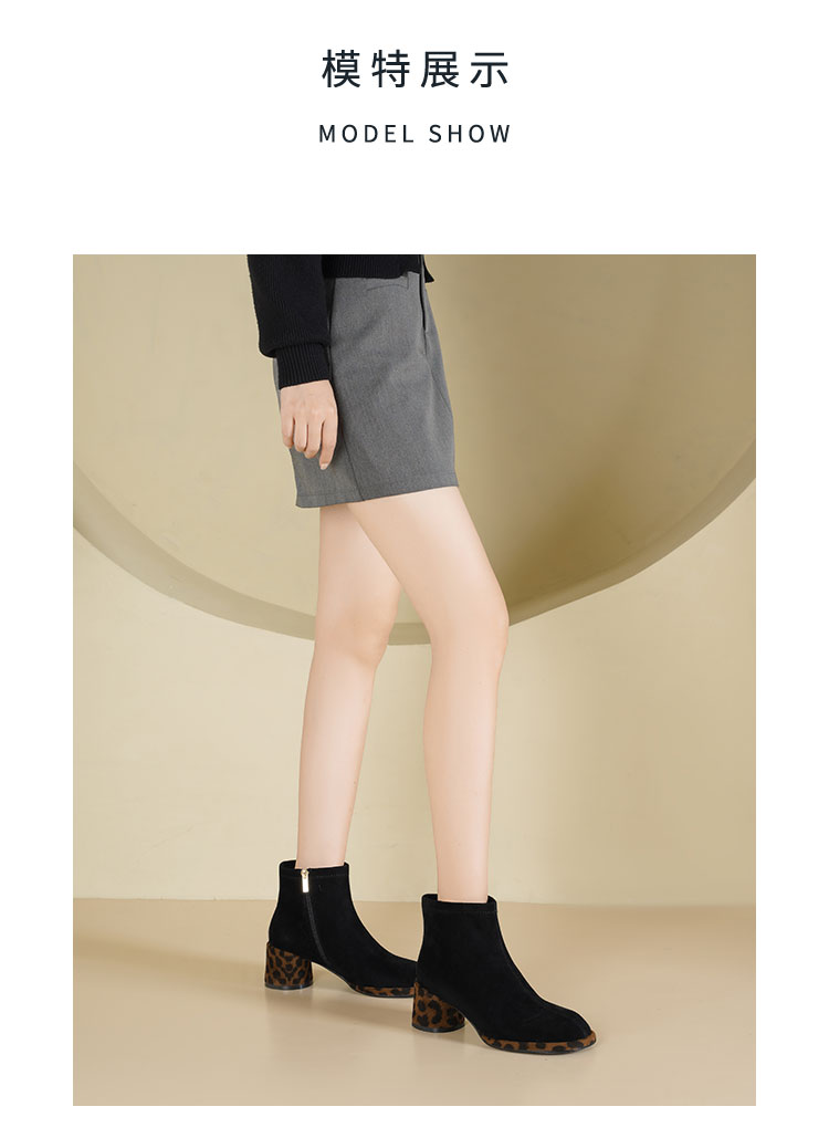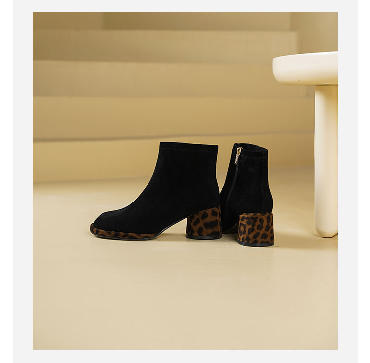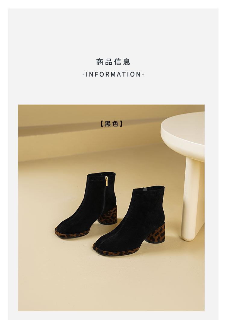 Westory2025年冬季羊京方头豹纹中粗跟简约百搭短靴S25DS85991