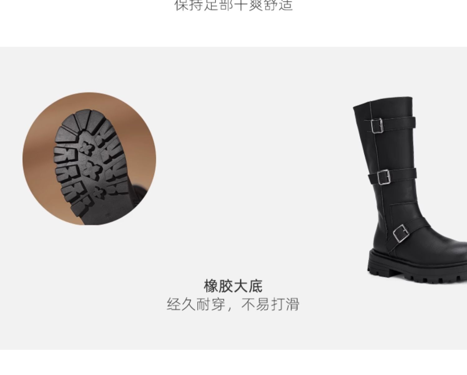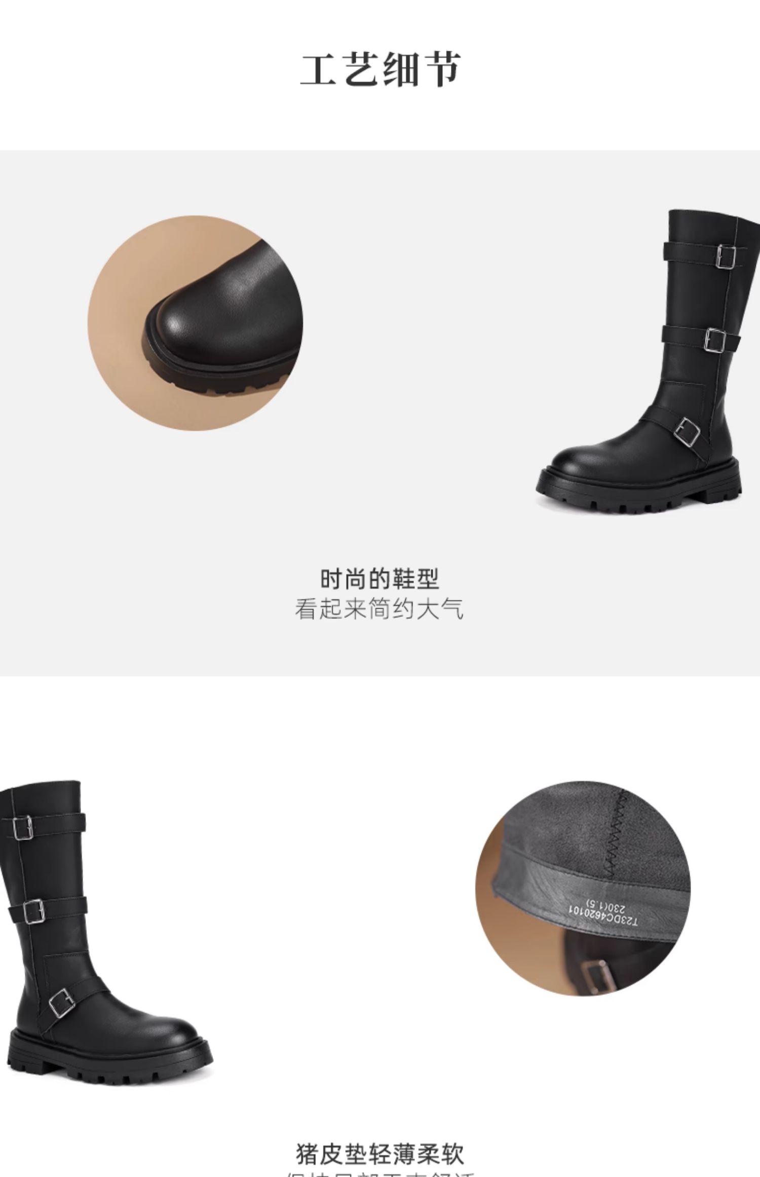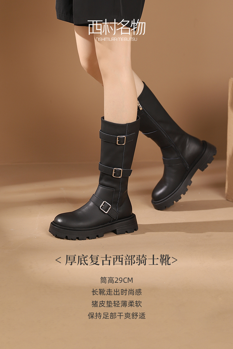 西村名物2023秋冬新款厚底复古西部骑士靴金属扣厚底时尚靴T23DC46201