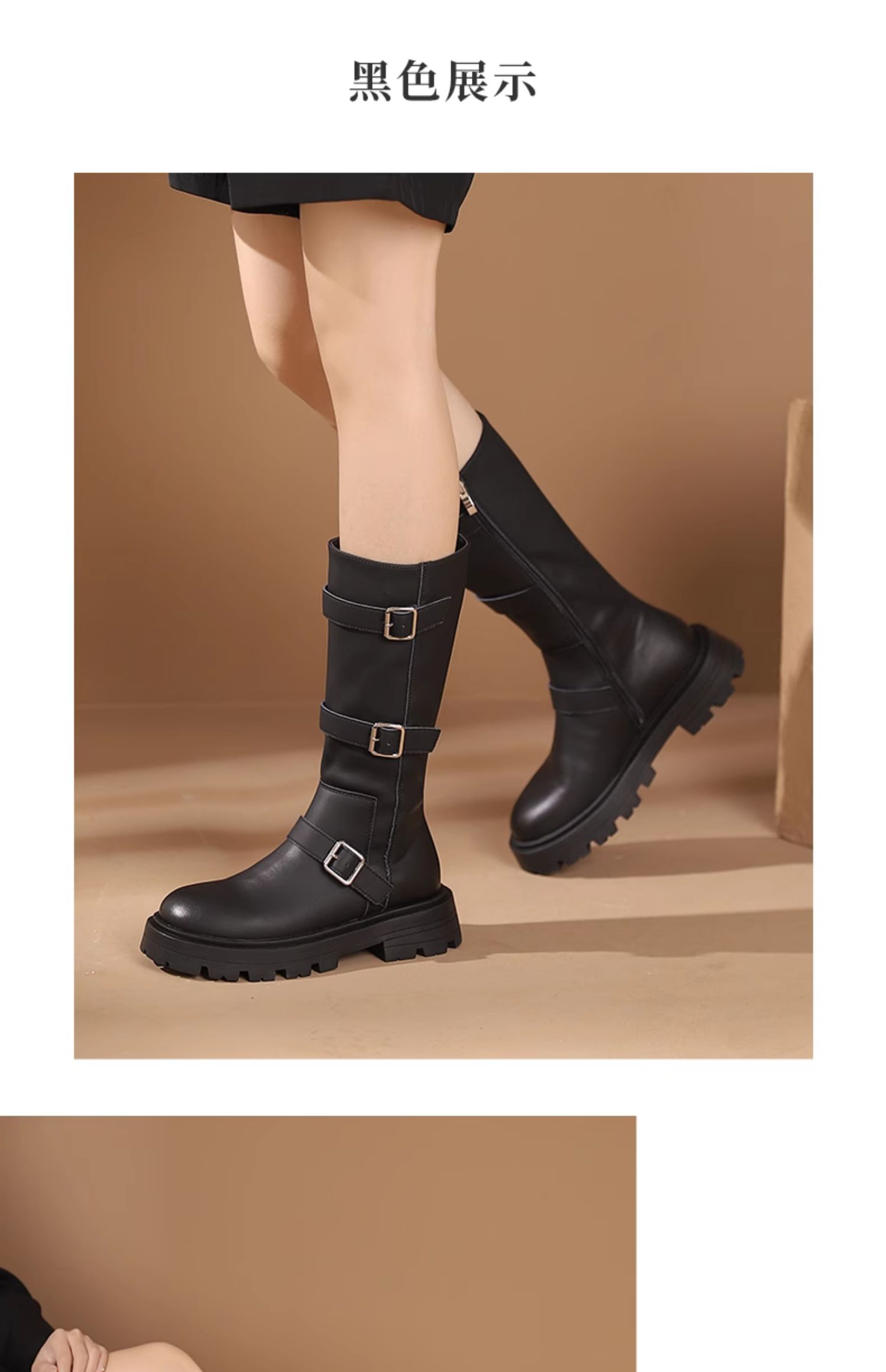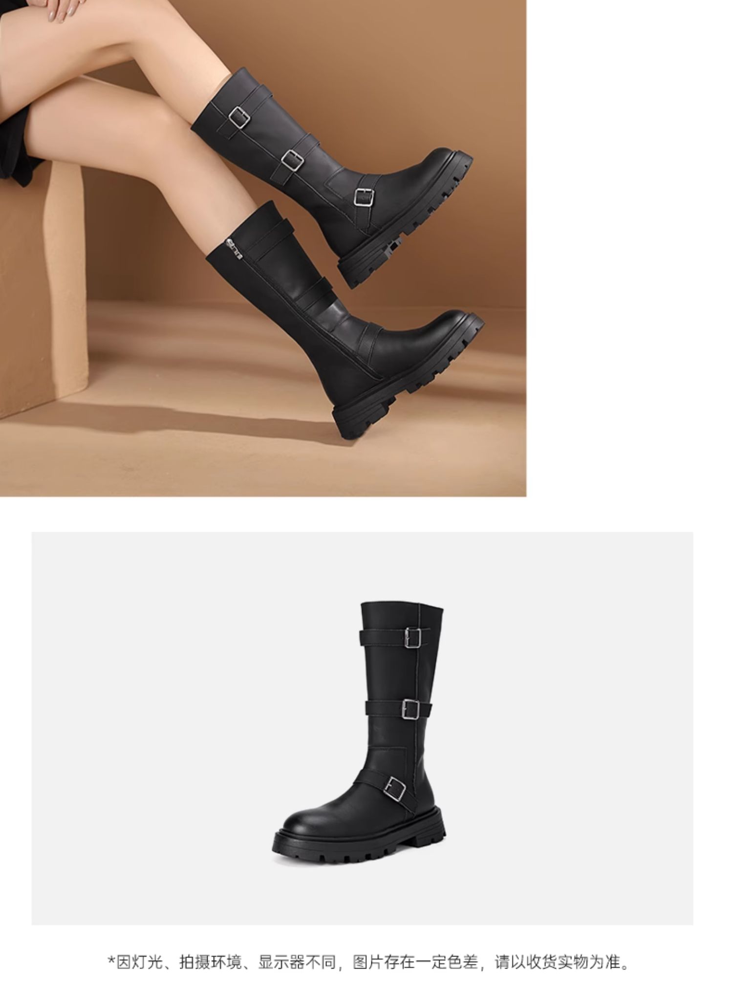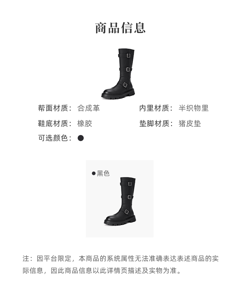 西村名物2023秋冬新款厚底复古西部骑士靴金属扣厚底时尚靴T23DC46201
