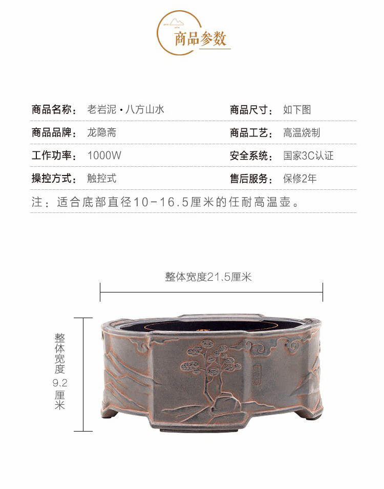 厂家直发/龙隐斋 八方山水电陶炉铁银壶专用安静无噪音家用不挑壶老岩泥