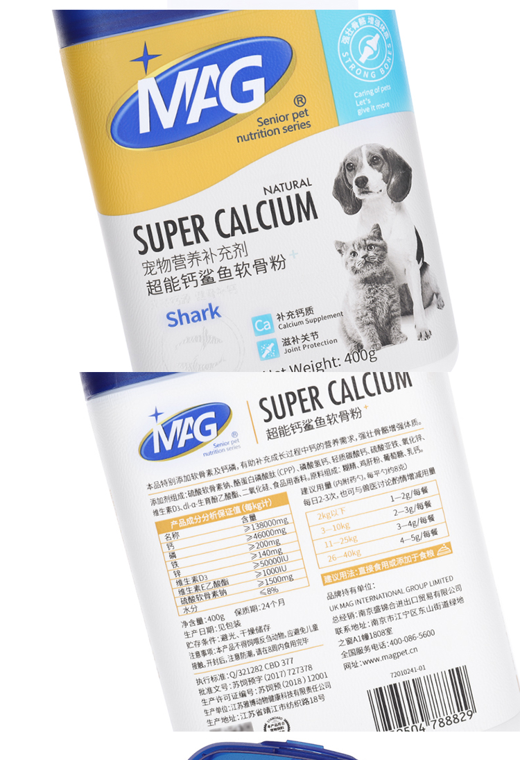 MAG超能钙鲨鱼软骨粉狗狗猫咪健骨补钙钙片呵护关节补钙