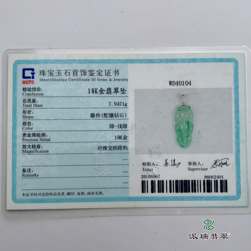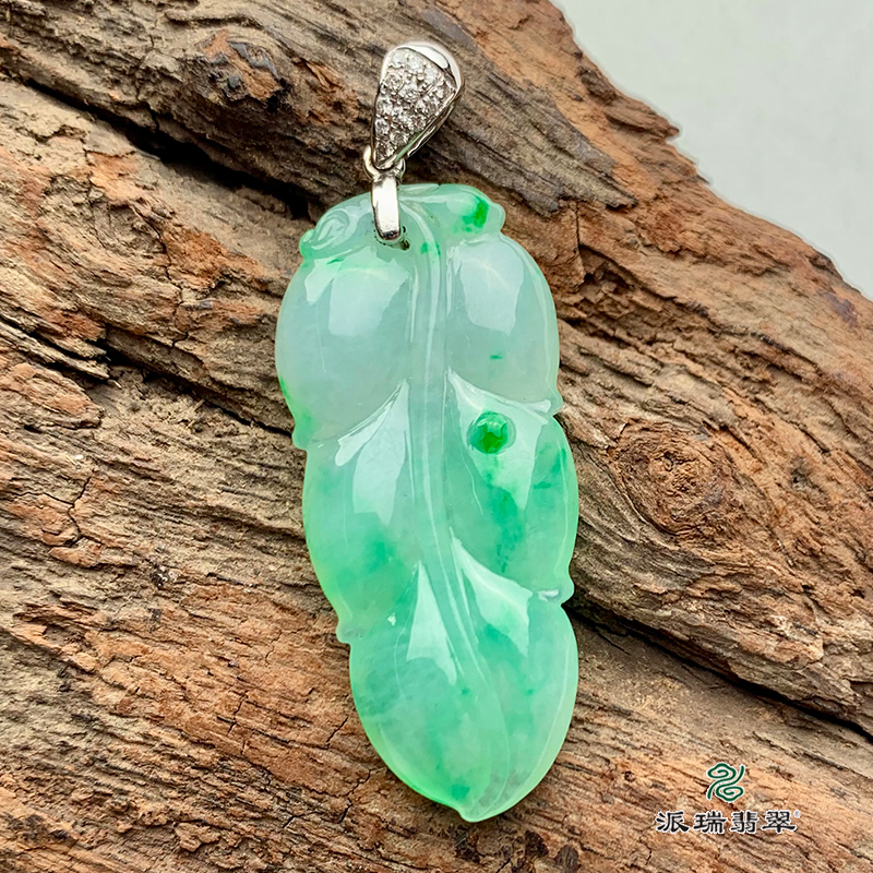 派瑞翡翠 18k金翡翠挂件 糯冰种 飘翠