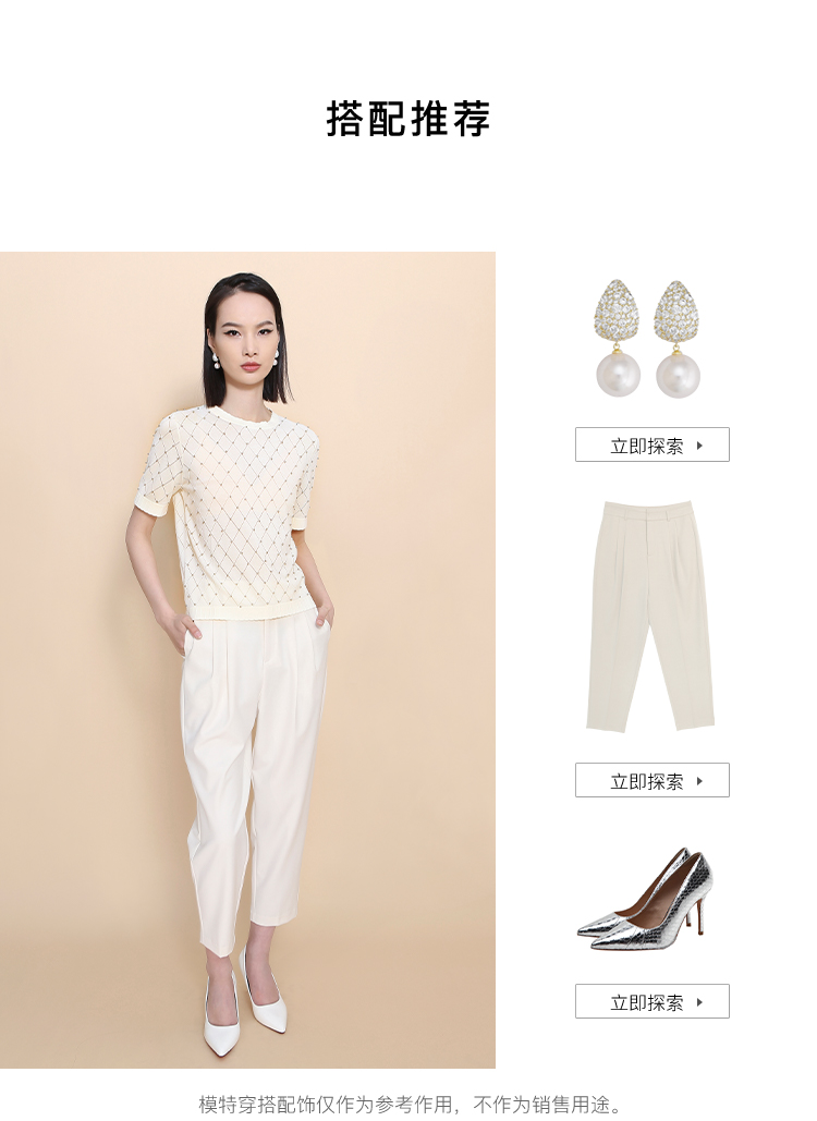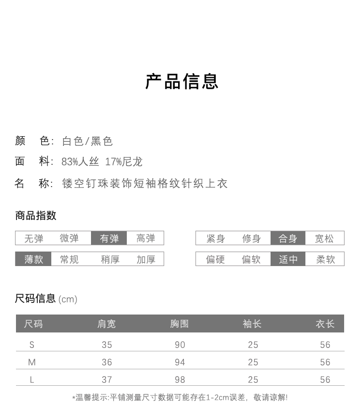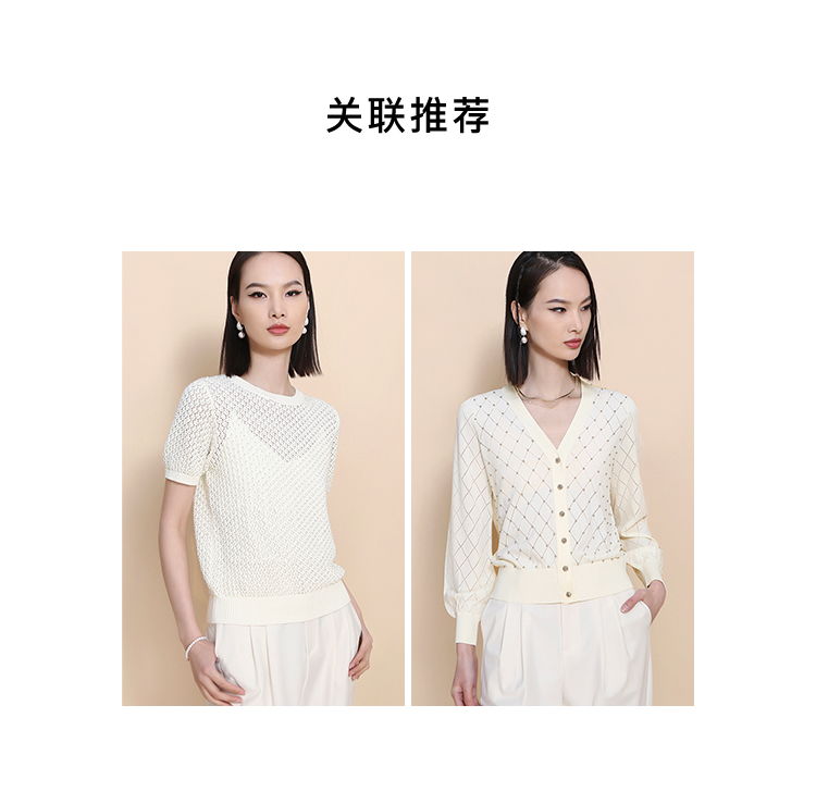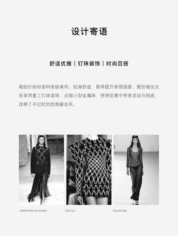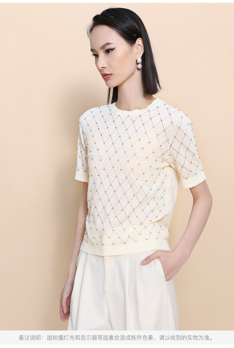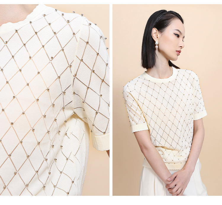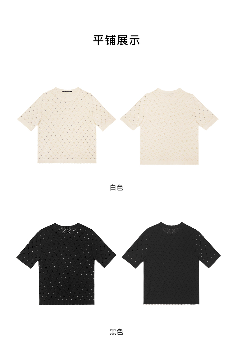 RSG郭培成衣品牌 夏季新款镂空钉珠装饰格纹针织薄款上衣