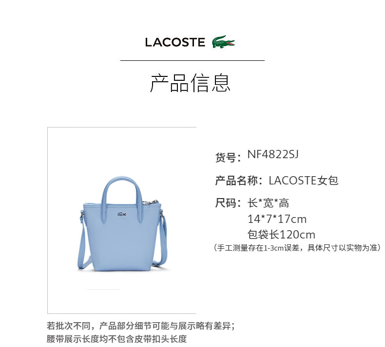 Lacoste法国鳄鱼女士新款纯色时尚简约百搭斜挎手提包NF4822SJ