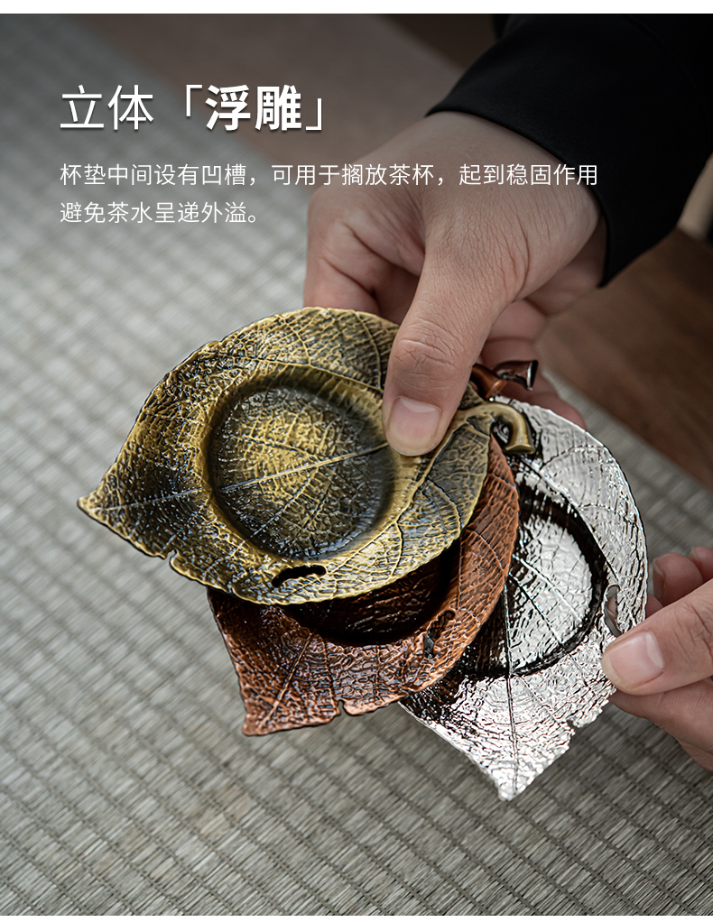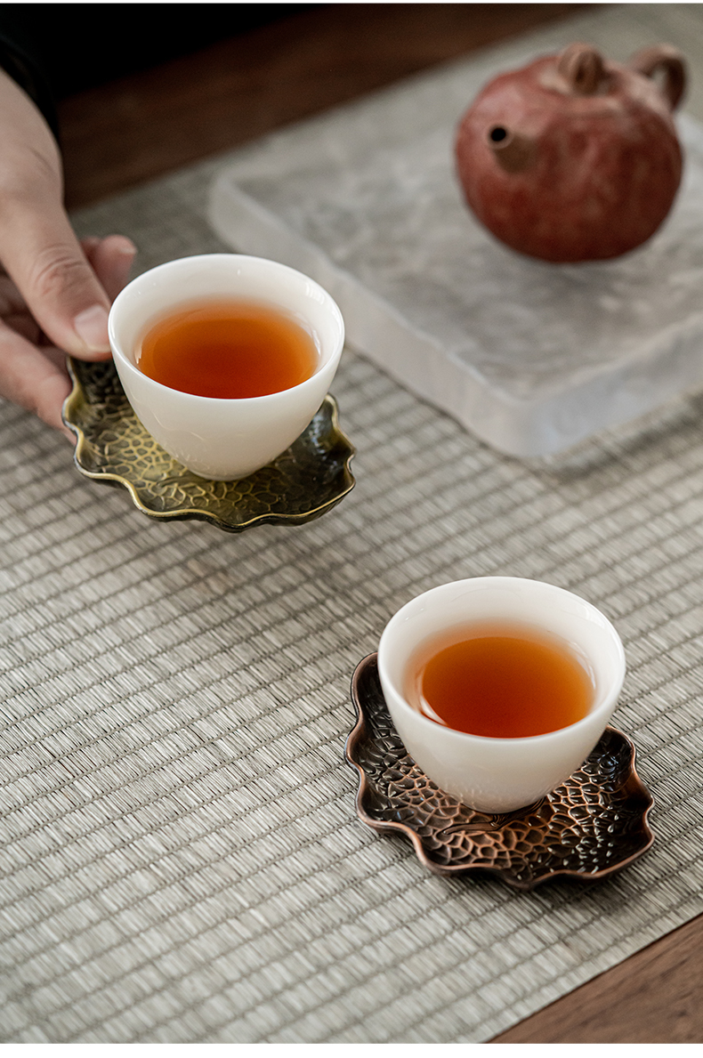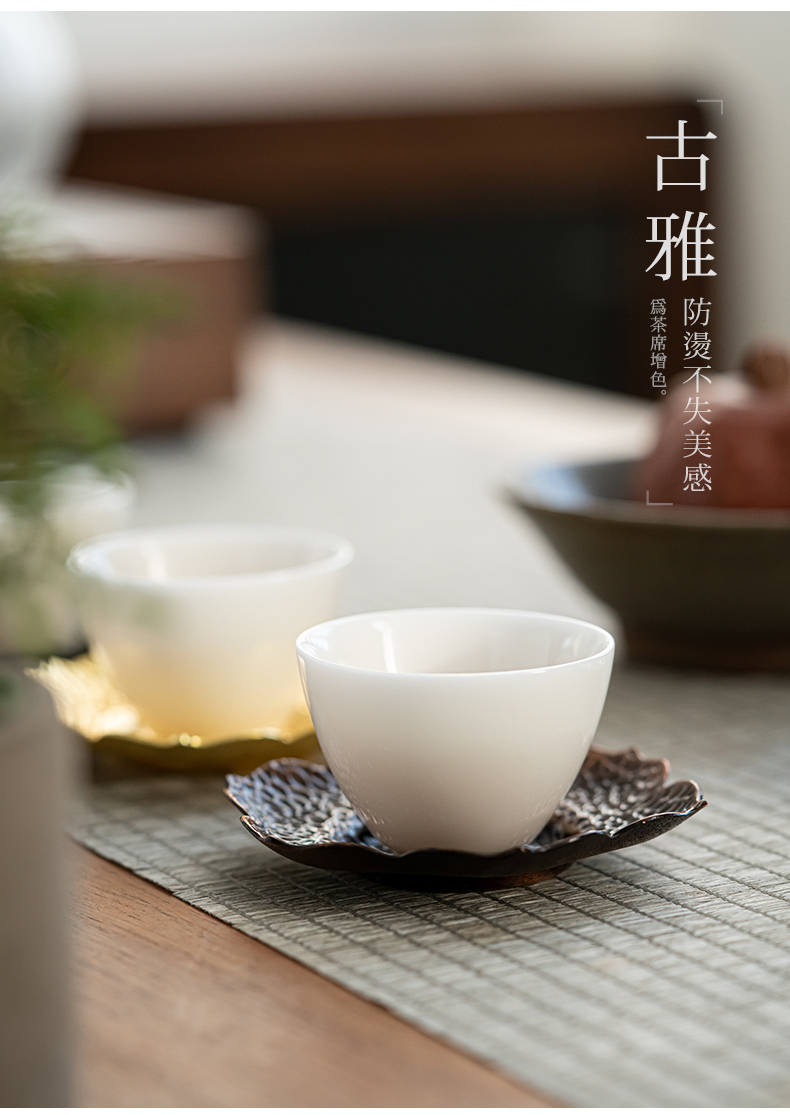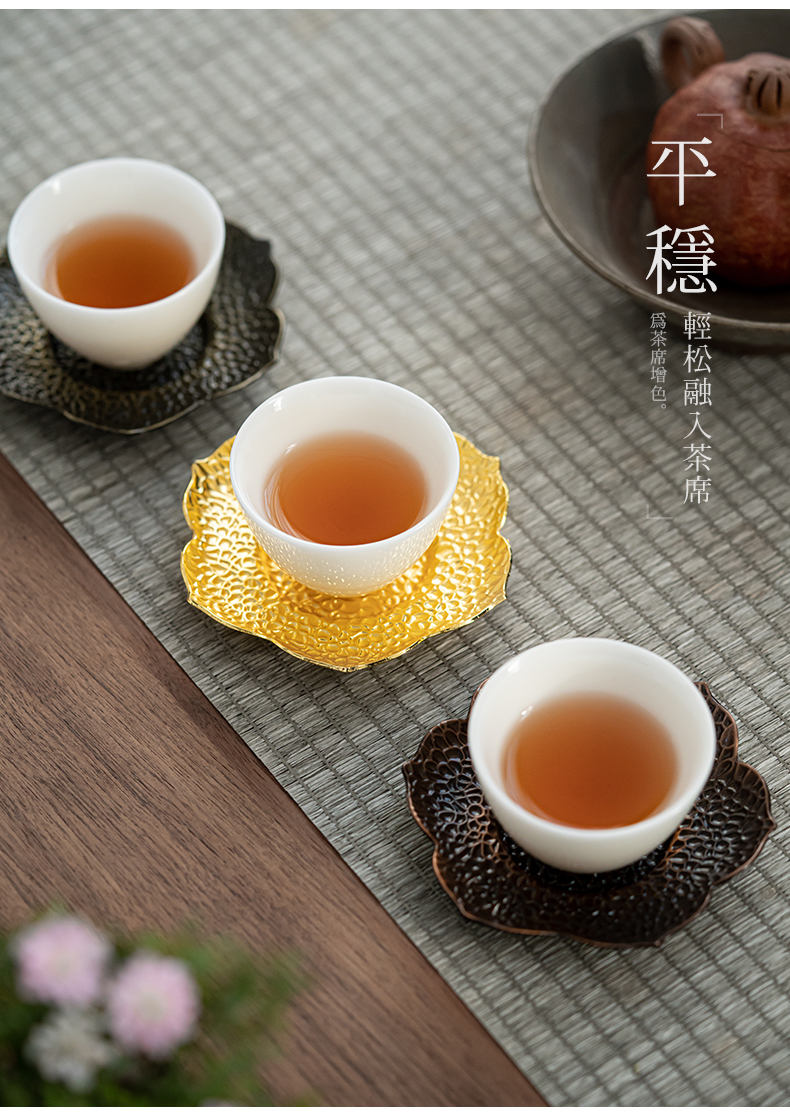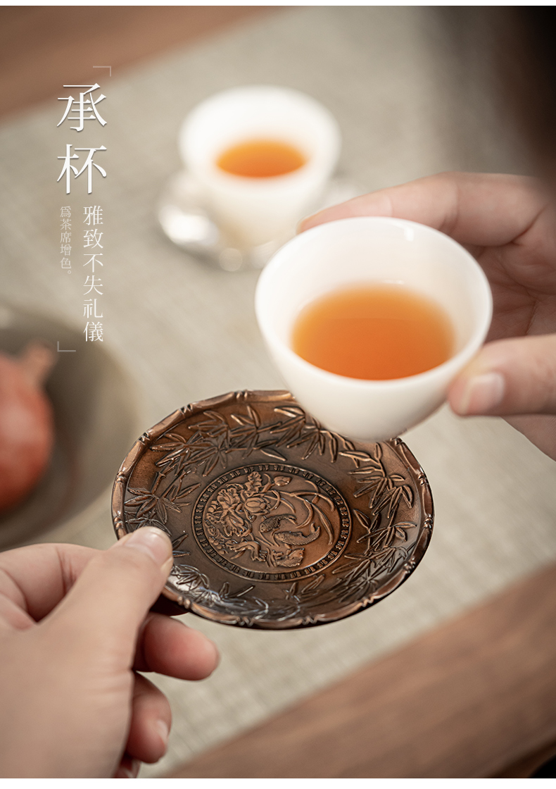 茶家吉橙杯托复古杯垫铁环茶日式杯托茶道配件隔热垫
