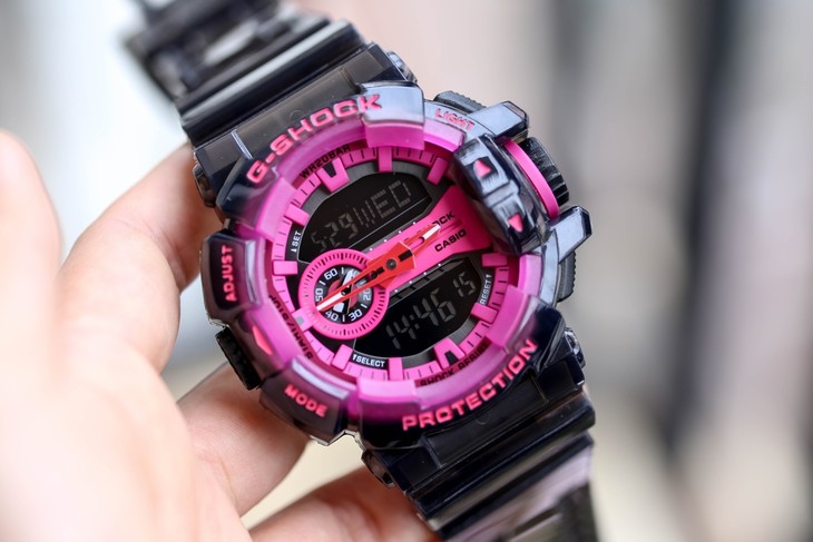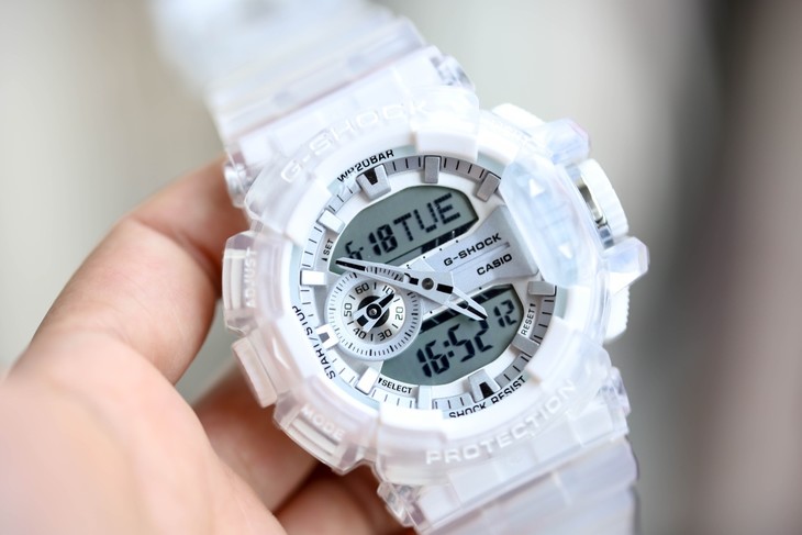 卡西欧CASIO透明款手表GA400-耐冲击构造.橡胶表带.LED照明 自动抬手灯(自动照明切换、可选择照明的亮灯时间).闪动响报:当闹铃、整点报时自动启动时.指针移动功能