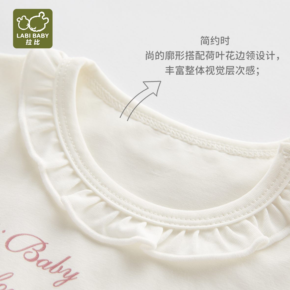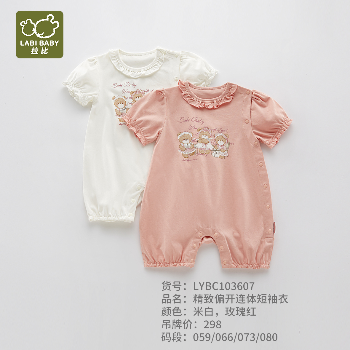 拉比-童衣类(夏)I5精致偏开连体短袖衣米白059