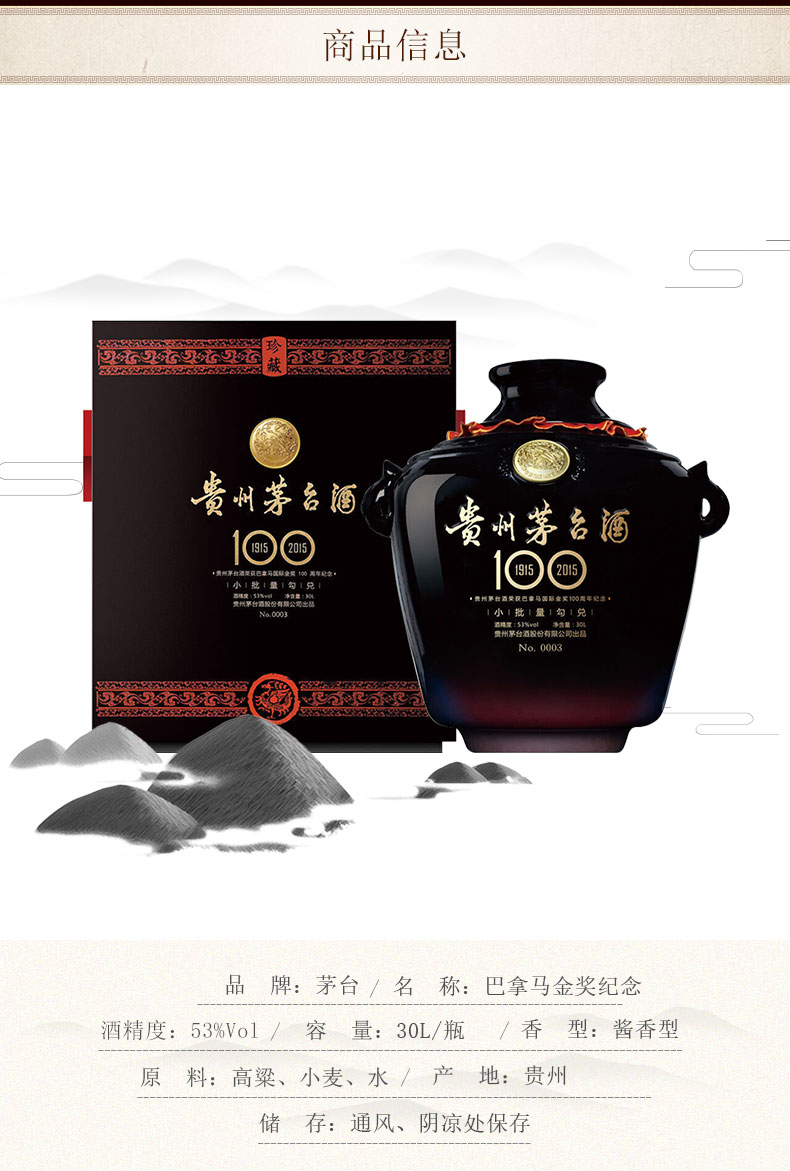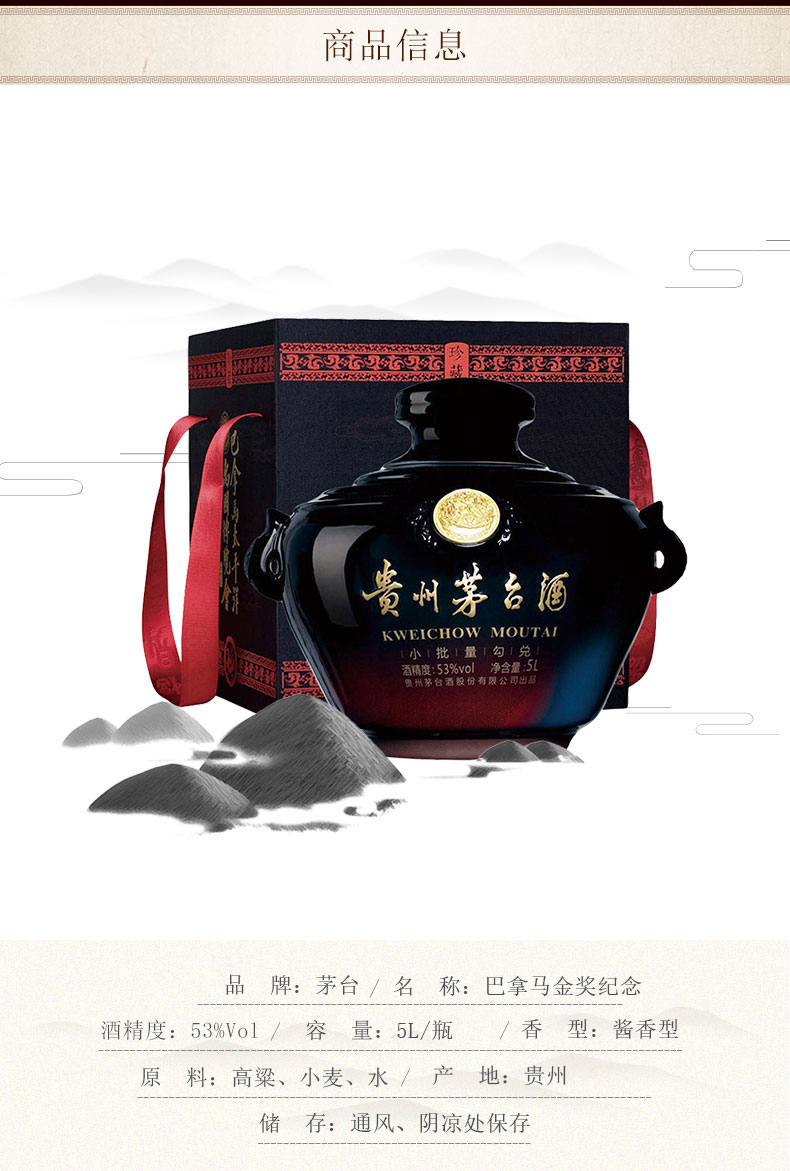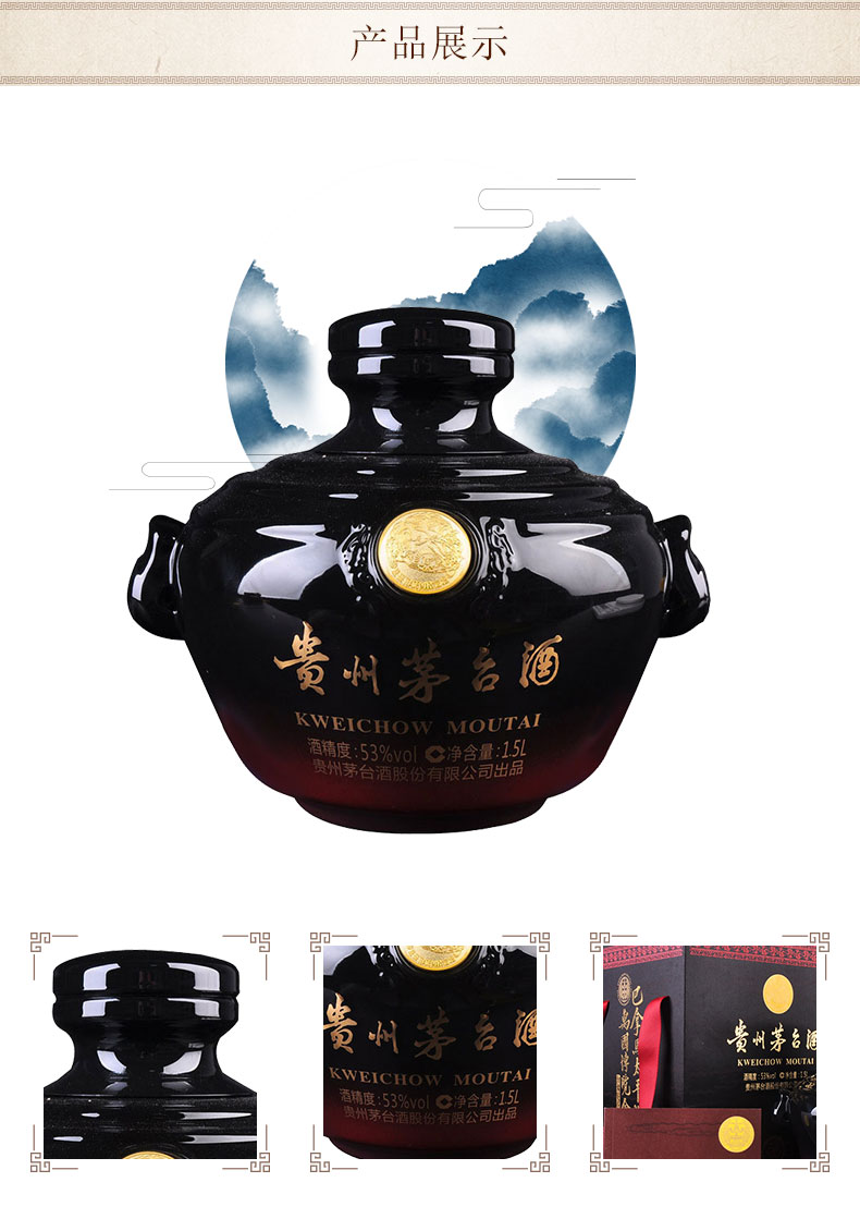 贵州茅台酒 53度巴拿马国际金奖茅台小黑坛大坛酒 1.5L 三斤