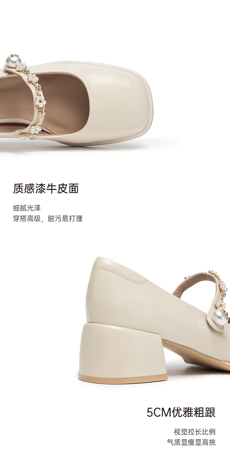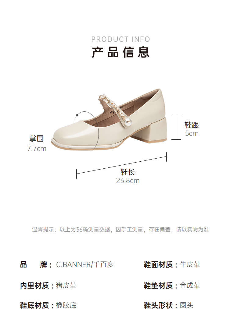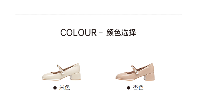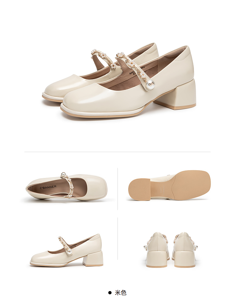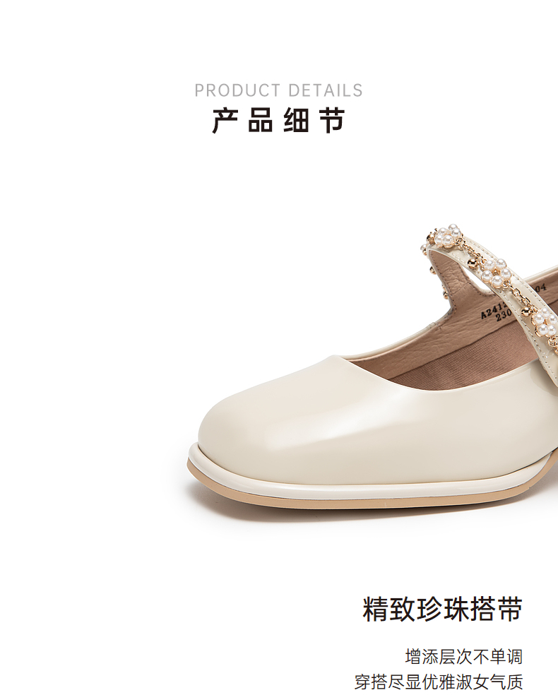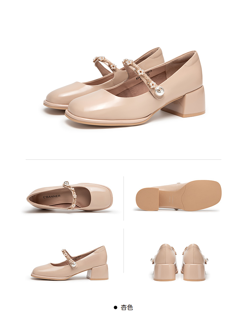 千百度粗跟高跟真皮玛丽珍鞋女春季晚晚鞋法式单鞋高级感A24121813