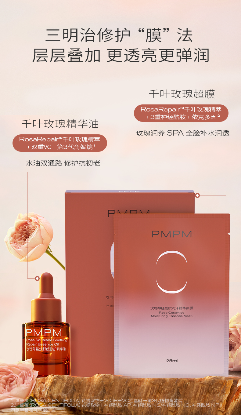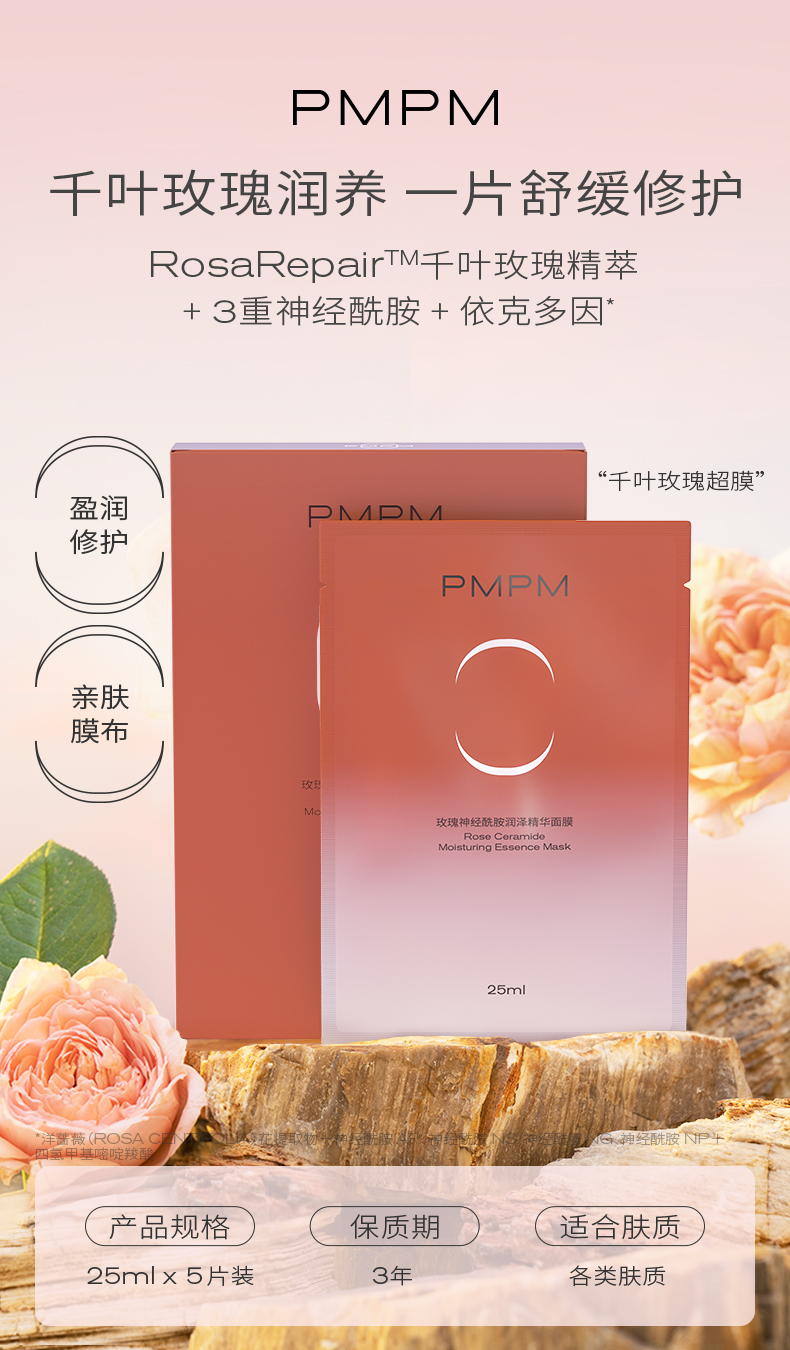 【千叶玫瑰天丝面膜】PMPM千叶玫瑰精粹神经酰胺滋养舒缓修护天丝膜布贴片千叶玫瑰超膜新