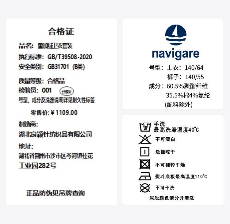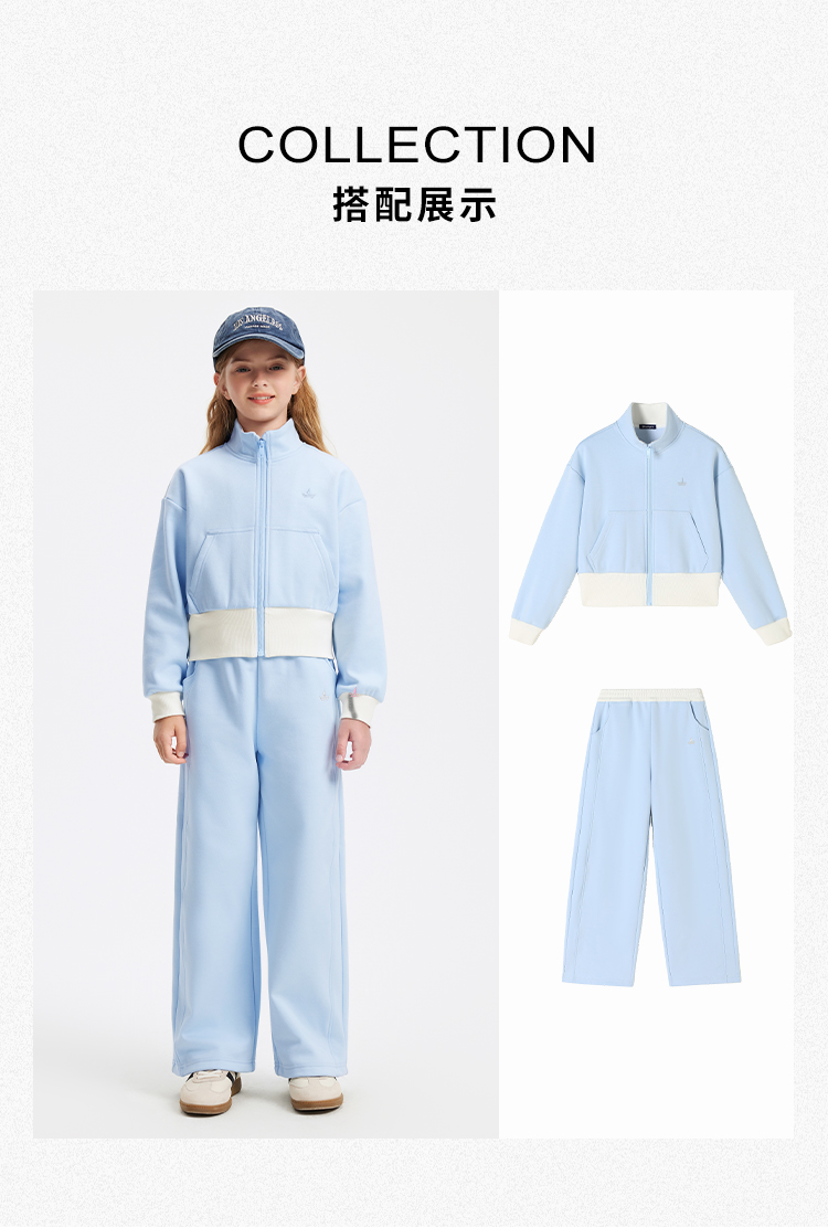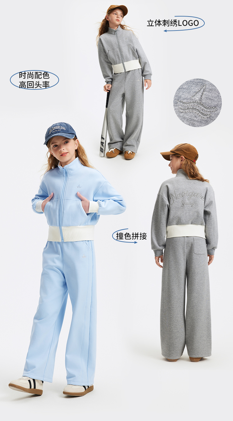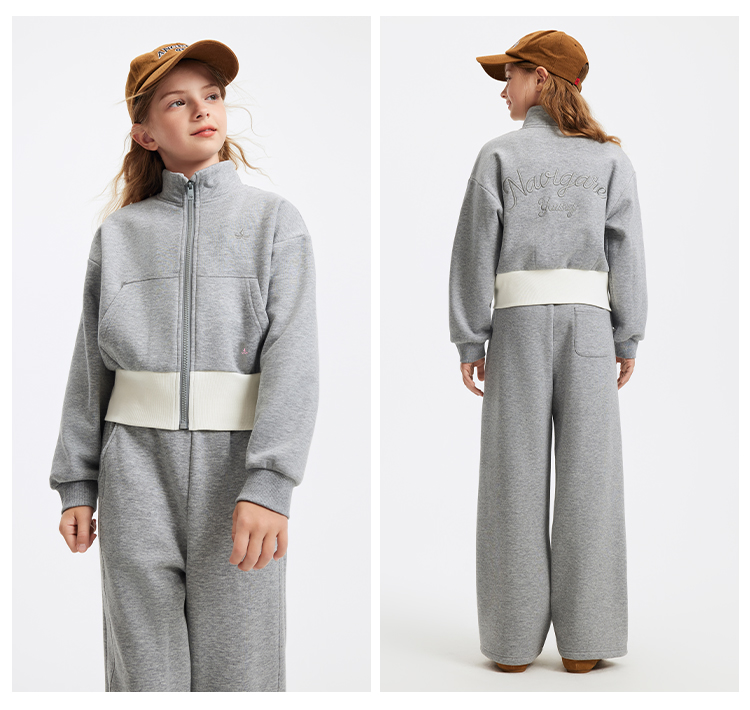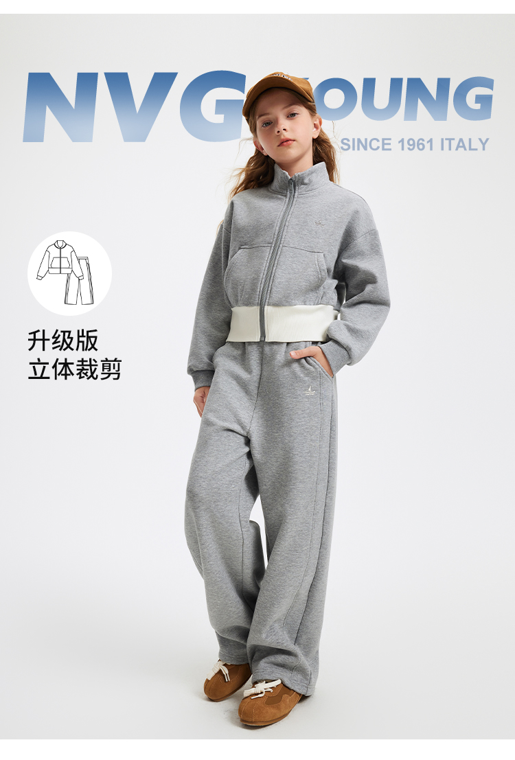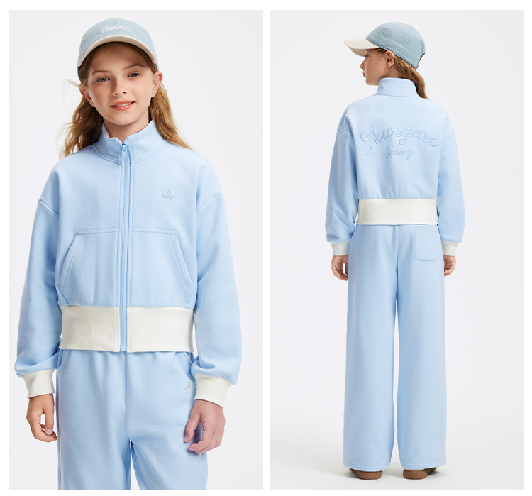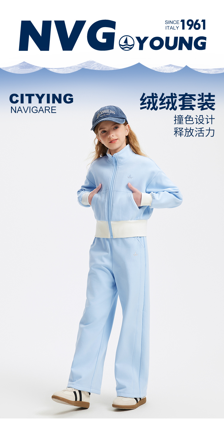 【纳维凯尔】【加绒两件套】【130-170】意大利小帆船复合摇粒绒女童绒卫衣卫裤套装