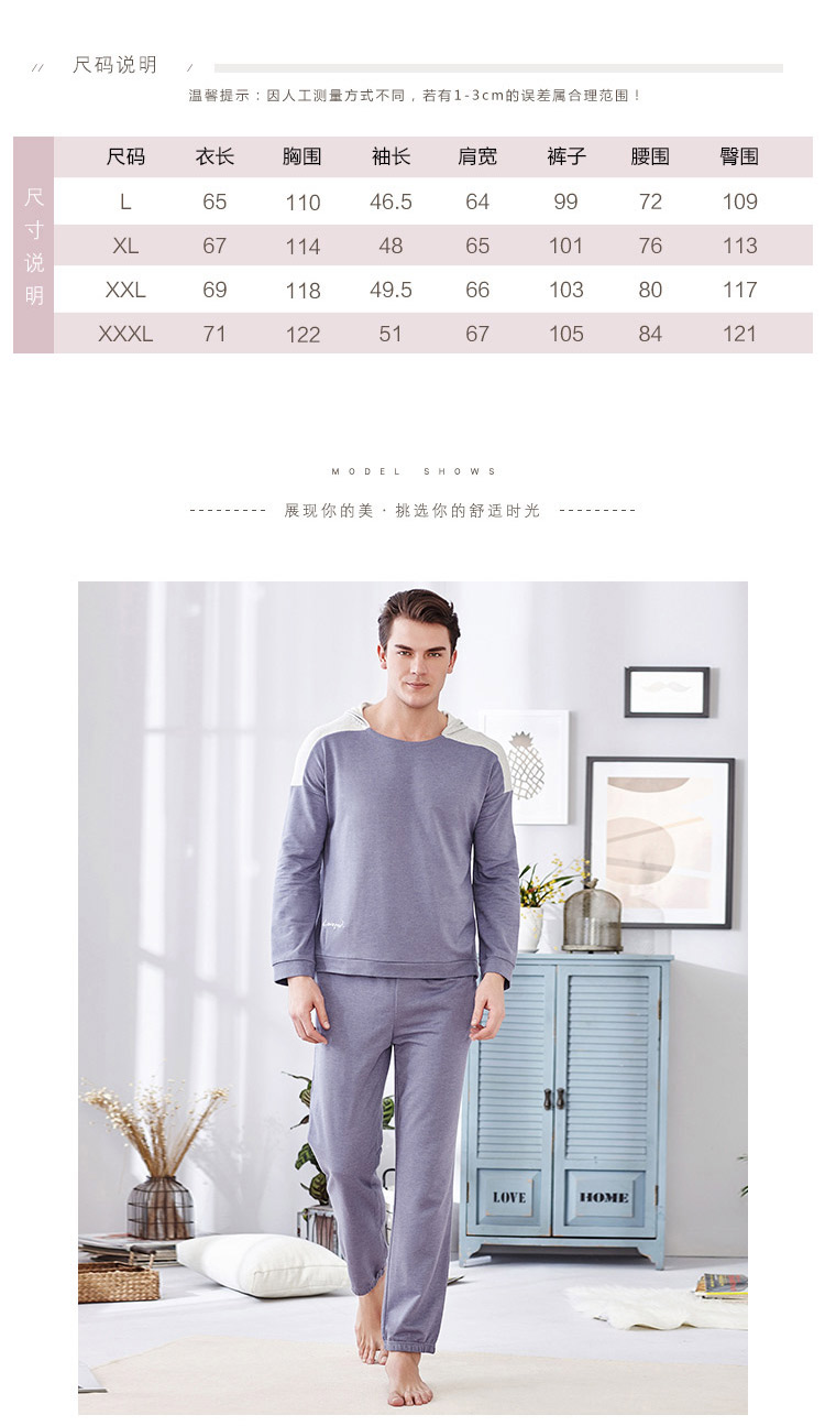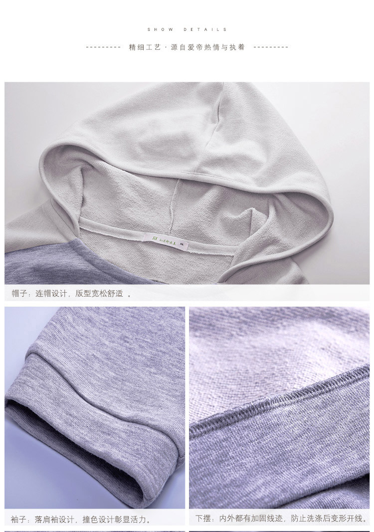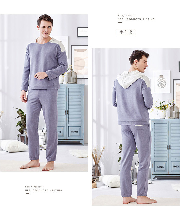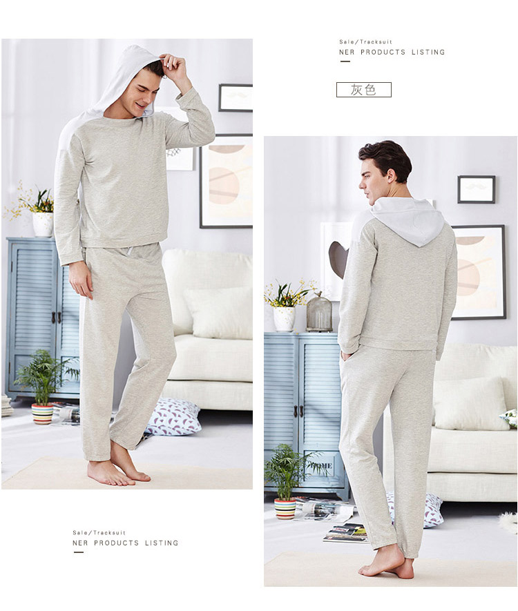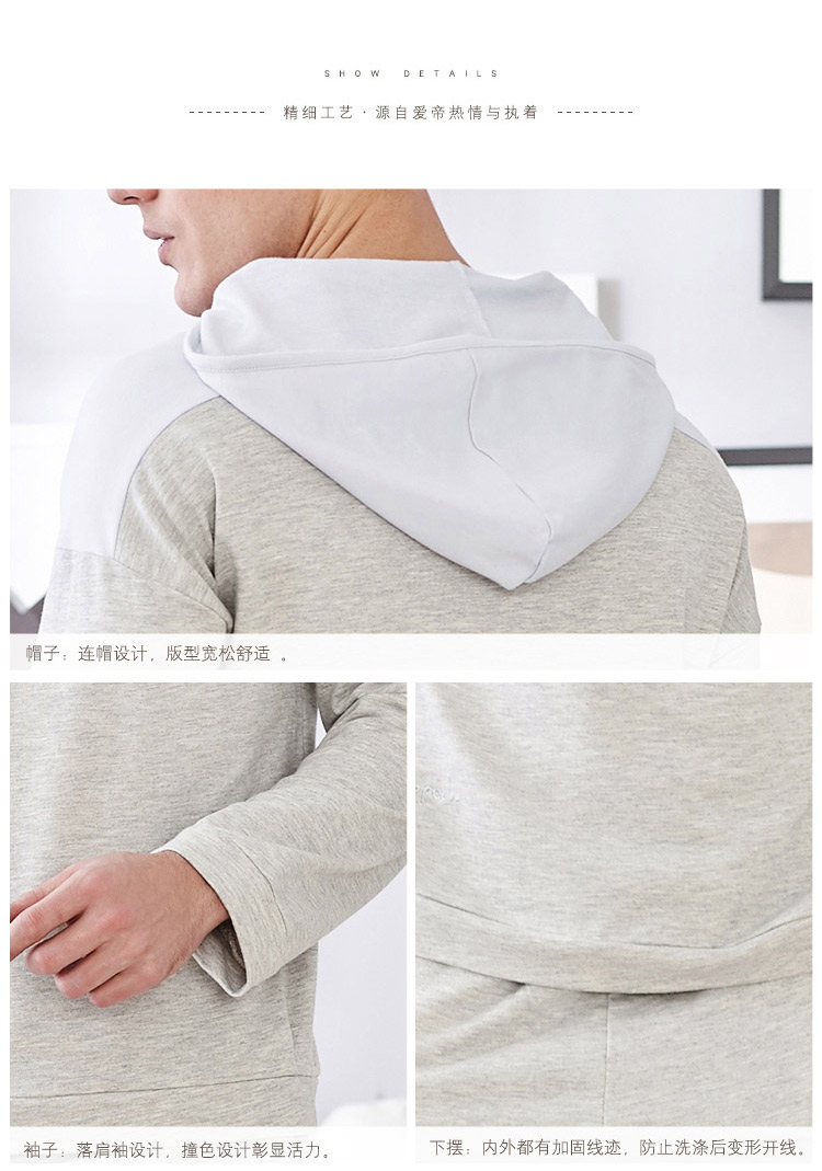 【会员价】爱帝男士休闲连帽拼色套装长袖可外穿家居服